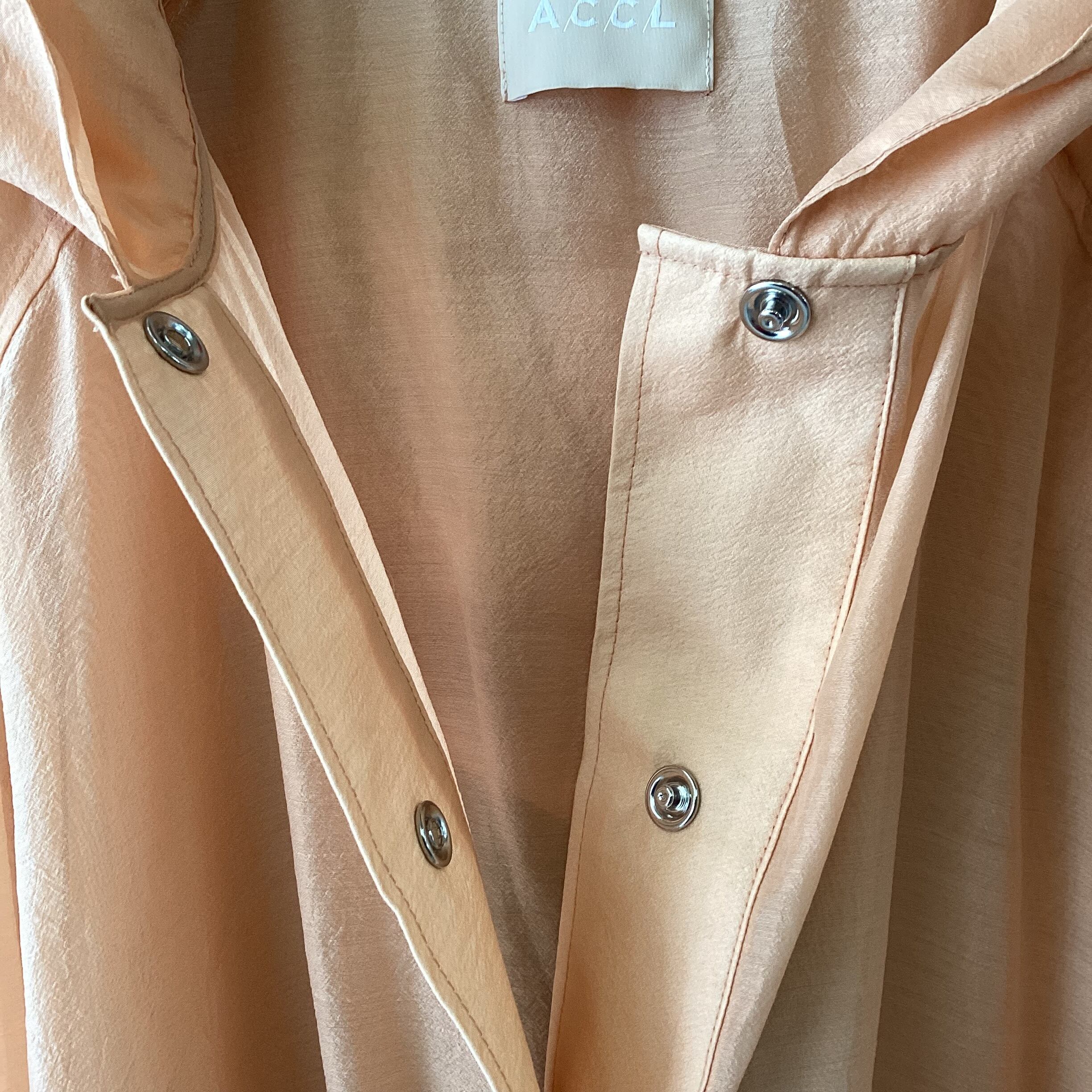 大きなスナップボタンとウエストのドローコードがポイントになっています