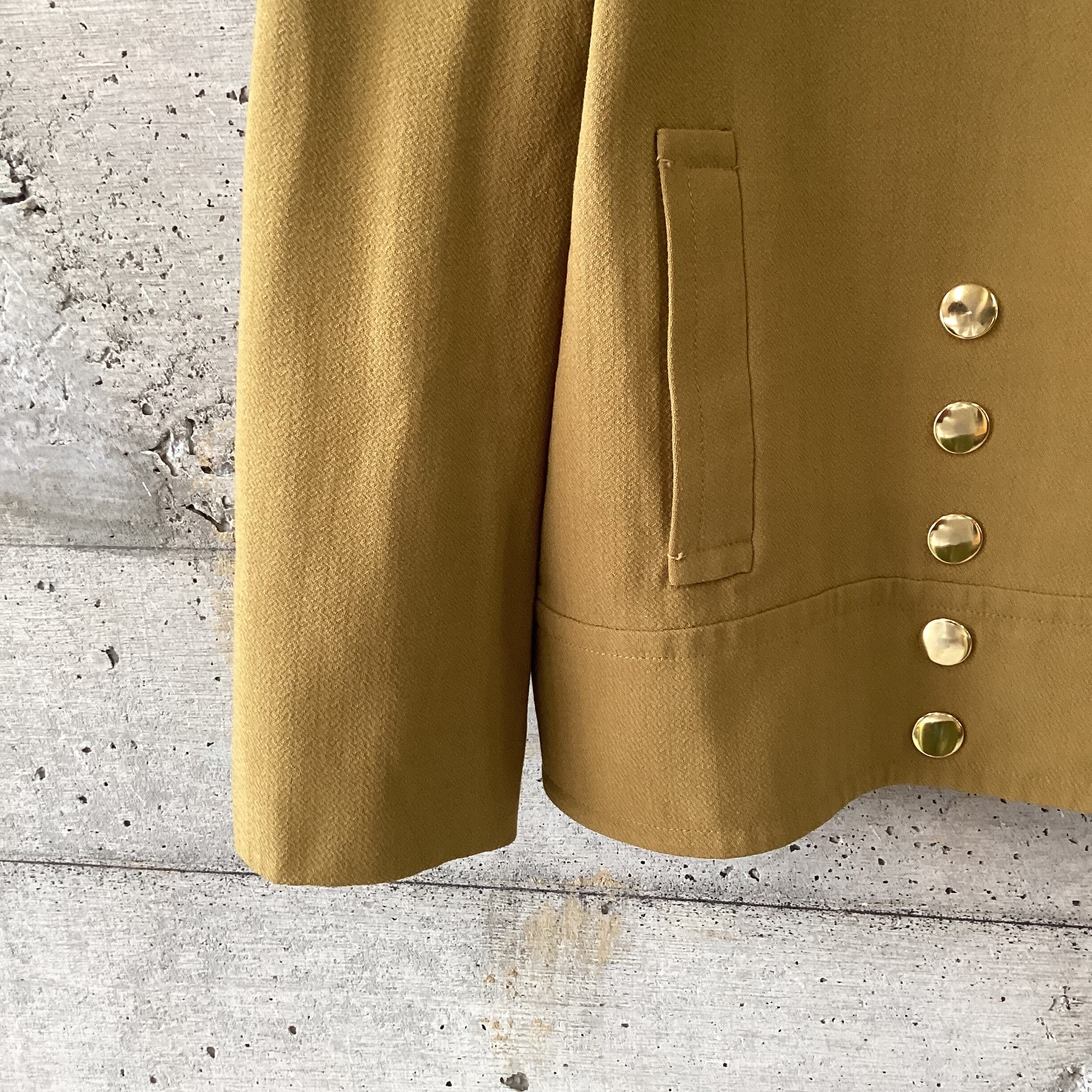 辛子色のボディに金のスナップボタンでエレガンスさが醸し出されています。