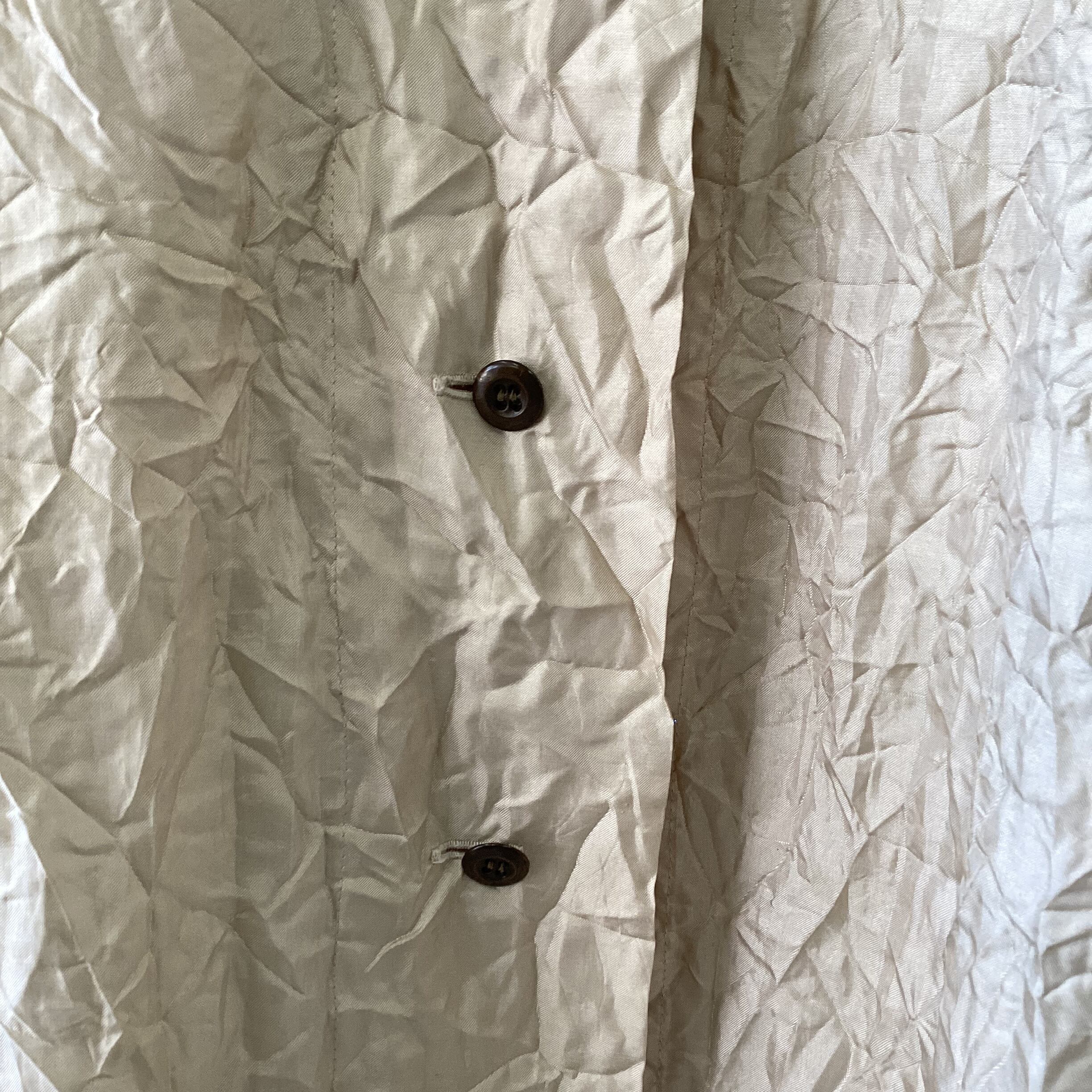 おそらく、もともとはプリーツ加工がされていたものが、経年変化によって徐々に伸びていったのだと思われます。