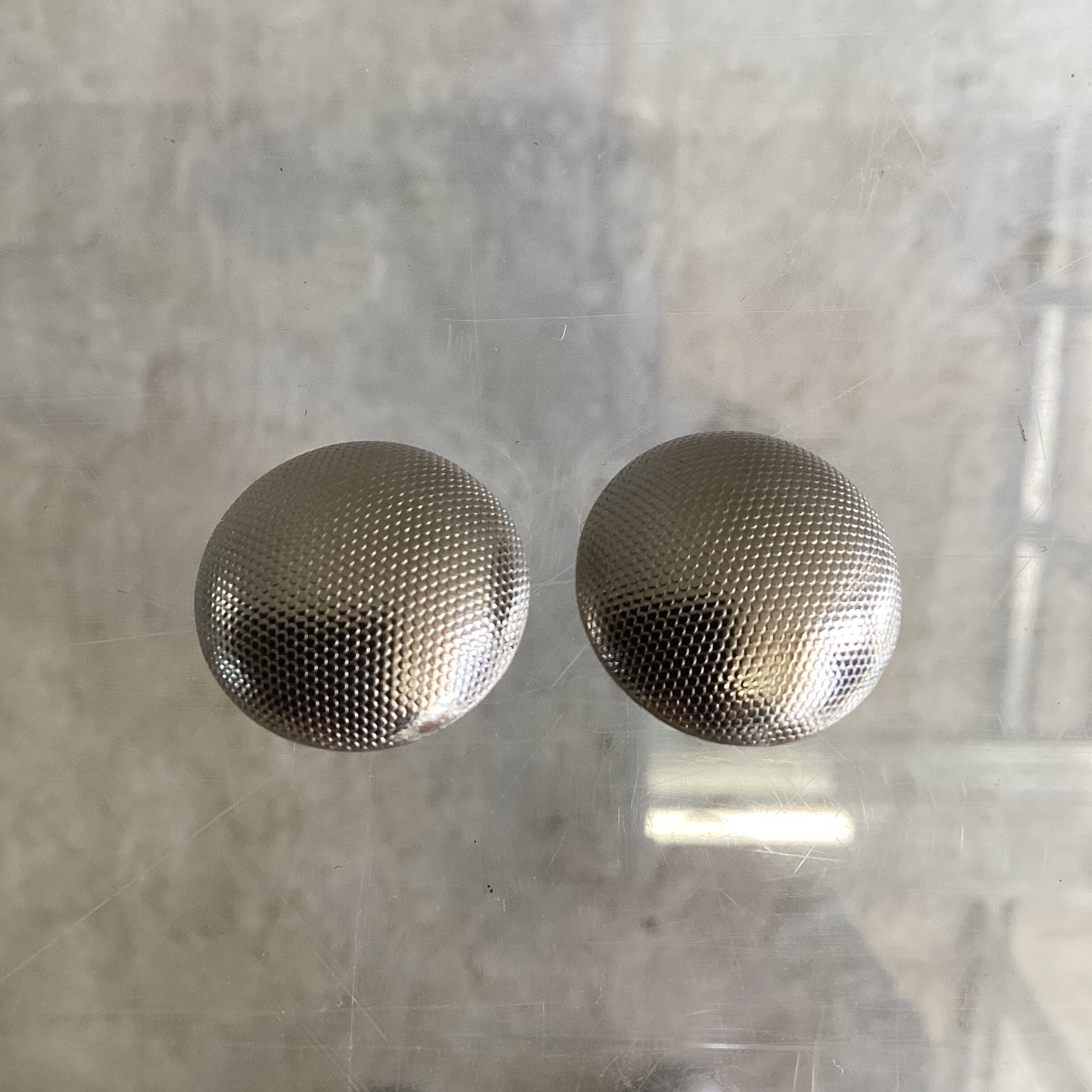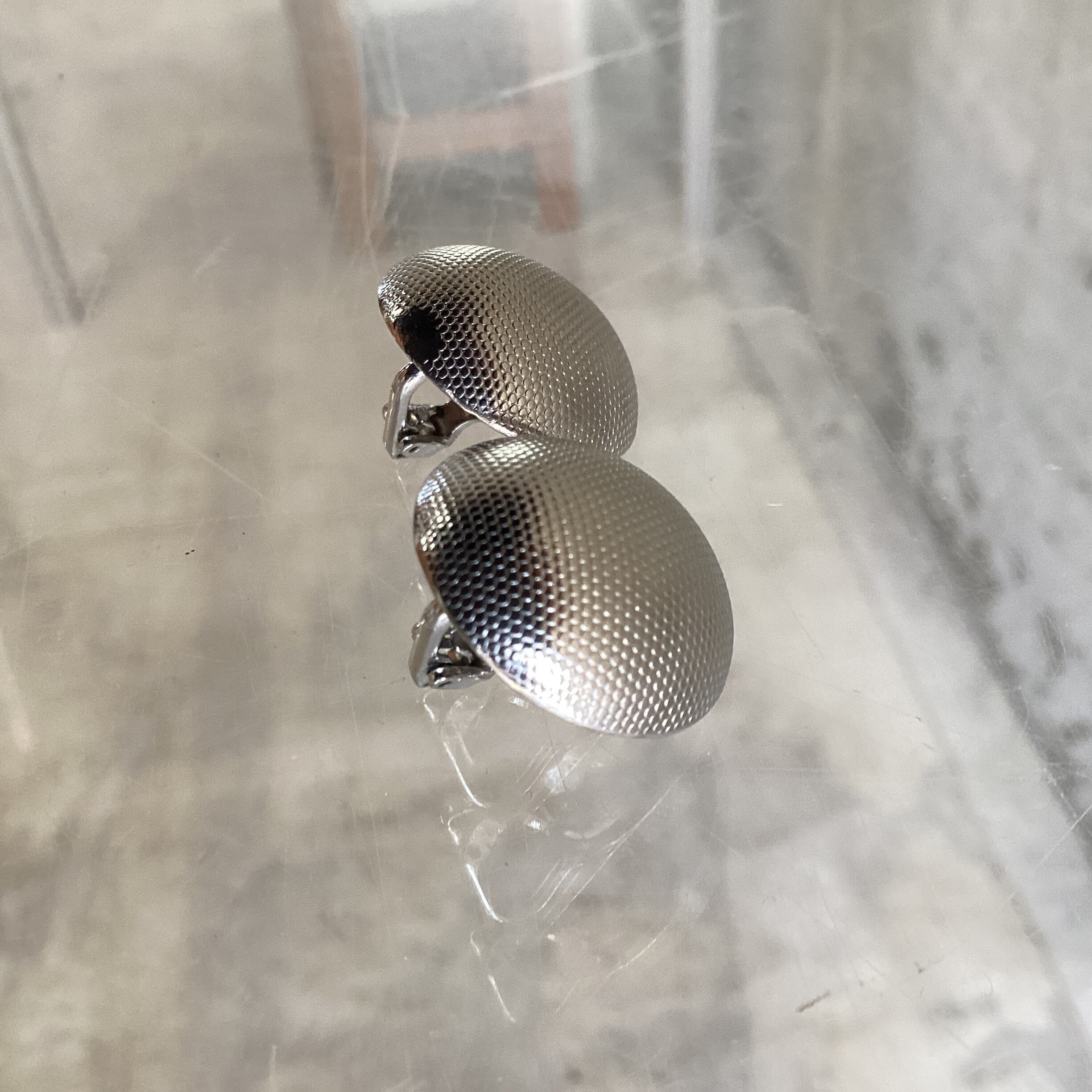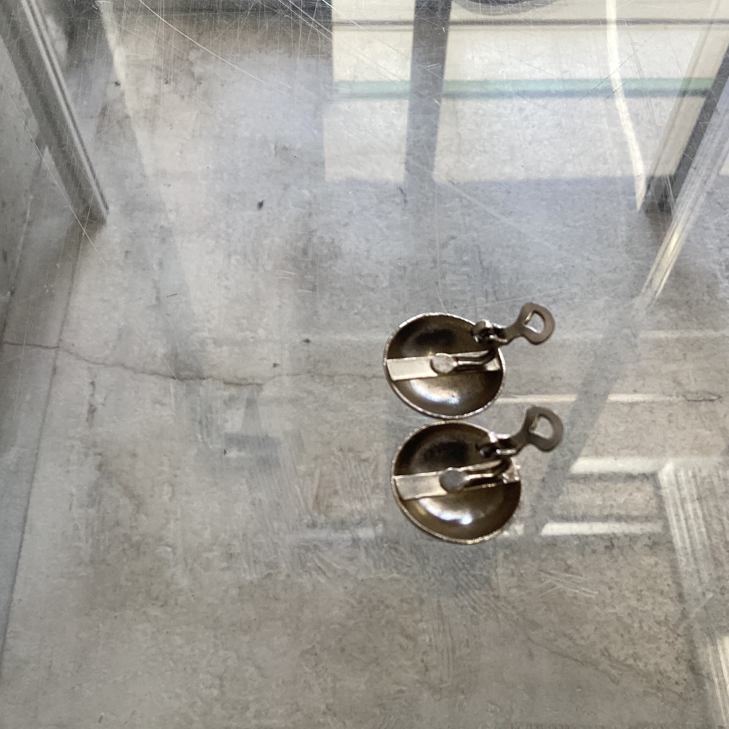 ミリタリーのジャケットについているようなシルバーの丸いイヤリングです