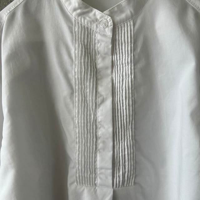 胸元のピンタックや、長めなカフスが上品な印象を与えます。