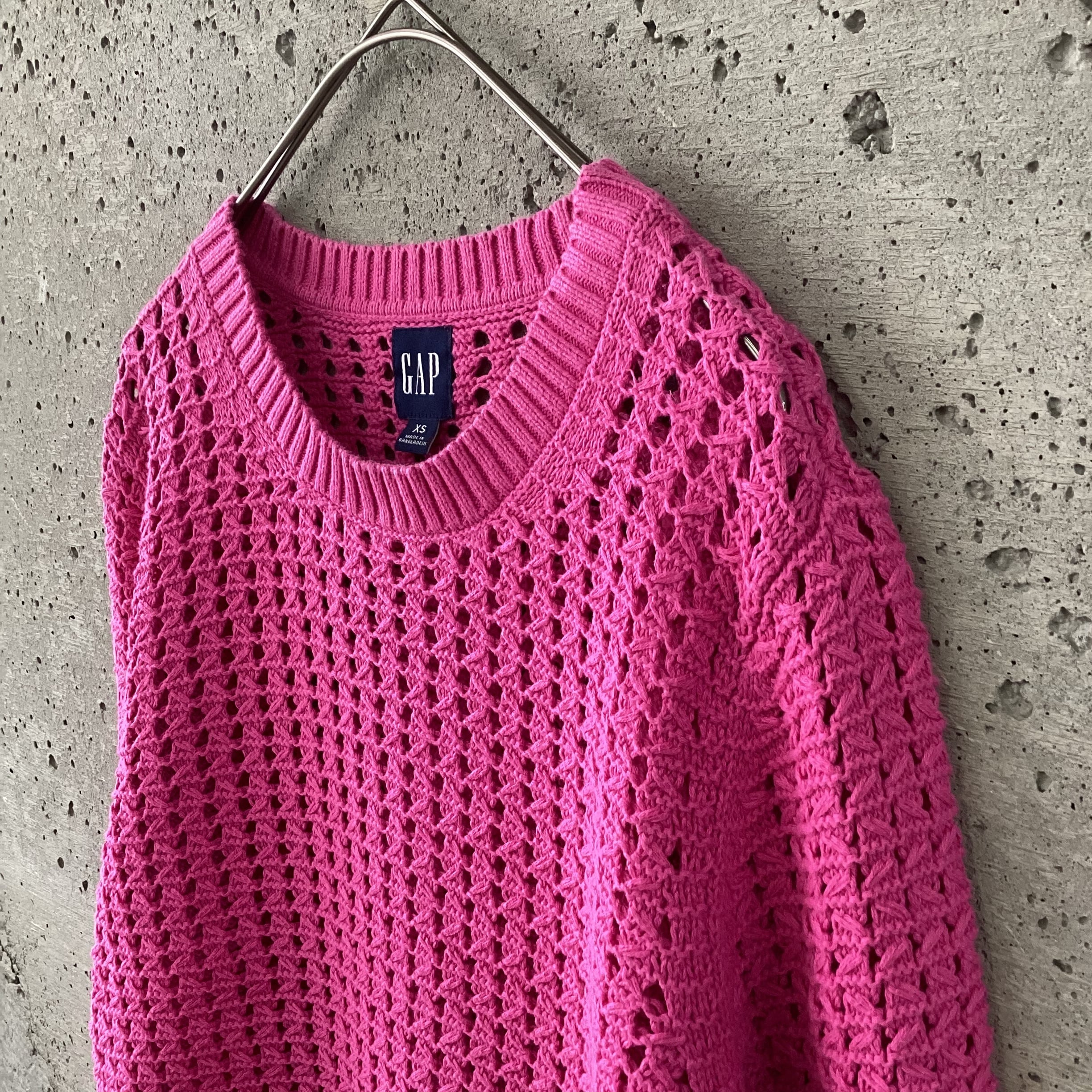 透かし編みで編まれた模様は規則的でとても綺麗で、中に何を着るかによって色々な表情が楽しめます。