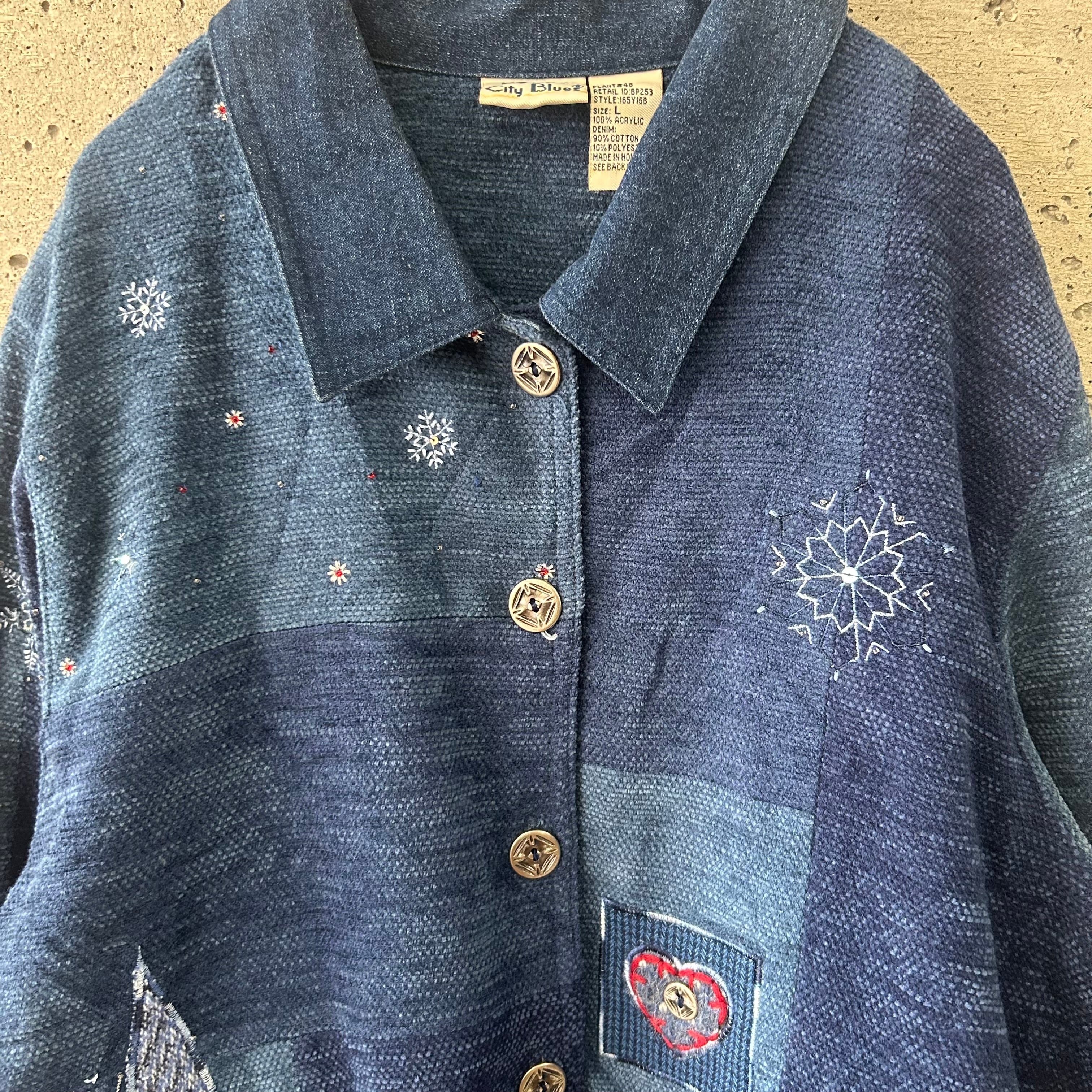 雪やツリー、パッチワークのような刺繍がとっても魅力的です。