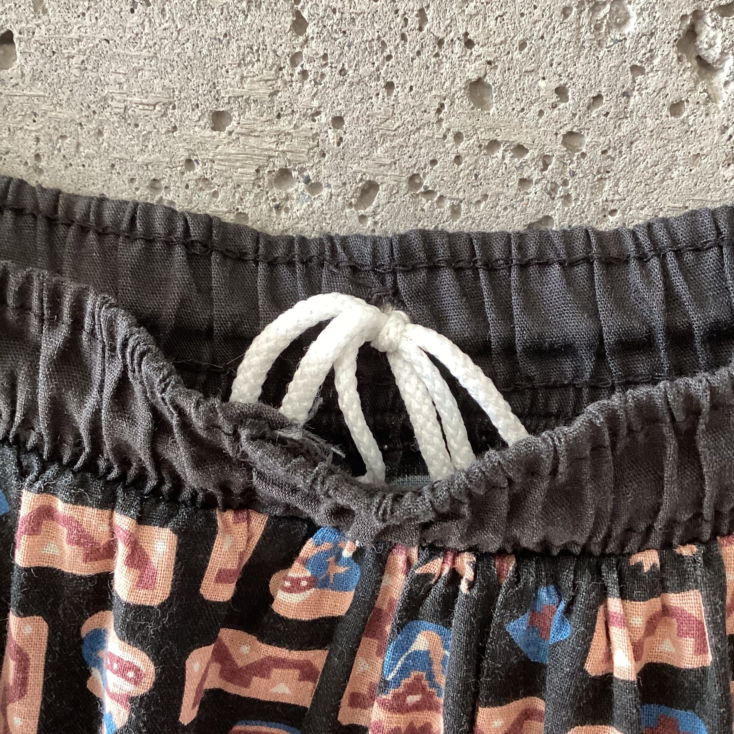 ウエスト〜62cm〜90cm(ゴムで伸縮、内紐で絞れます)