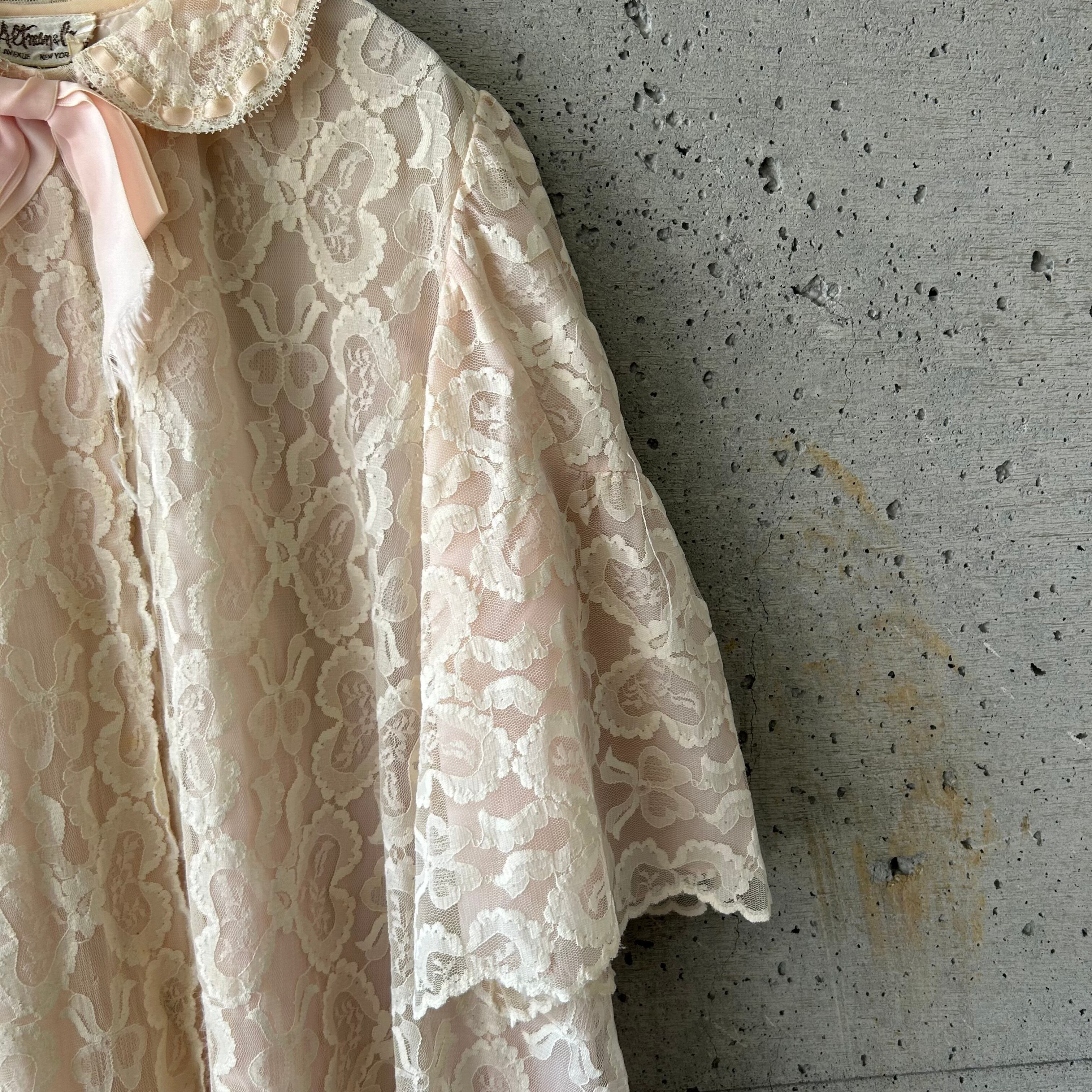 はしごリボンが通った襟元もとてもよく、前開きなのでワンピースの上に羽織ってもとても可愛いです。