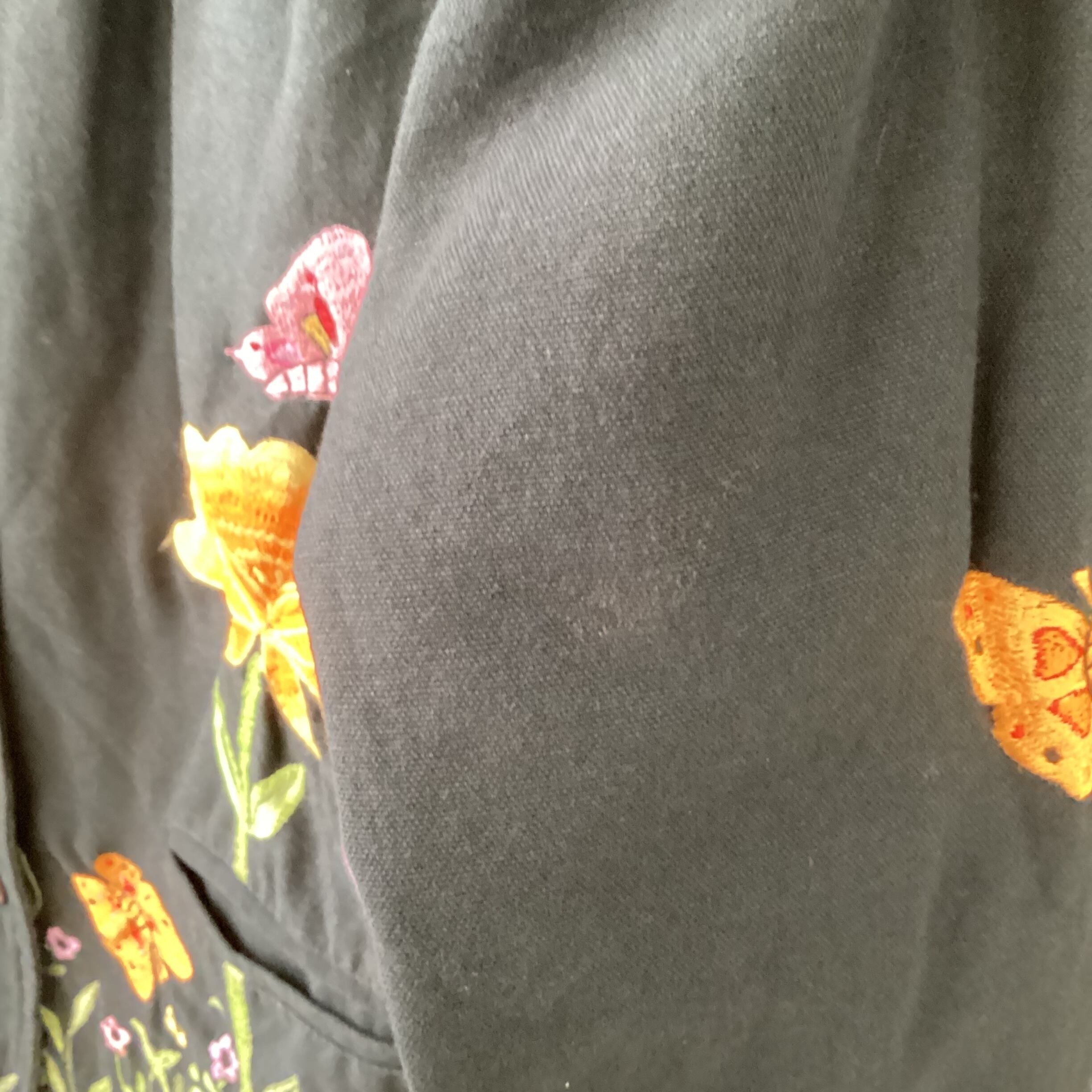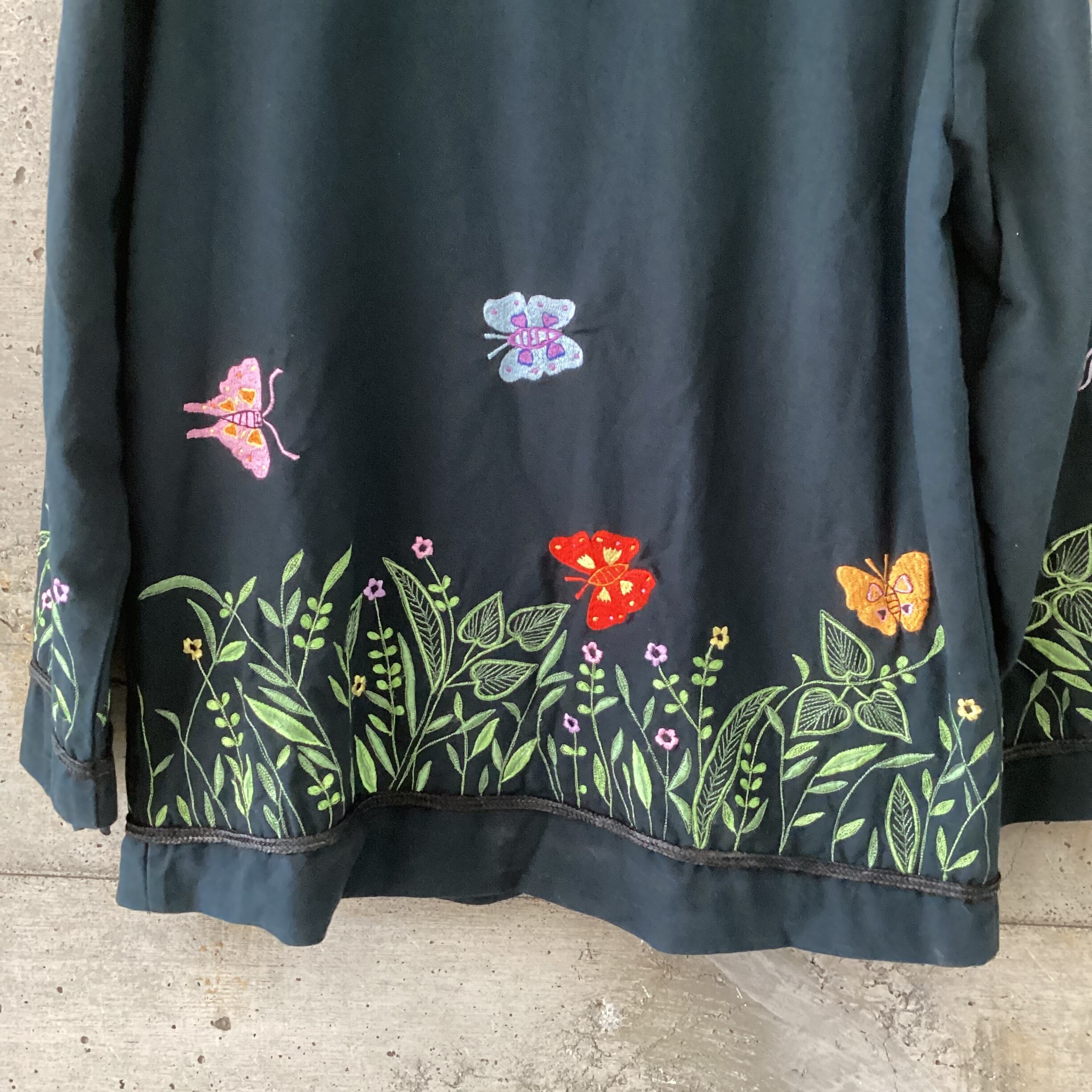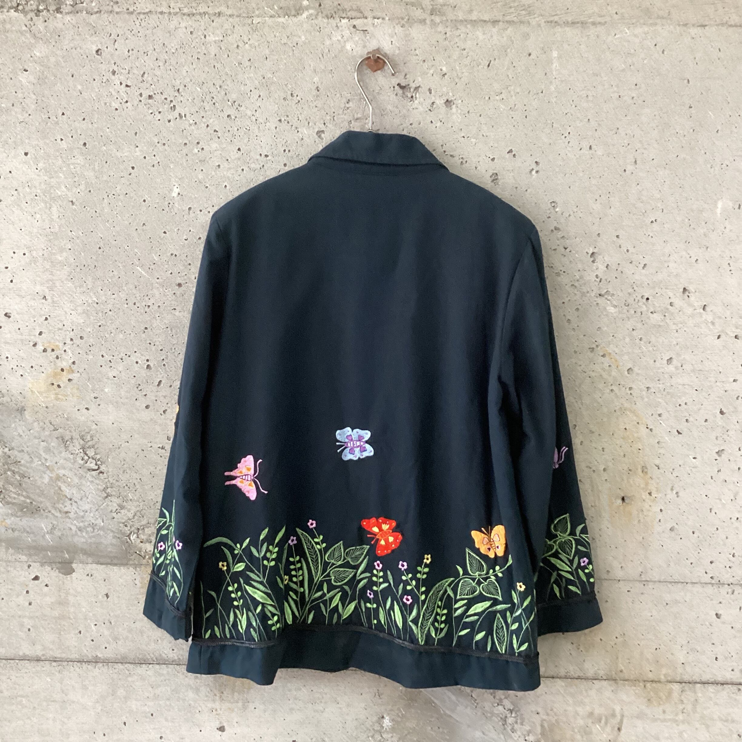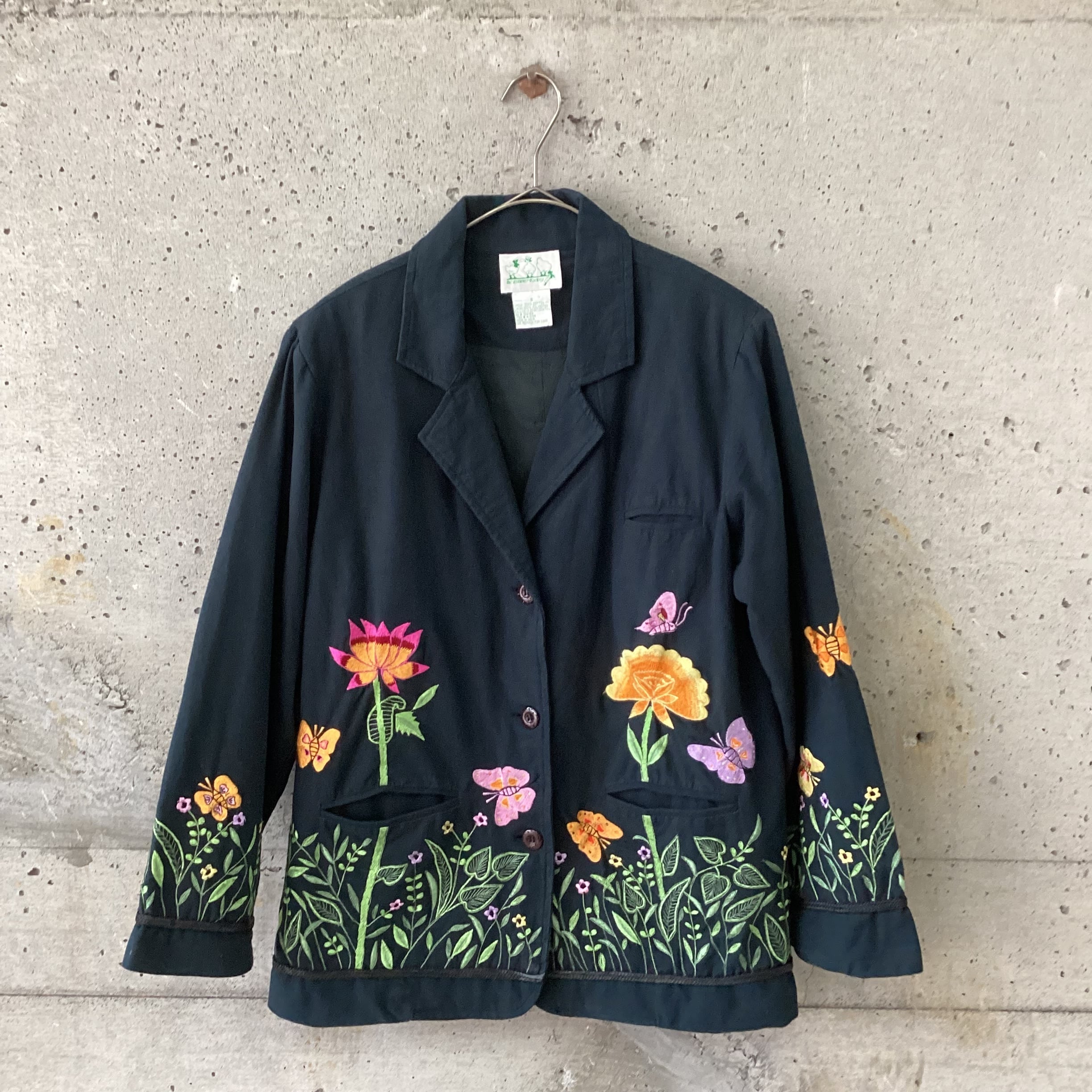 前後に花が刺繍されたインパクトの大きいジャケットです