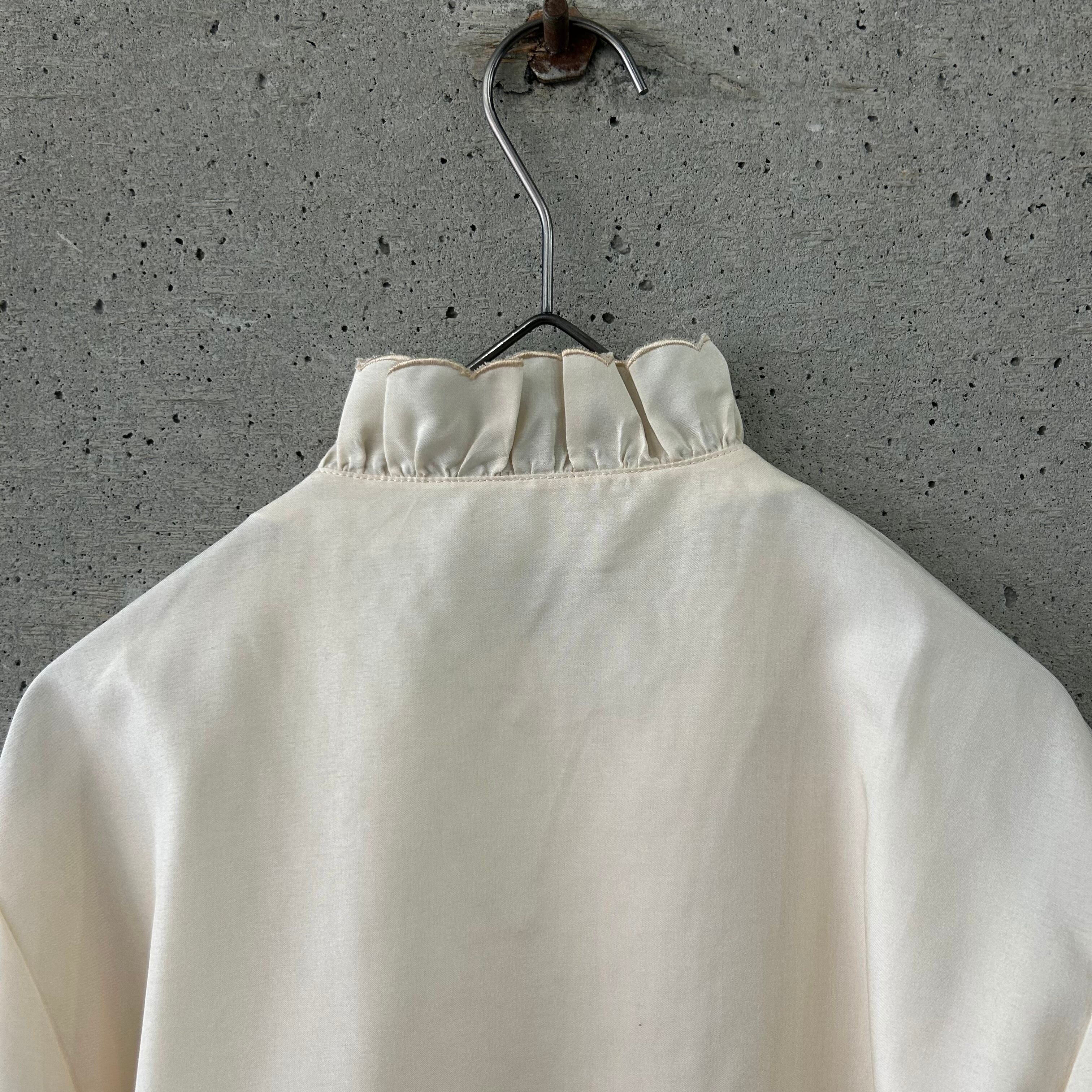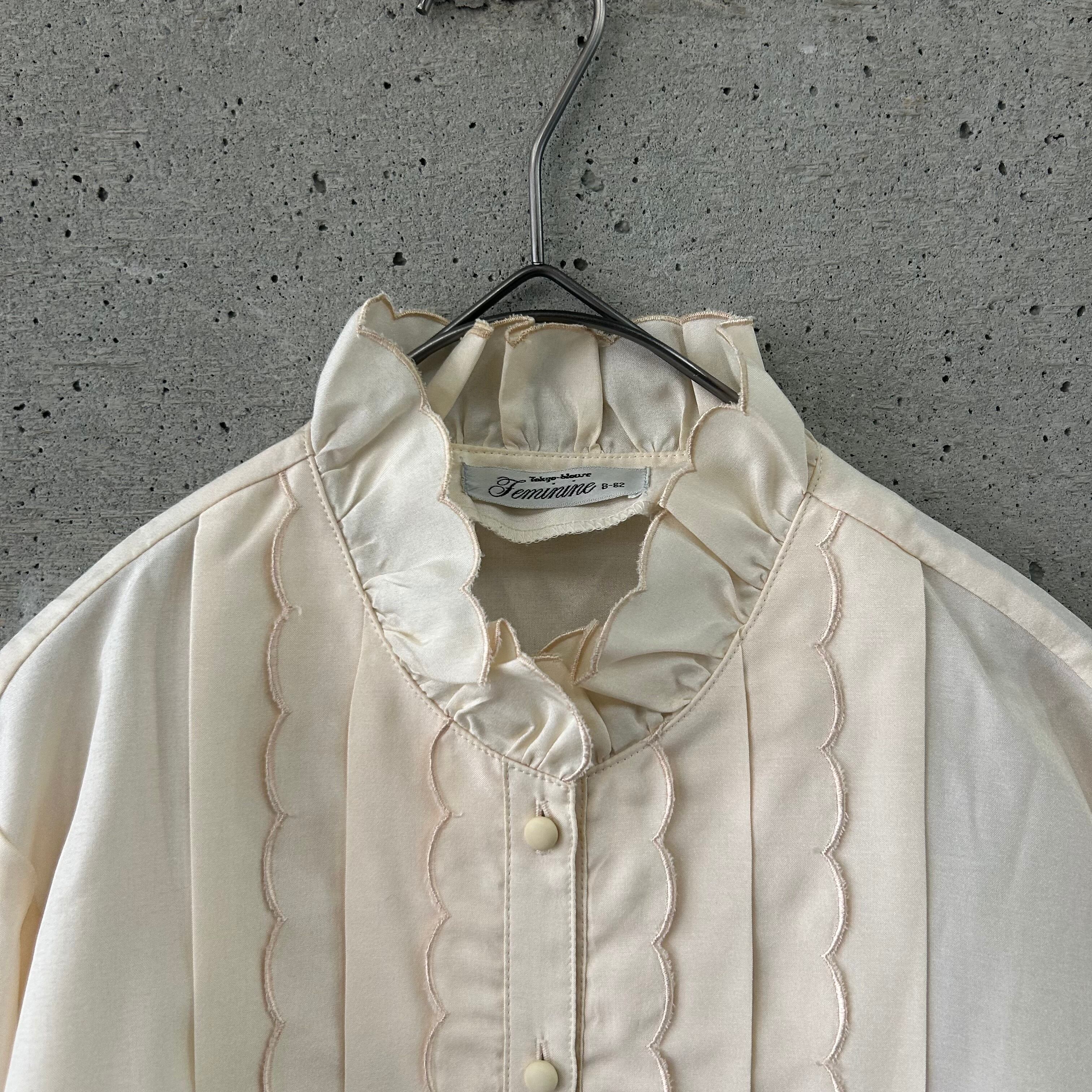 タックに丸く切り抜かれたようなレースのデザインがとても可愛く、シンプルながらもデザインの効いた1着になっています。