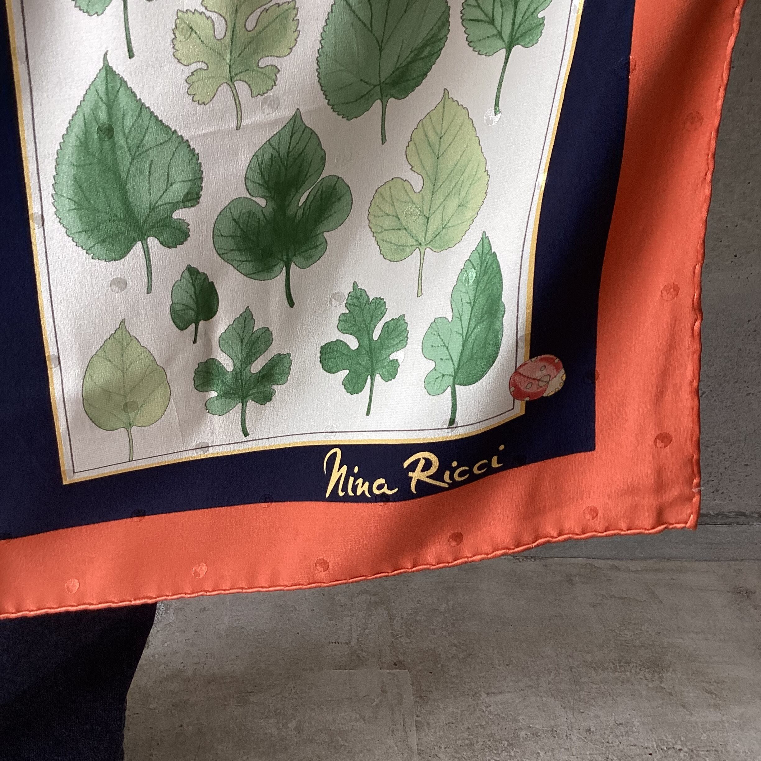 植物の柄に、背景のオレンジとネイビーの色合いが特徴的です。