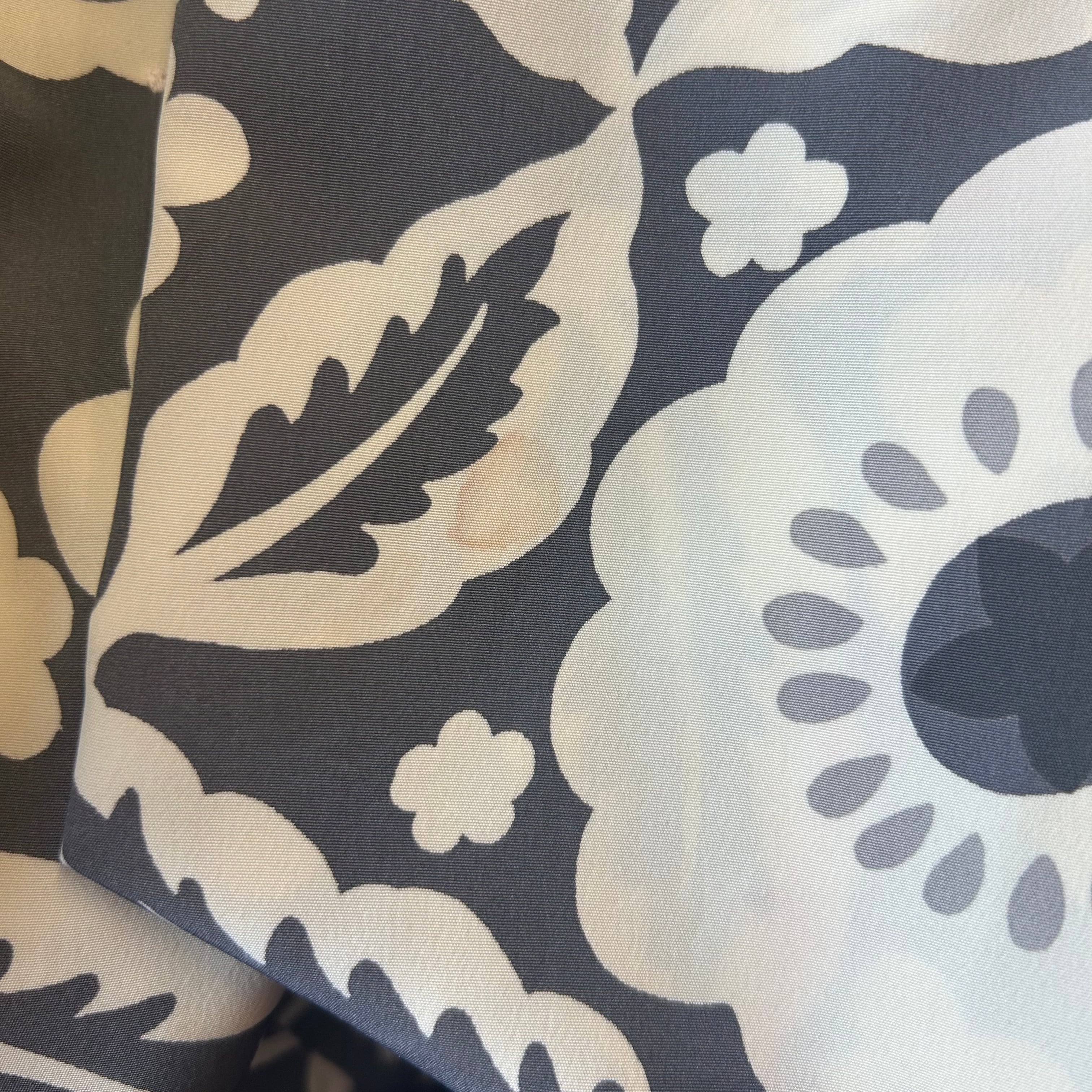 大柄な花がとても可愛く、ポップでありながらモノトーンに近い色合いで落ち着いた雰囲気で着ることができます。