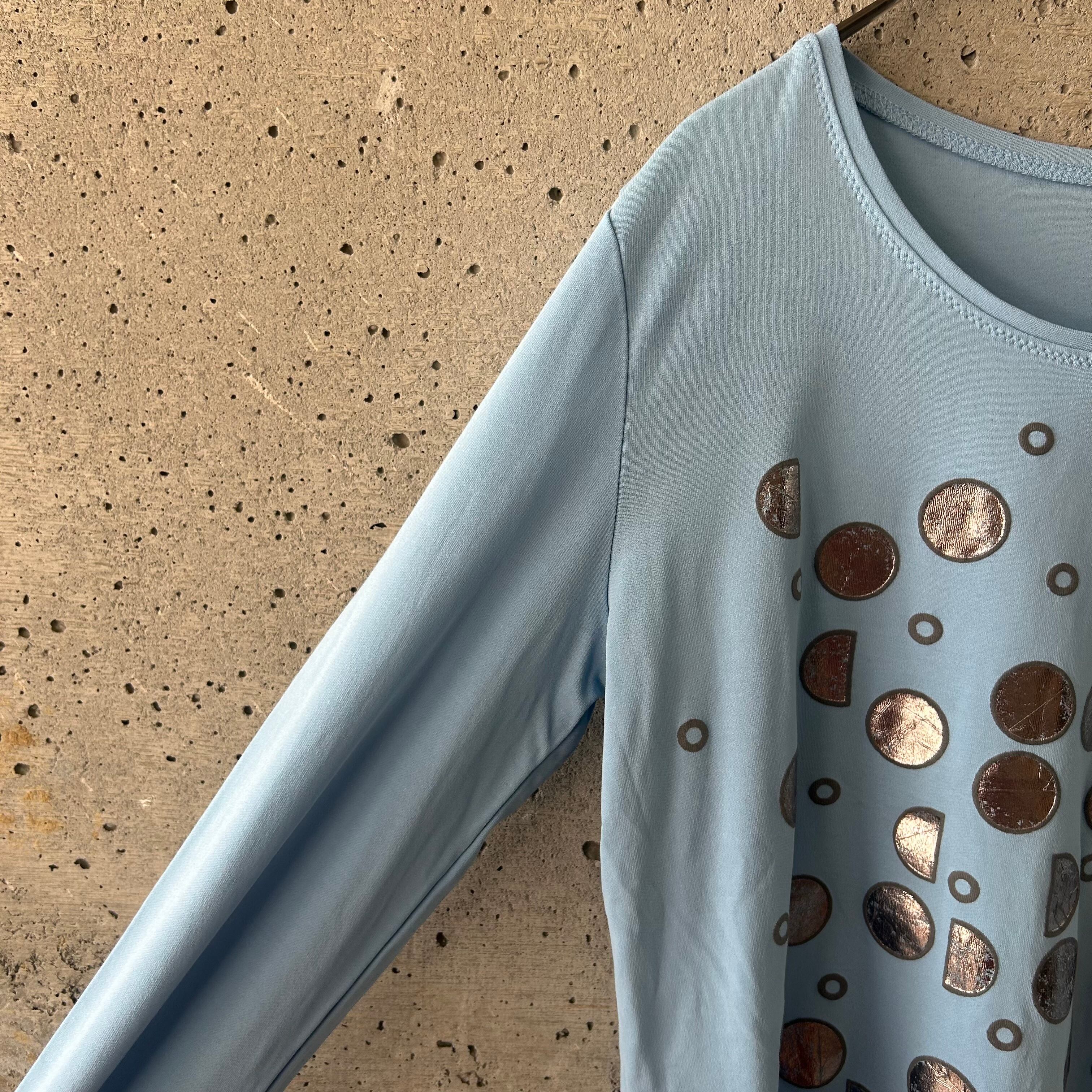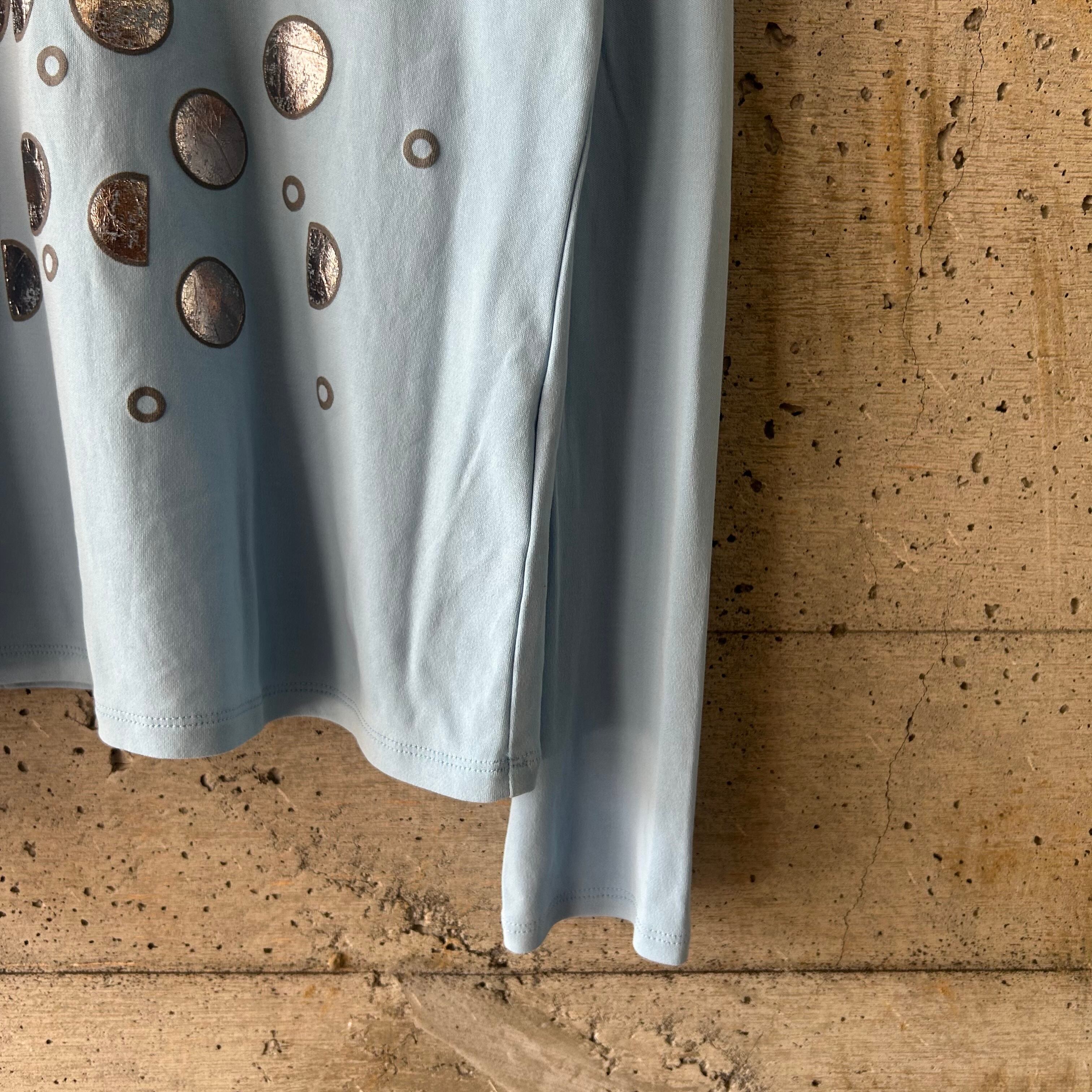 不規則で無機質的な模様と、グレーのライン、シルバーのプリントにボディの水色がなんとも言えないかわいさをしています。