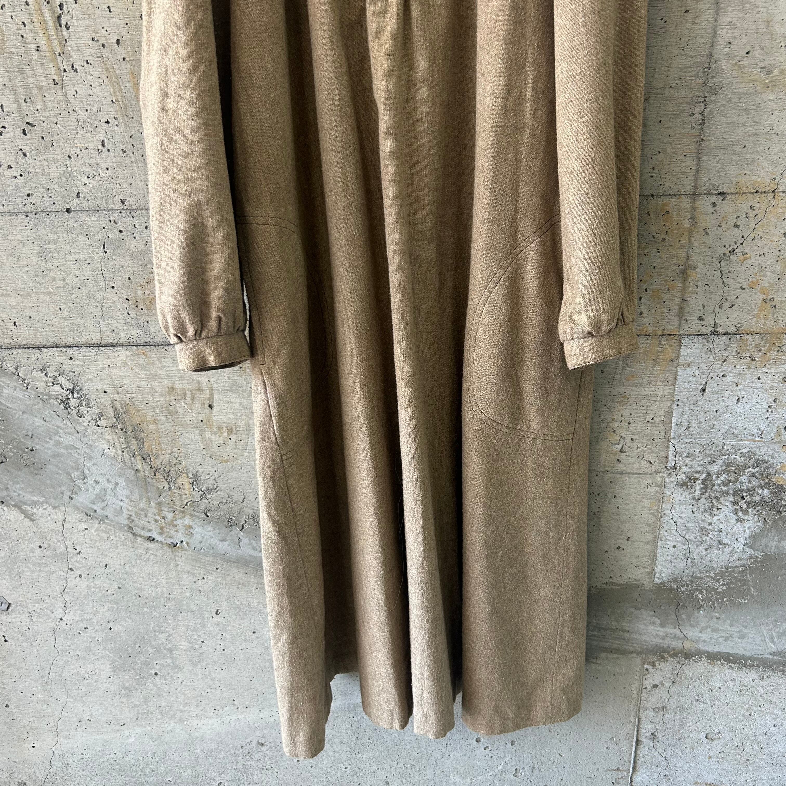 少しパフっぽい袖やスモックのようなシルエットは可愛らしい印象を与えますが、生地感と色味からはおとなしい印象を受け、程よいバランスが取れたとても着やすい1着です。