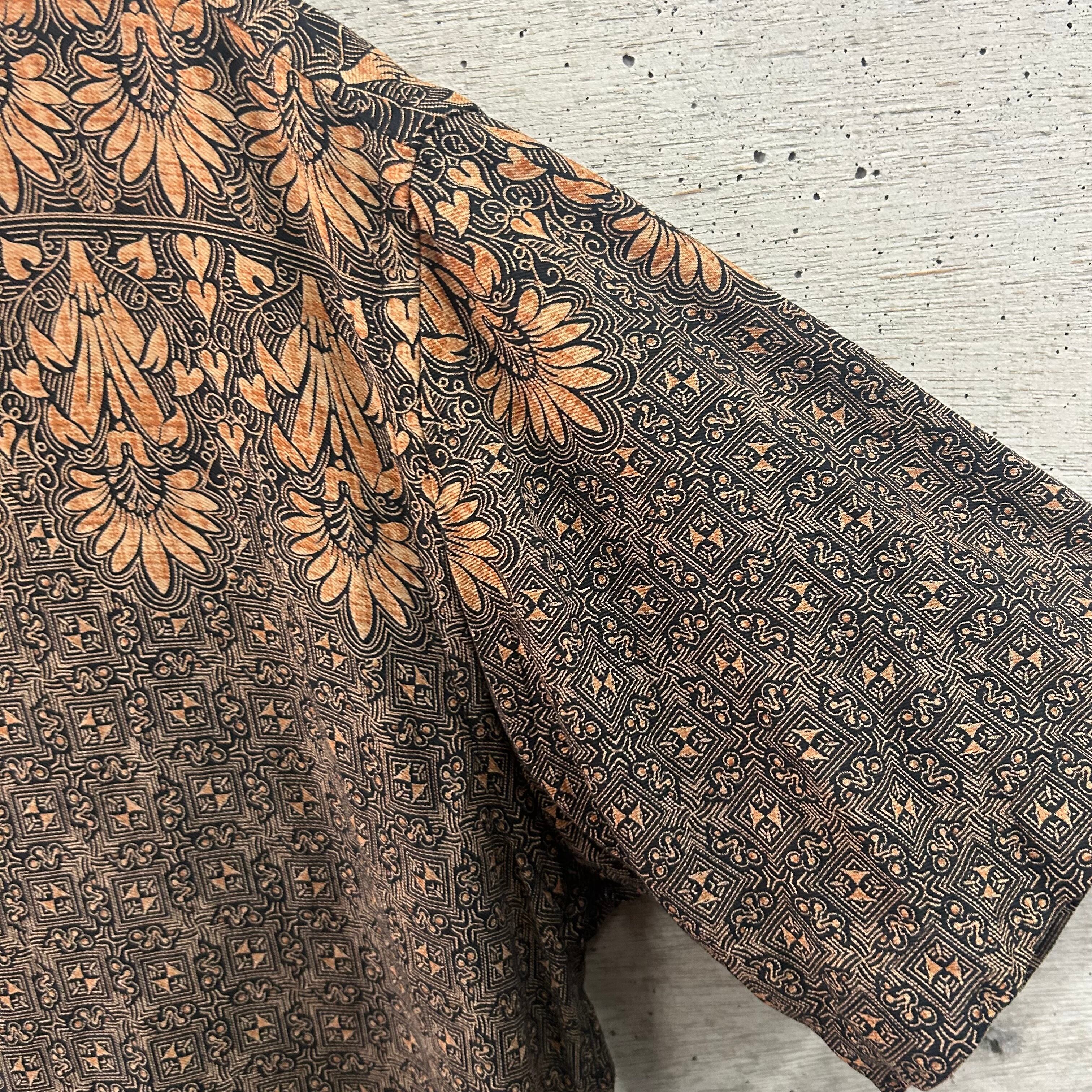 遊び心のある柄ですがブラックにブラウンの色合いで落ち着いた雰囲気もあります。