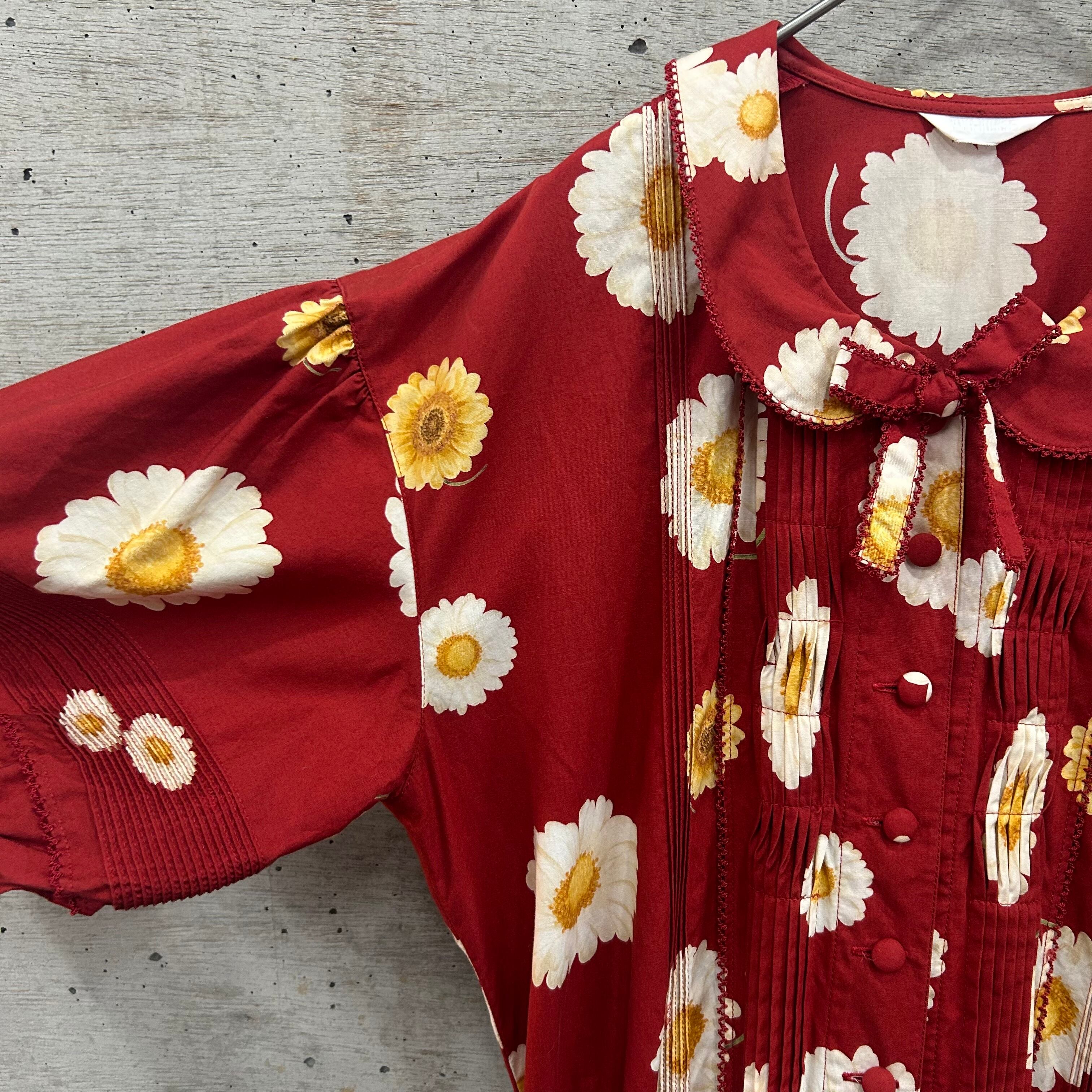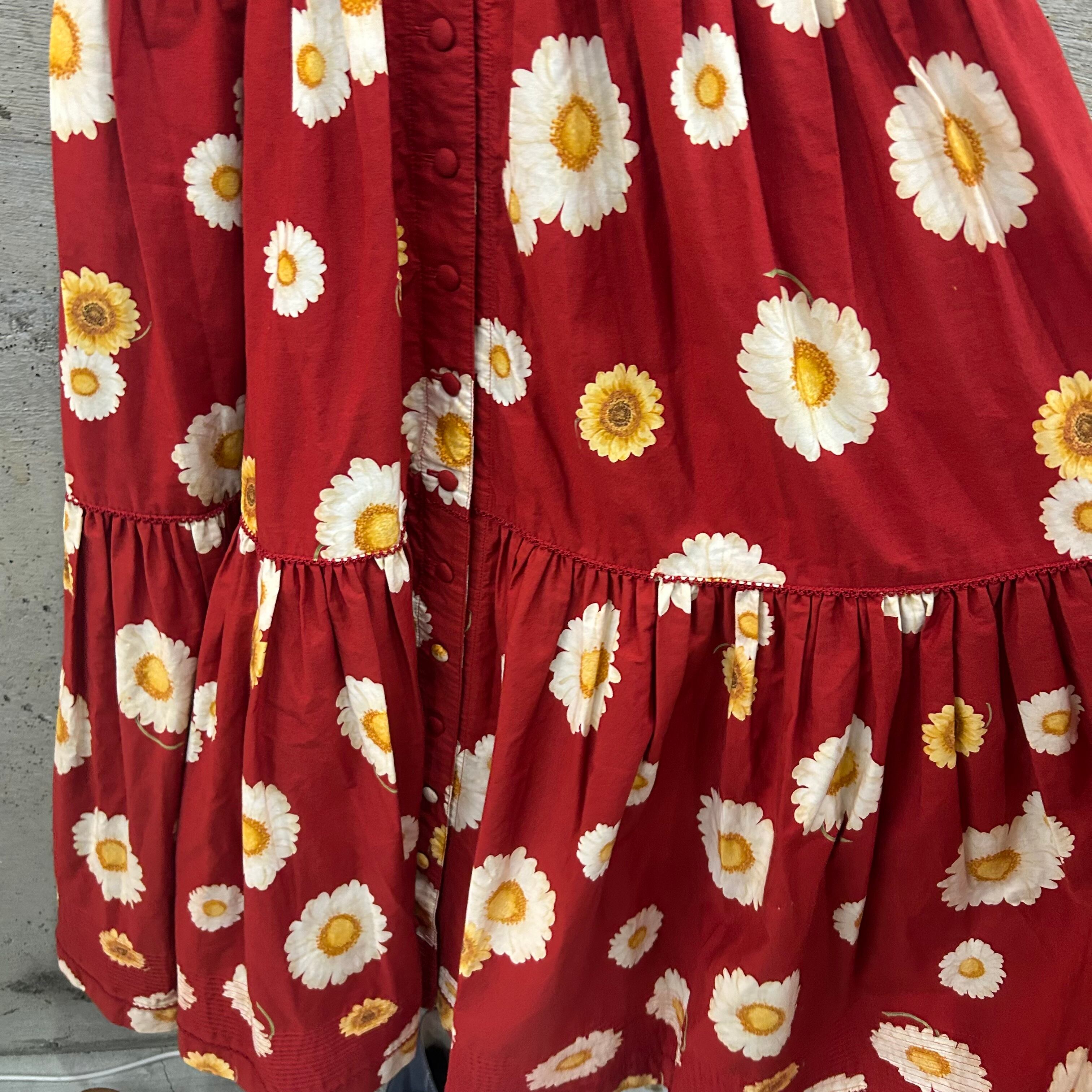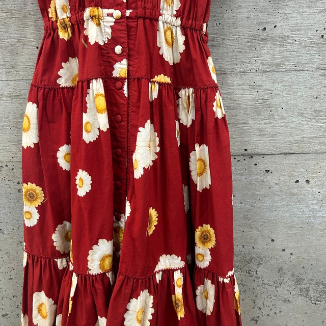 マーガレットとひまわり柄のボリュームたっぷりティアードワンピースです。