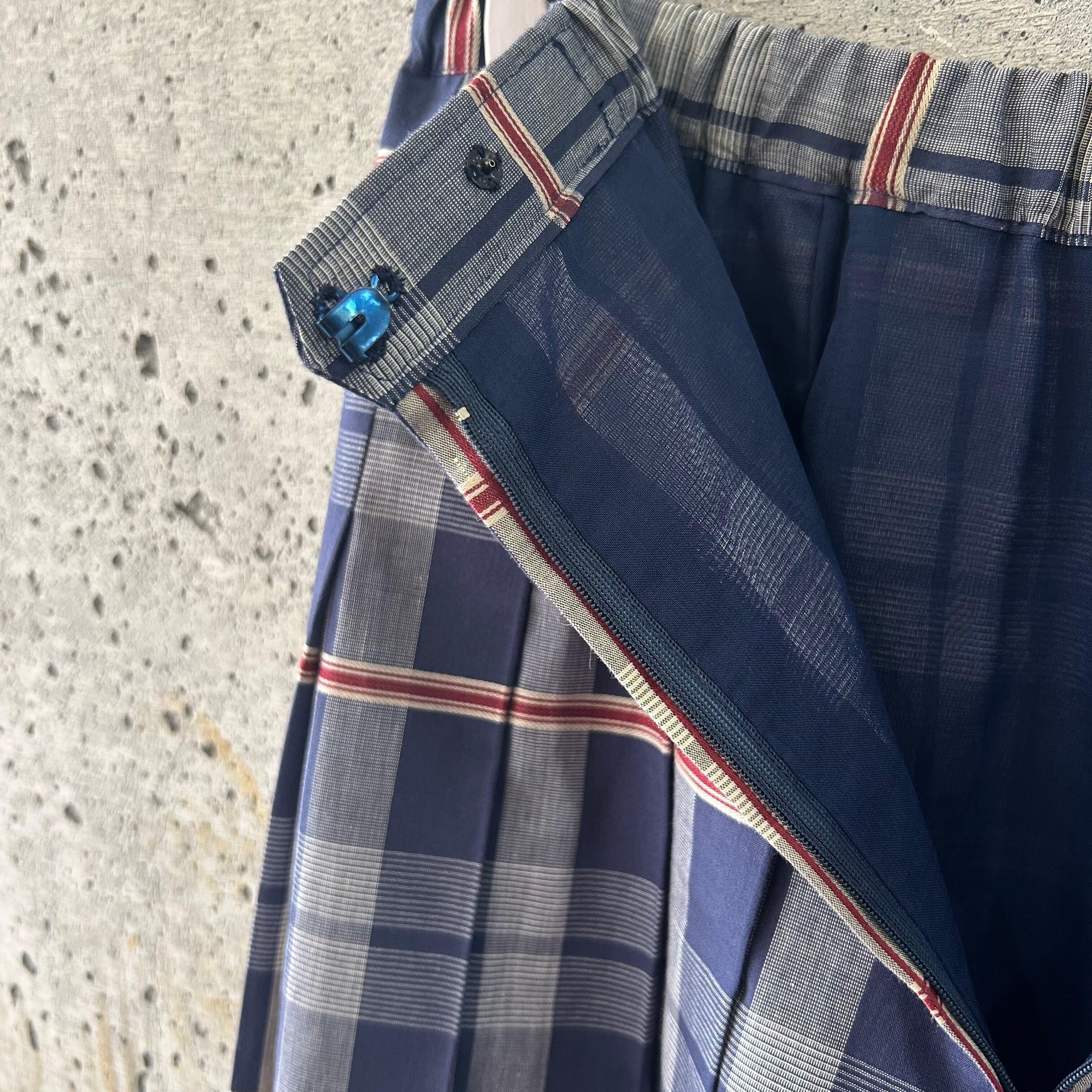ネイビーとボルドーのチェック柄とてもよく、男性でも履けるカジュアルさがあります。
