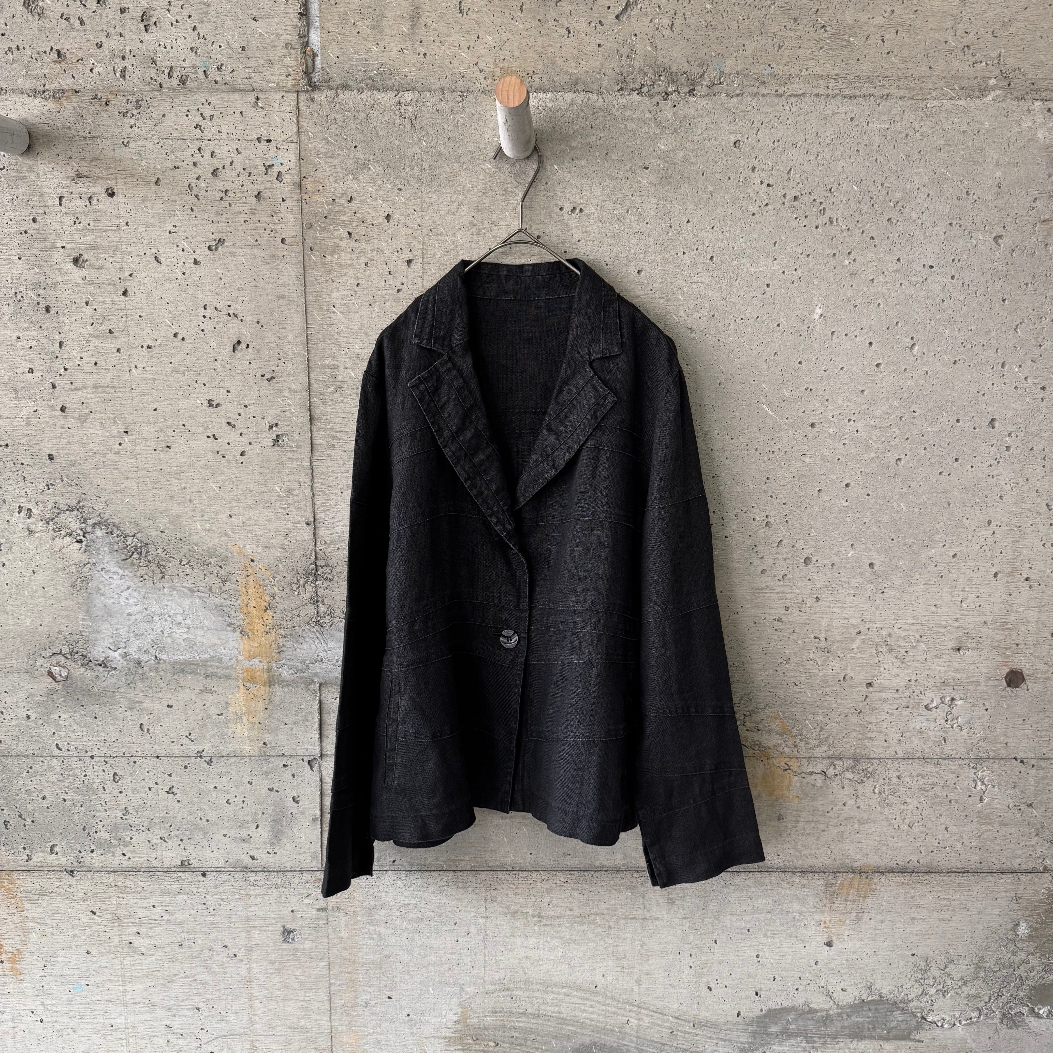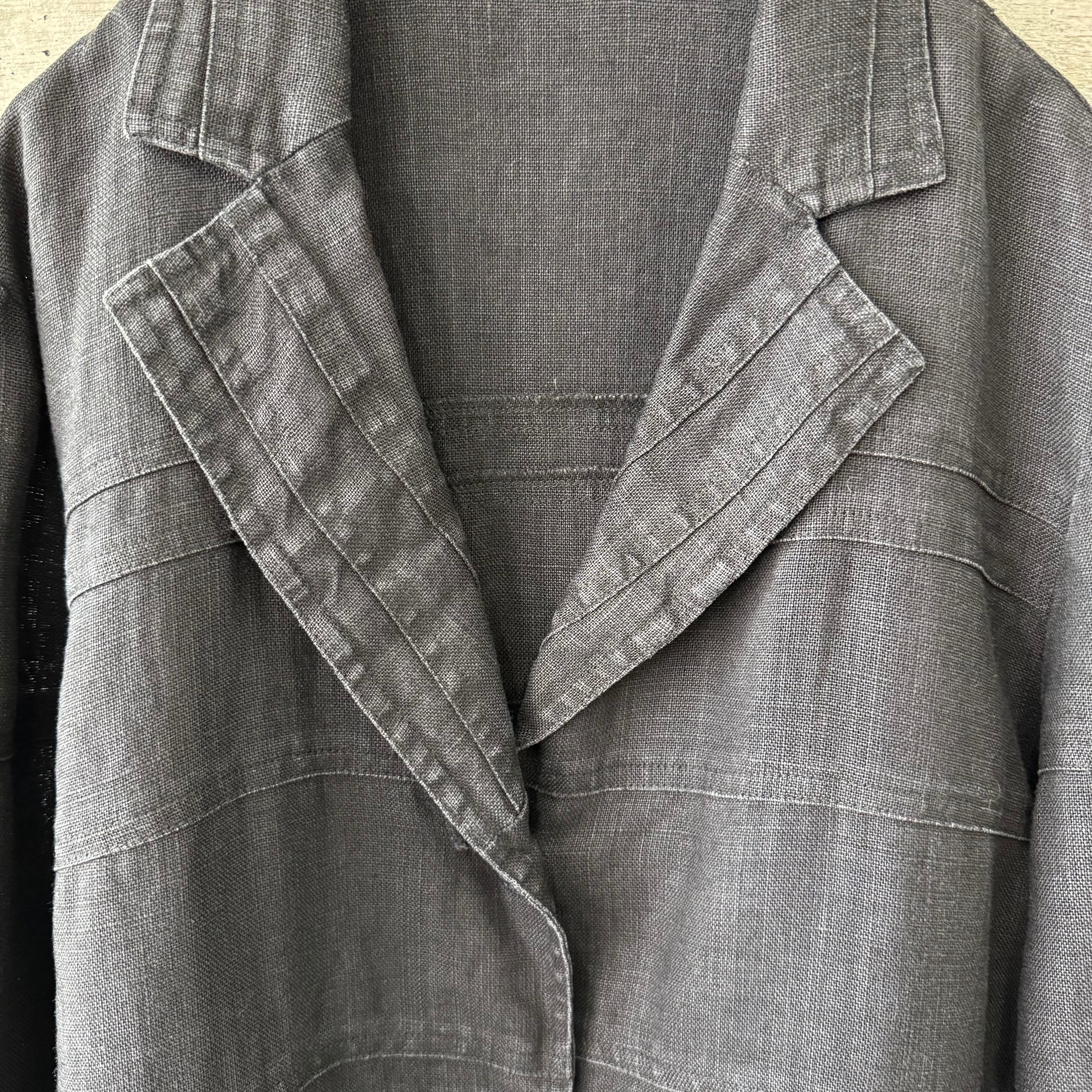 リネンの何層にも切り替えが施されたジャケットです。