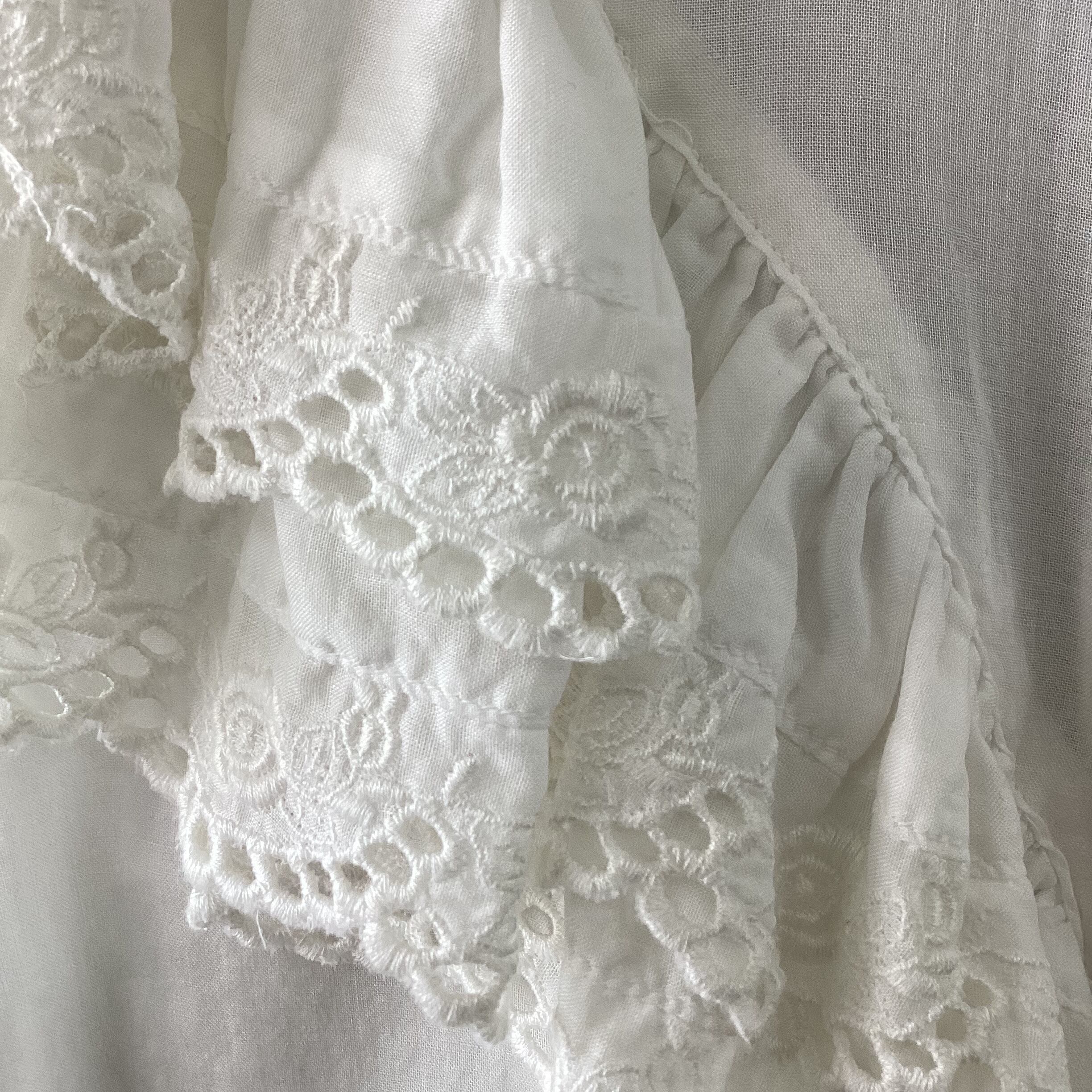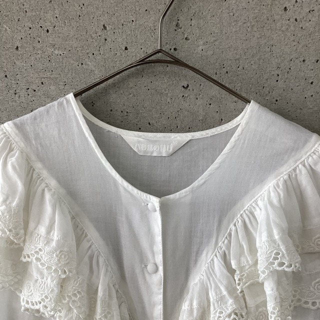 胸部にボリュームのあるフリルがついたノースリーブのトップスです。
