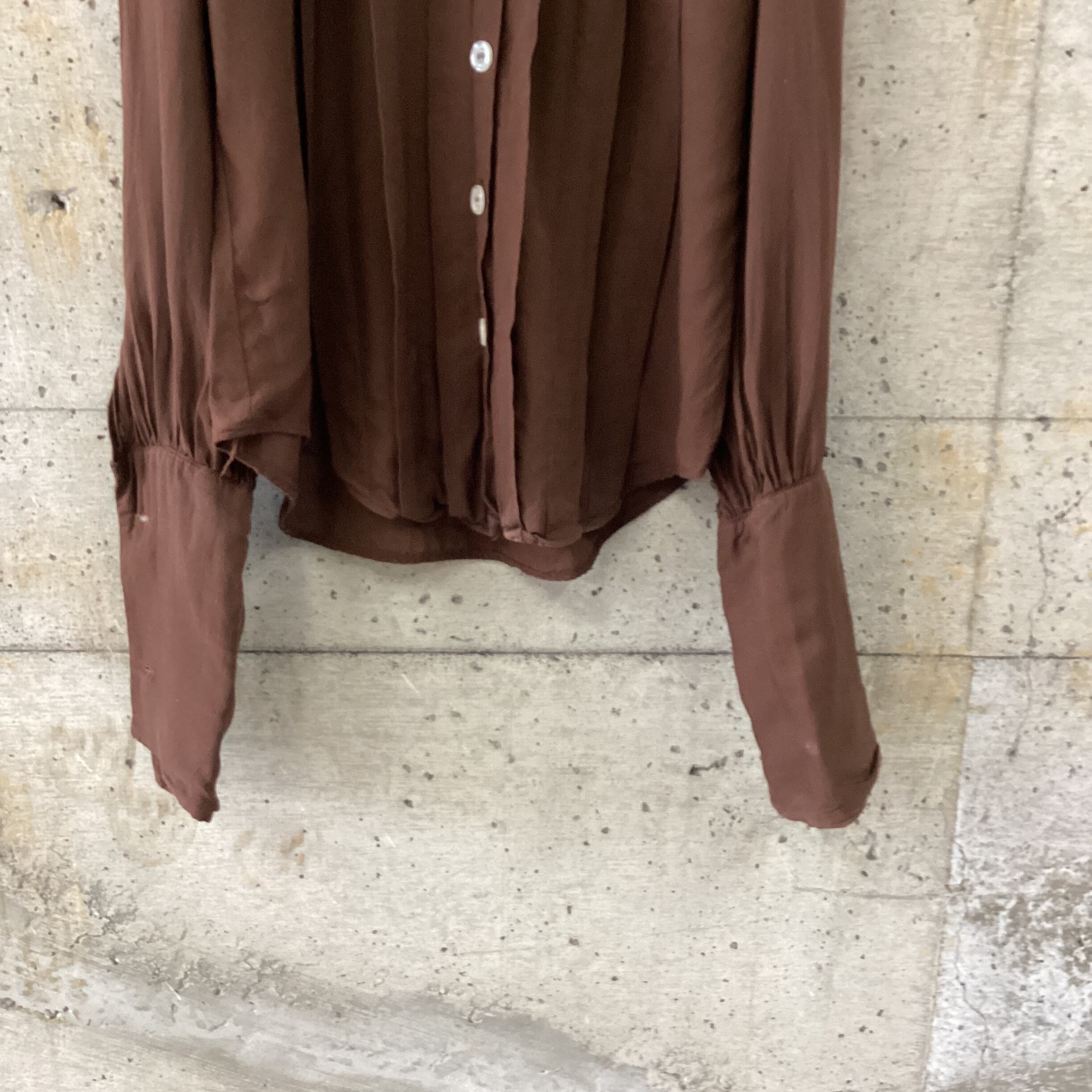 ガーゼのように柔らかい生地で作られたブラウンのシャツです。
