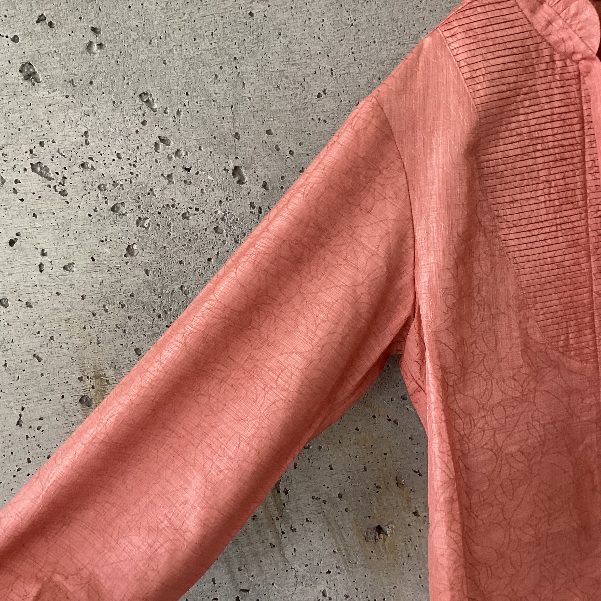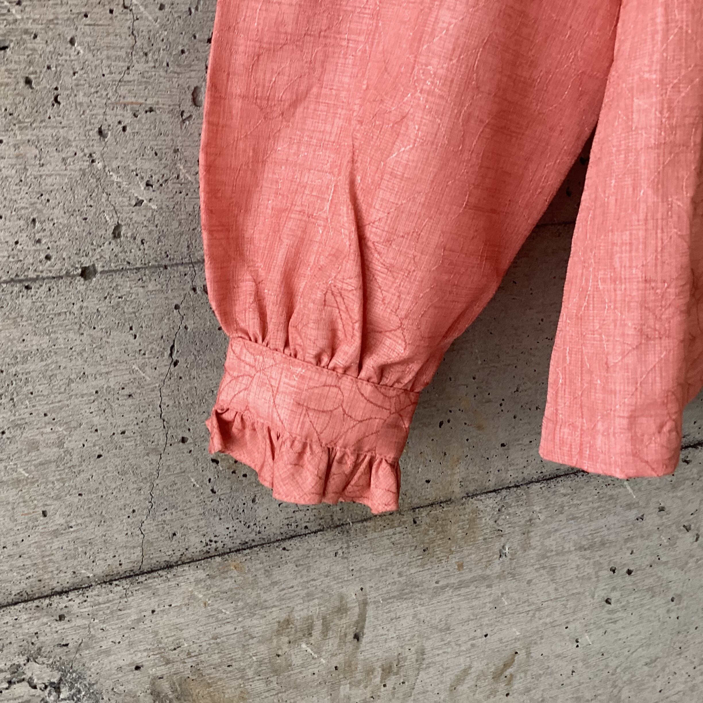 少しくすみのある、おしゃれなピンク色のブラウスです。