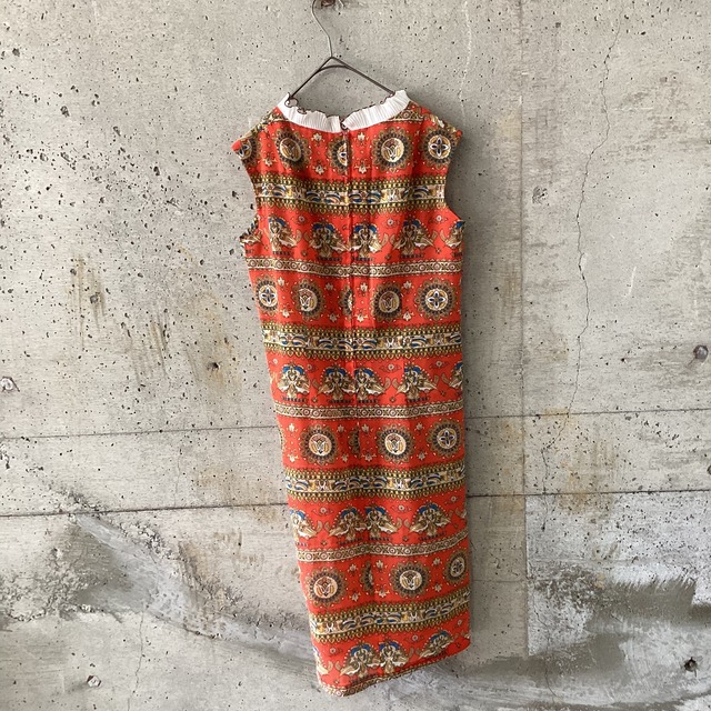 よく見ると孔雀のような柄になっていて、襟元のフリルともよく合い、とても素敵な1着です。