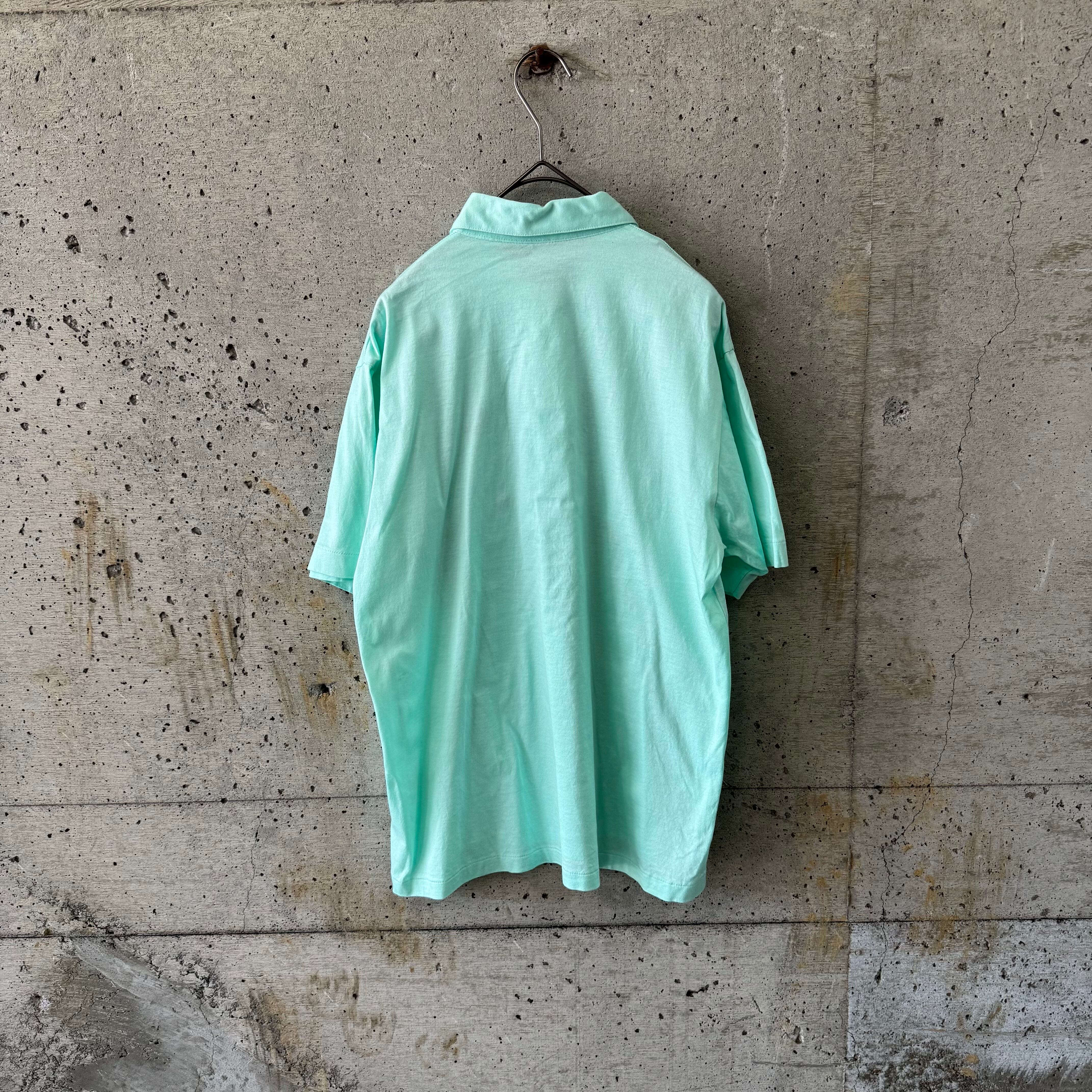Mint green flag embroidered round collar polo shirt