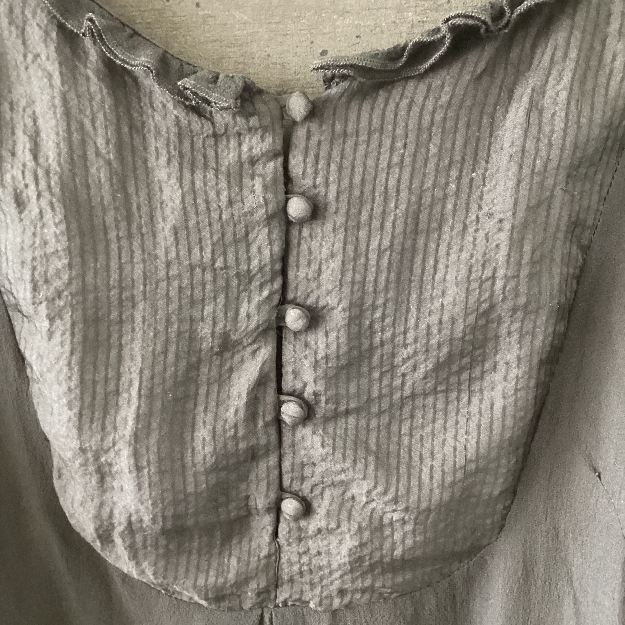 胸元の切り替えの生地がストライプの織り地になっていて、とても可愛いです。
