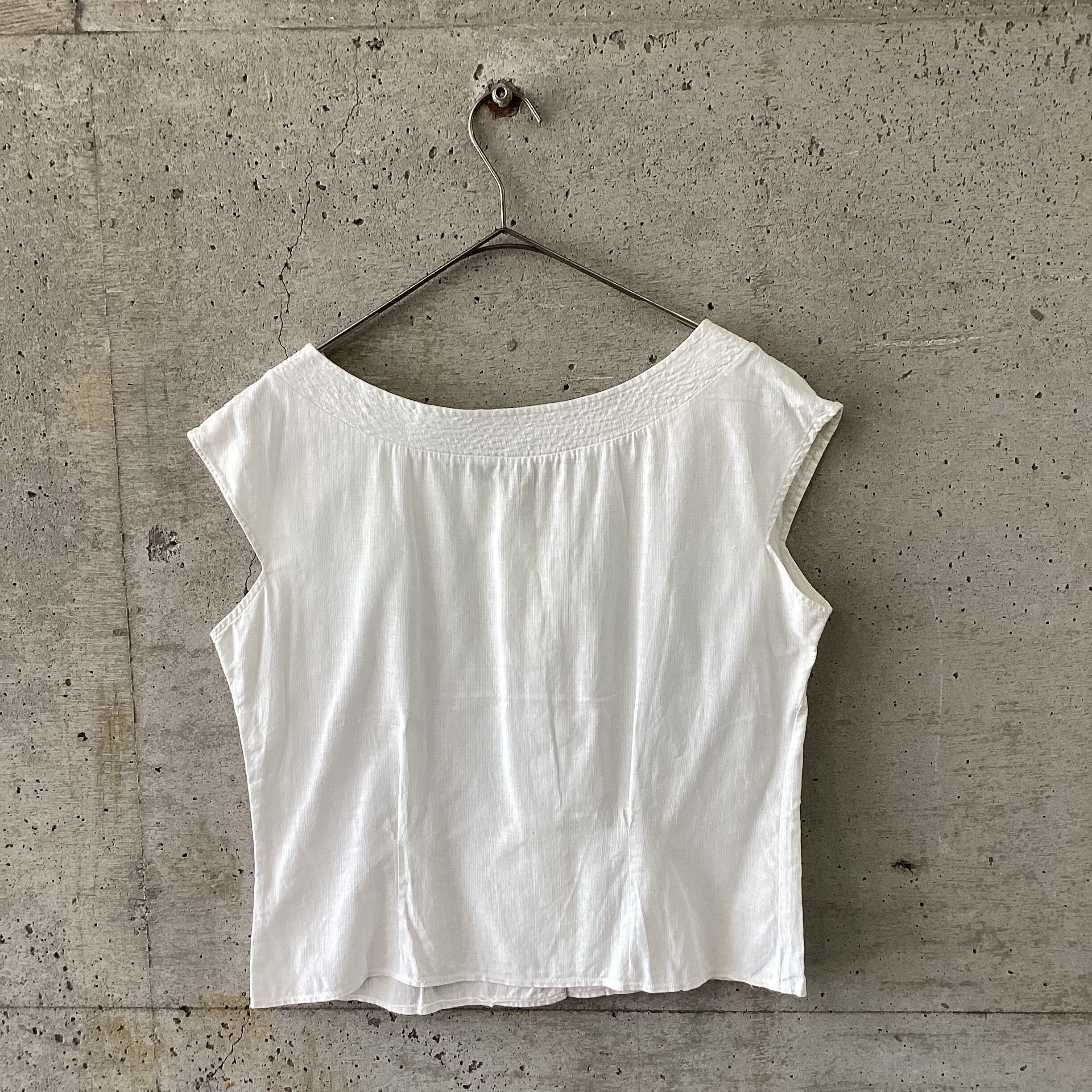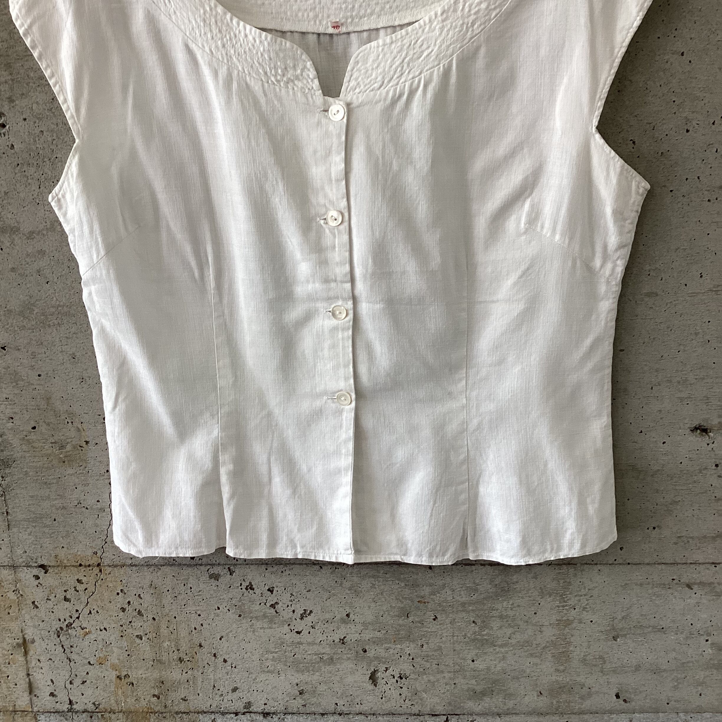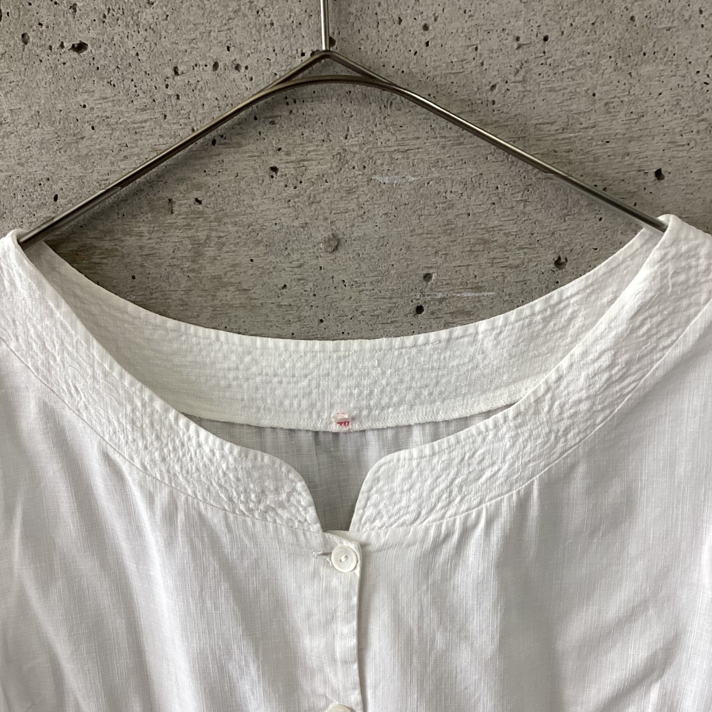 とてもシンプルなデザインのトップスですが、貝ボタンなどのこだわりを感じます。