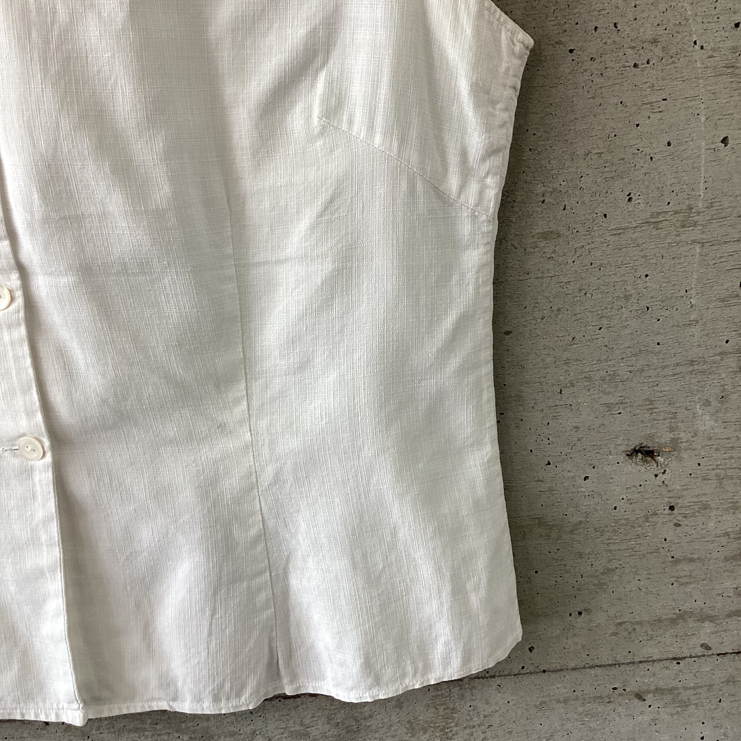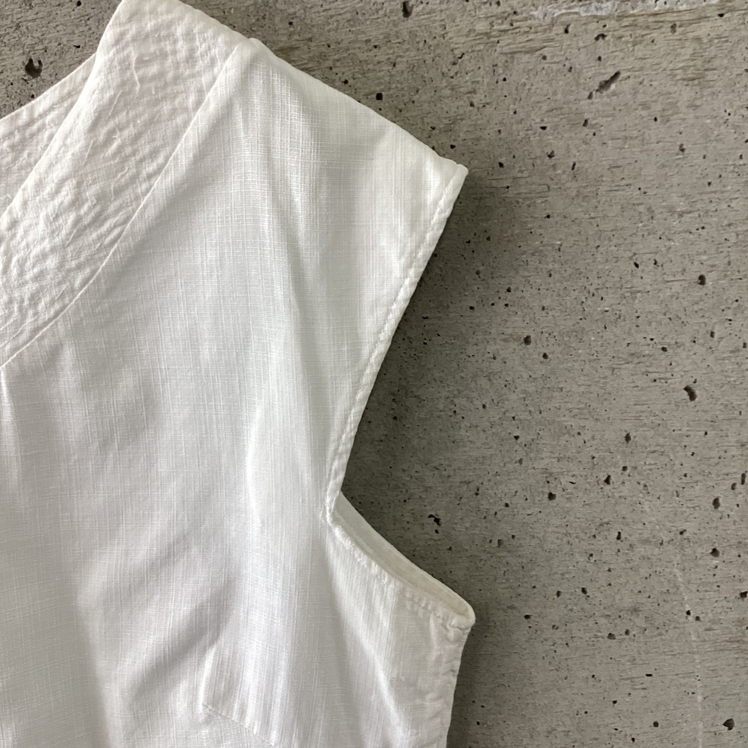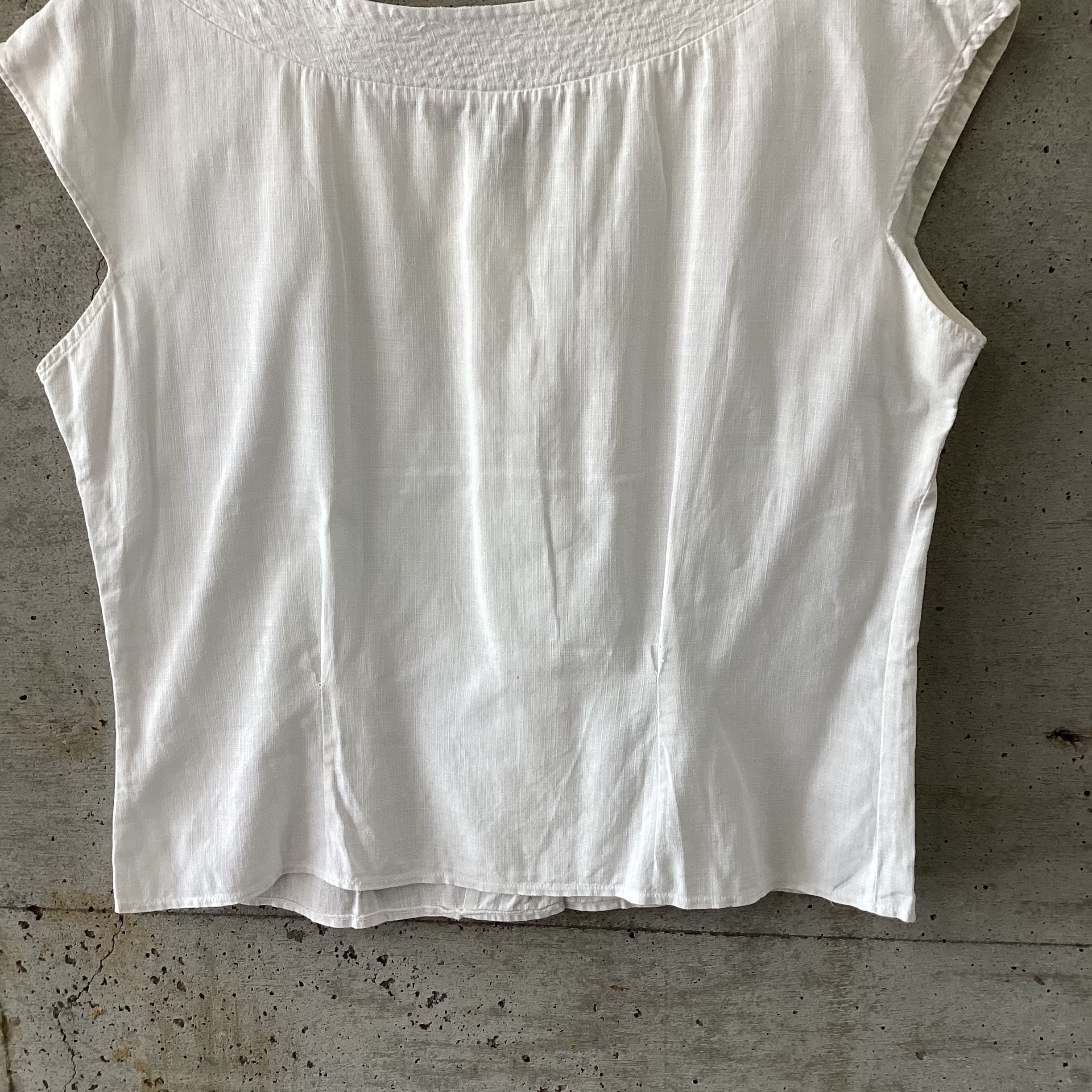 とてもシンプルなデザインのトップスですが、貝ボタンなどのこだわりを感じます。