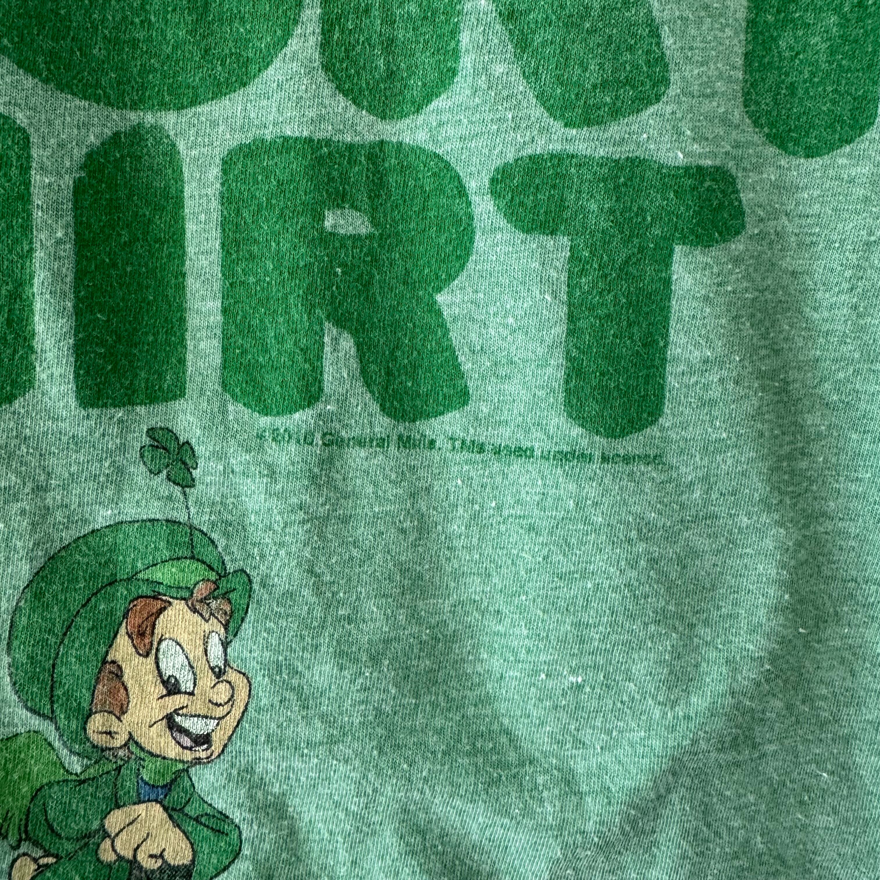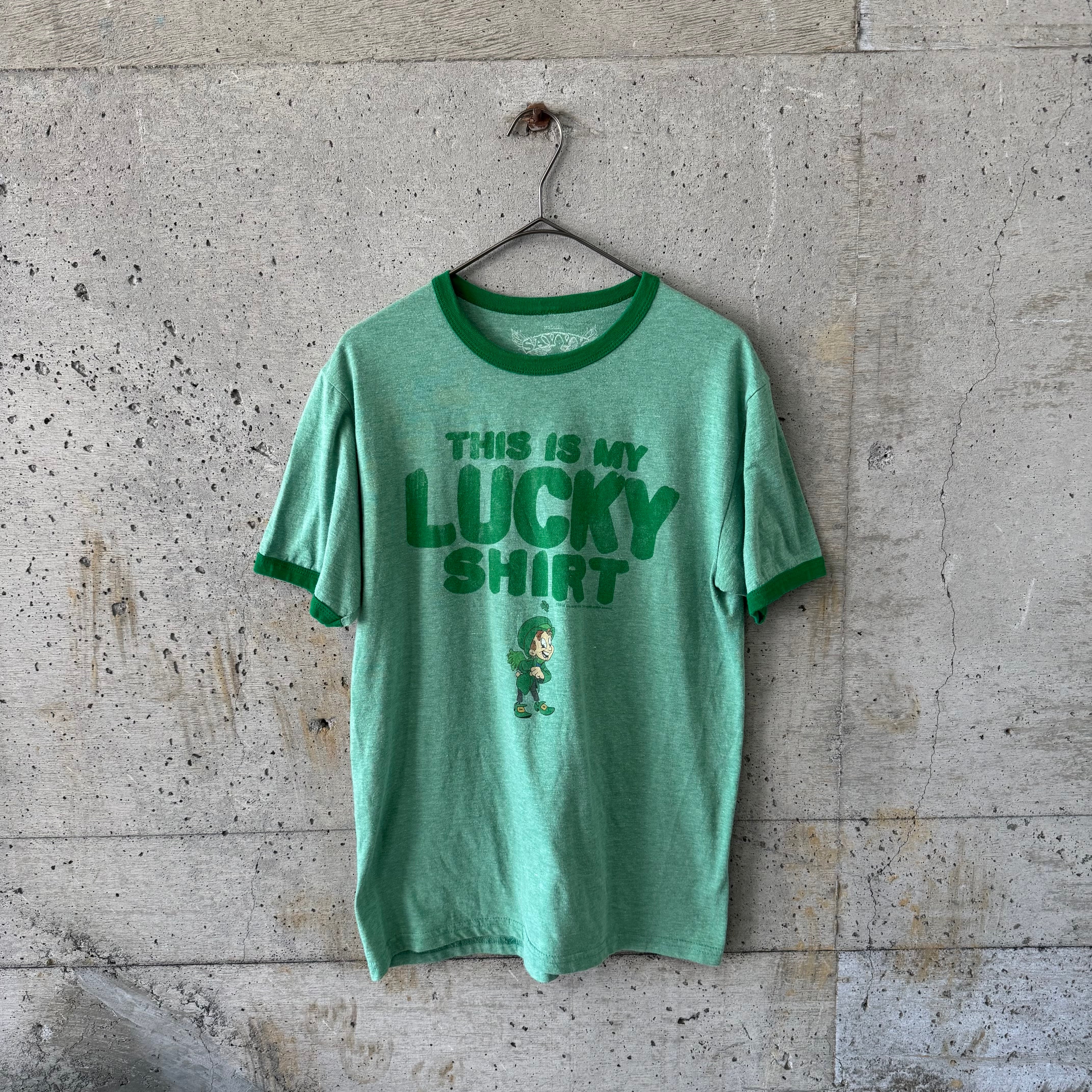 アメリカのシリアルである「ラッキーチャーム」のマスコットキャラクターがプリントされたリンガーTシャツです。