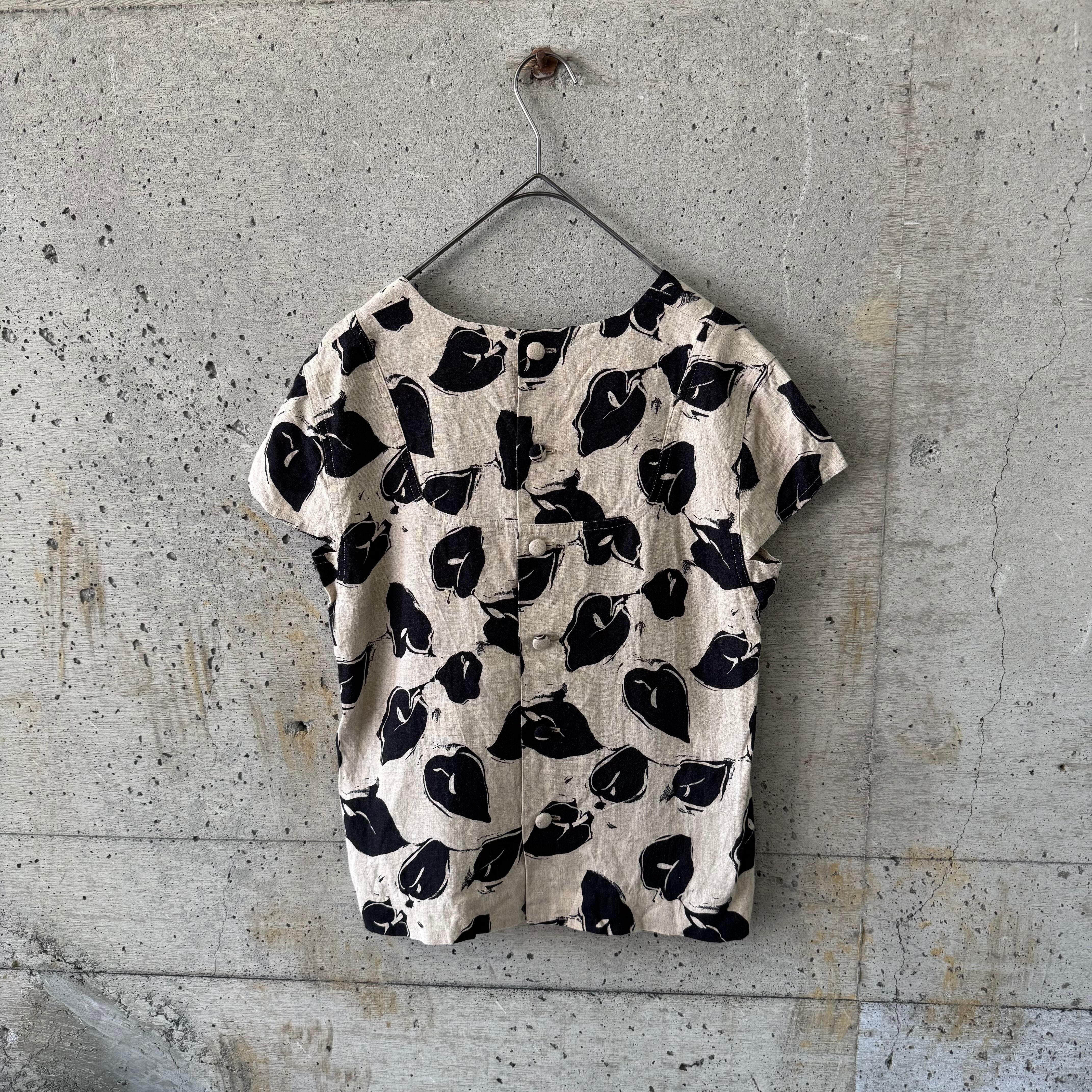 葉っぱのような総柄のトップスです。