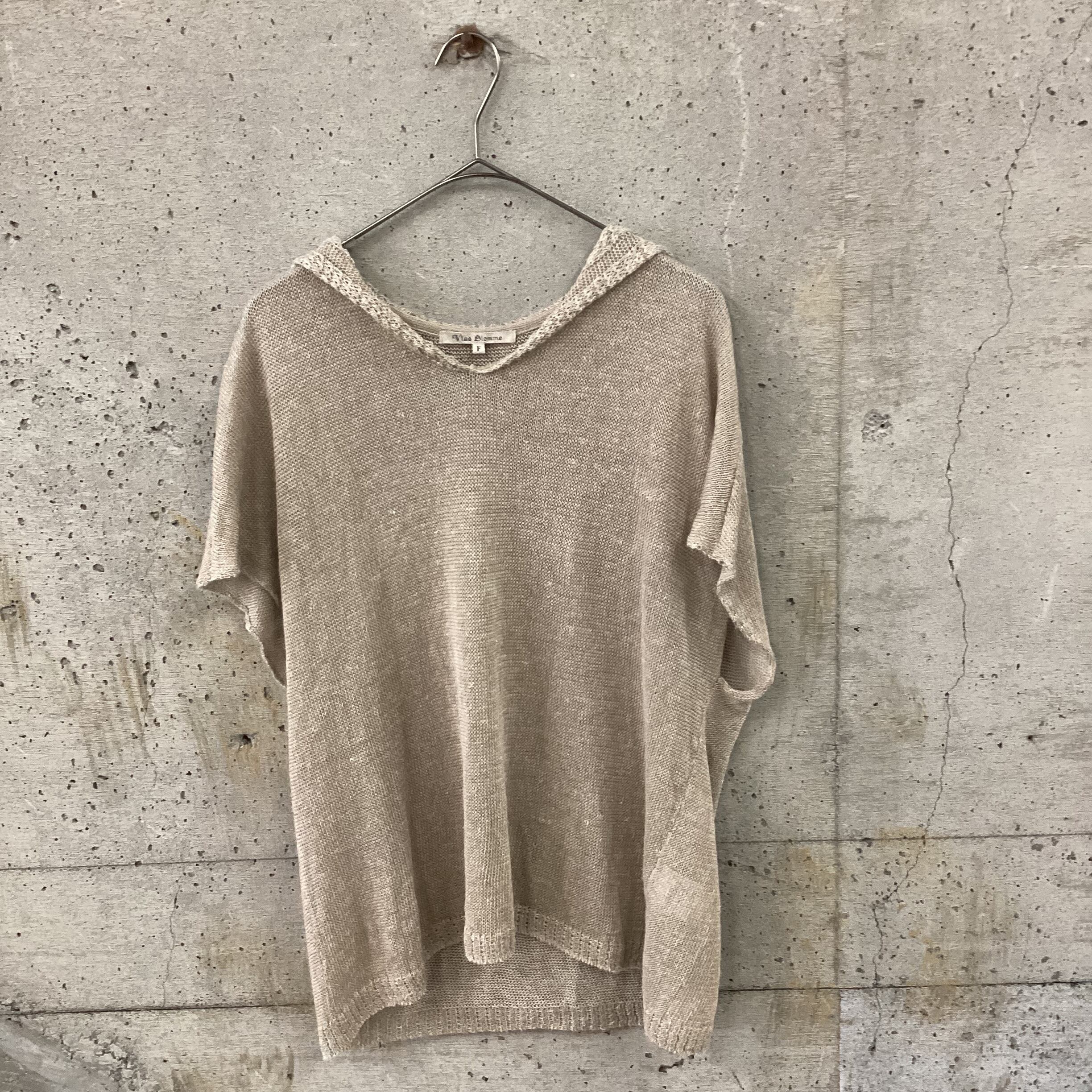 荒めに編まれたボディはサラサラとしていて目が大きいので風通りがよく、涼しく着用できます。