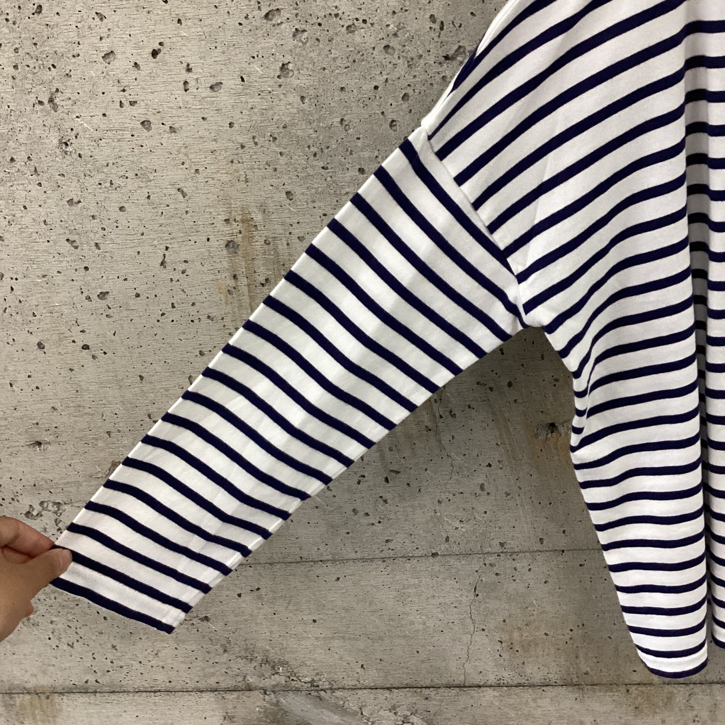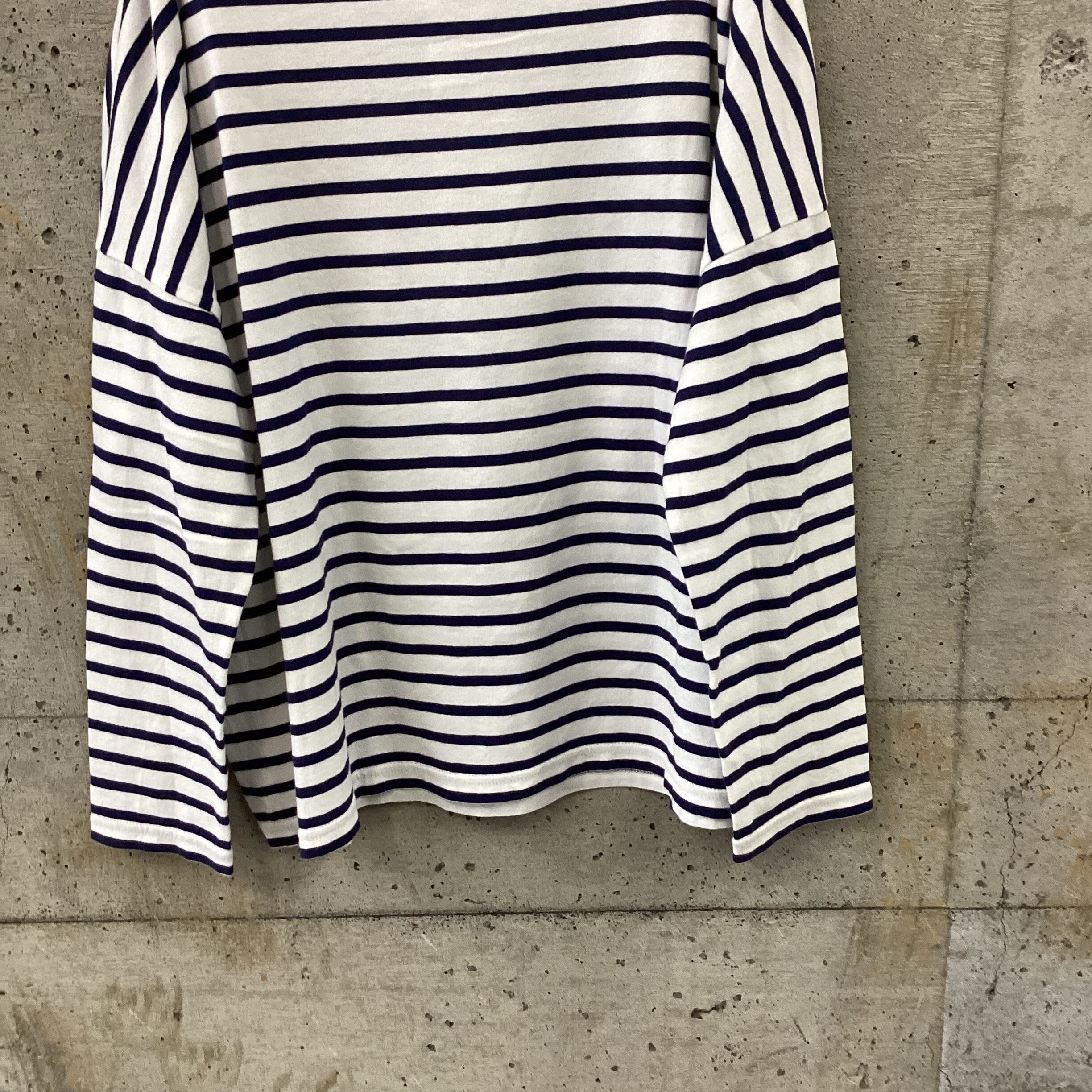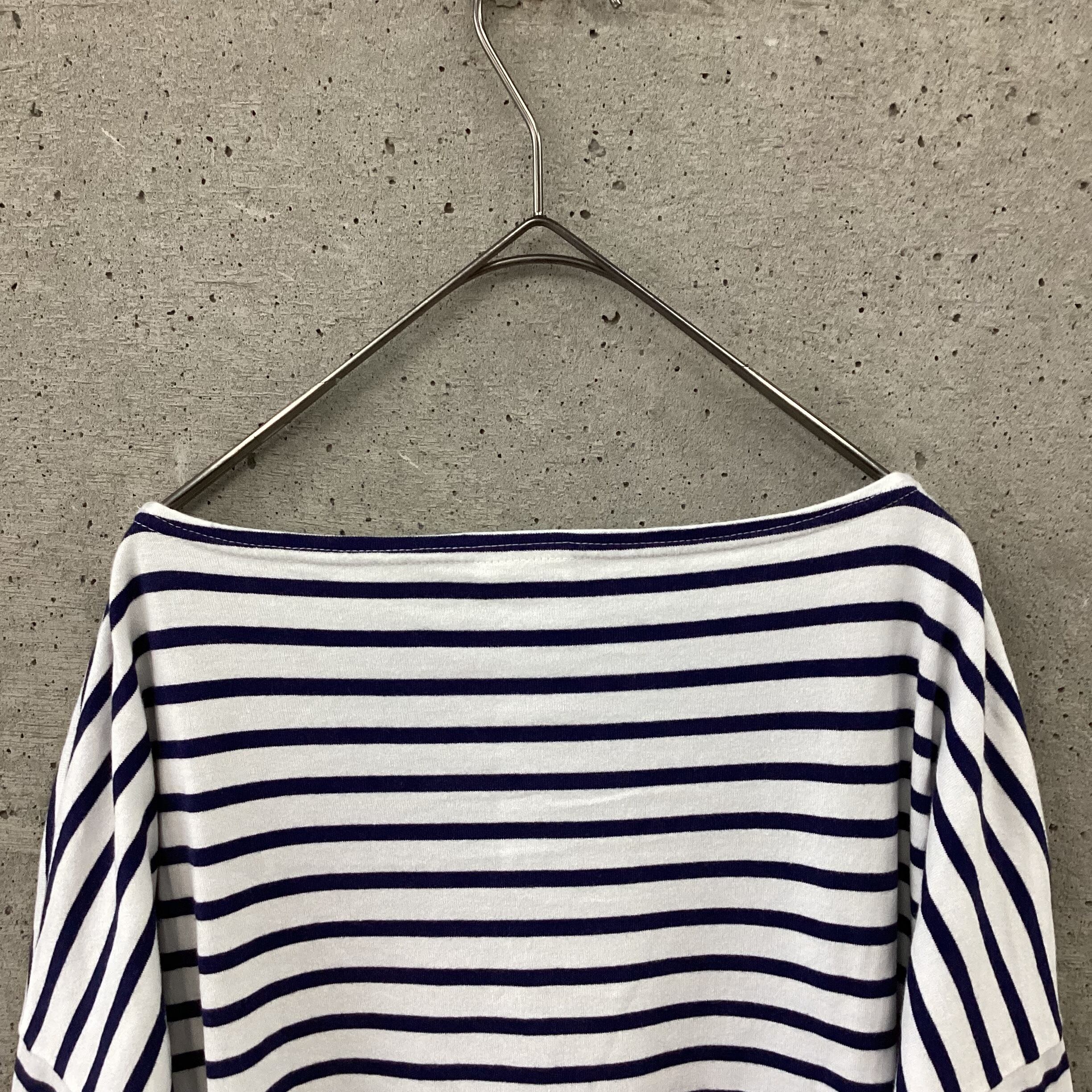 ボートネックで首元が綺麗にみえ、大きめのボーダーはゆるく綺麗な印象を与えてくれます。