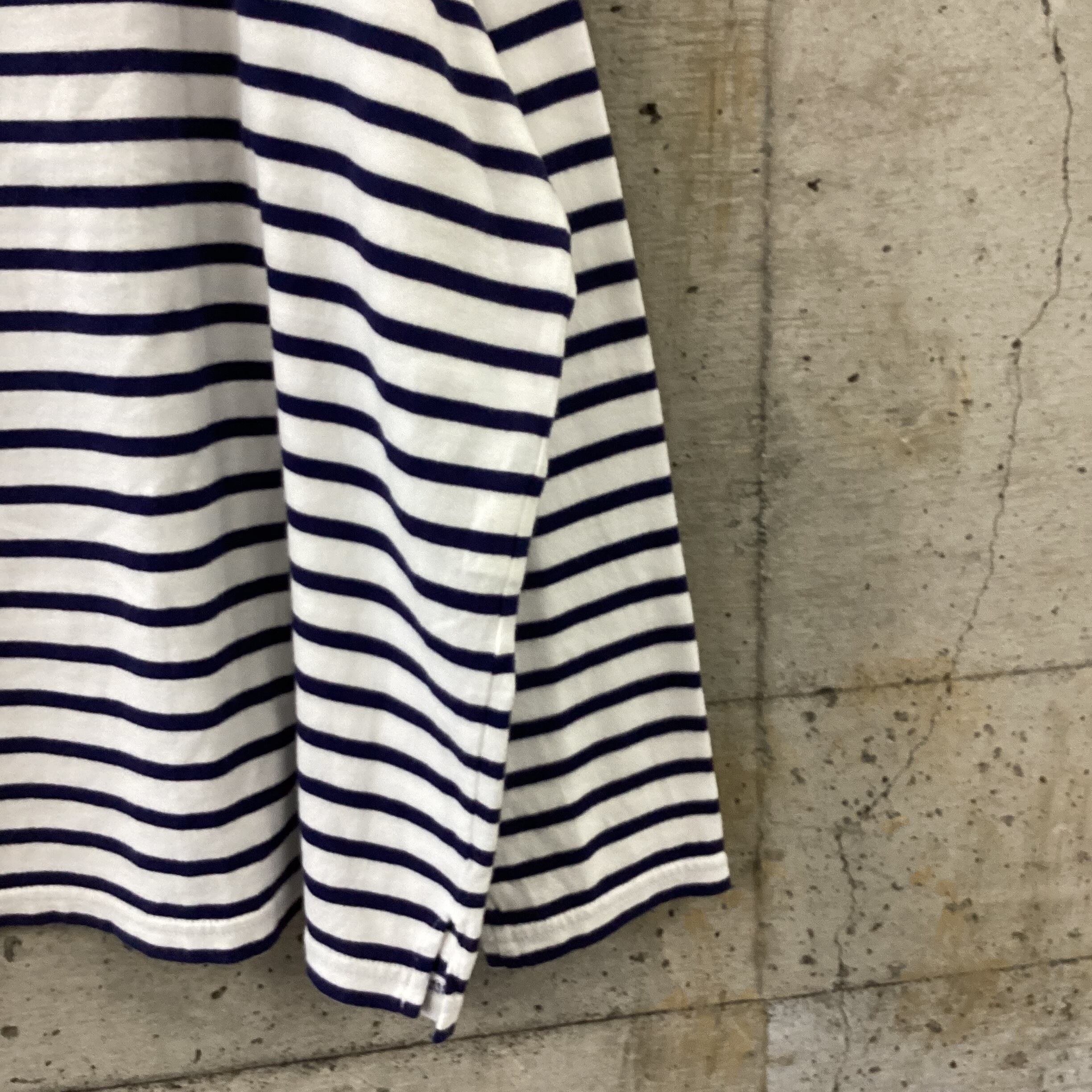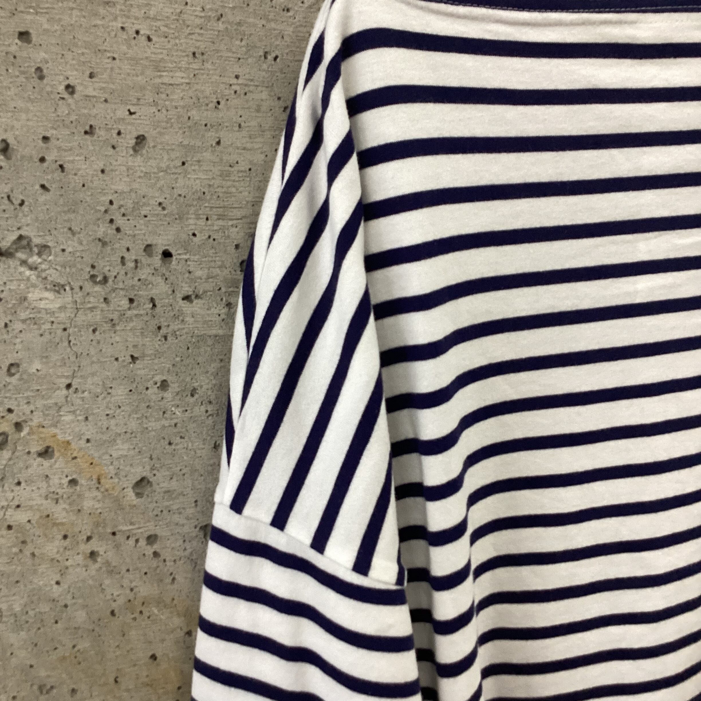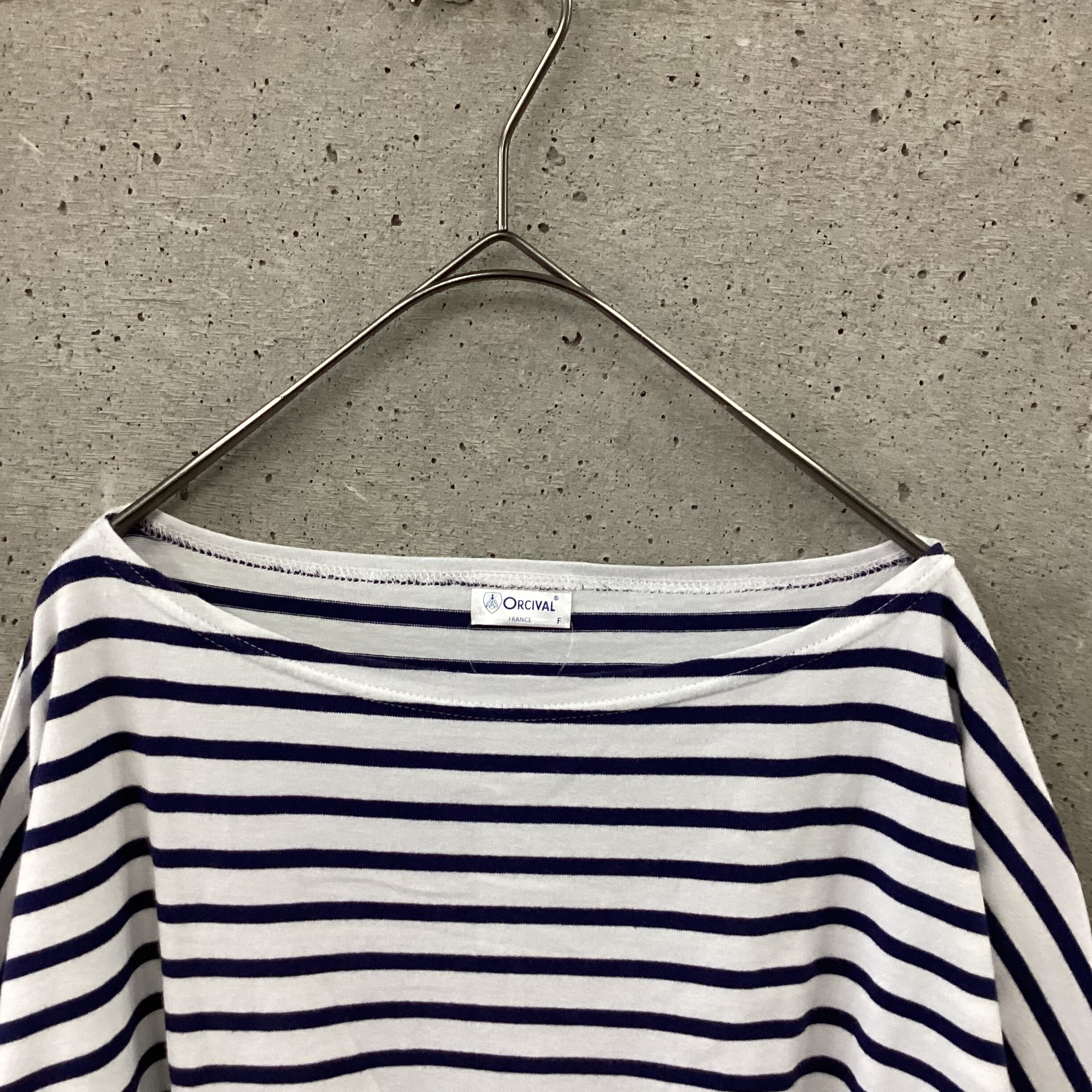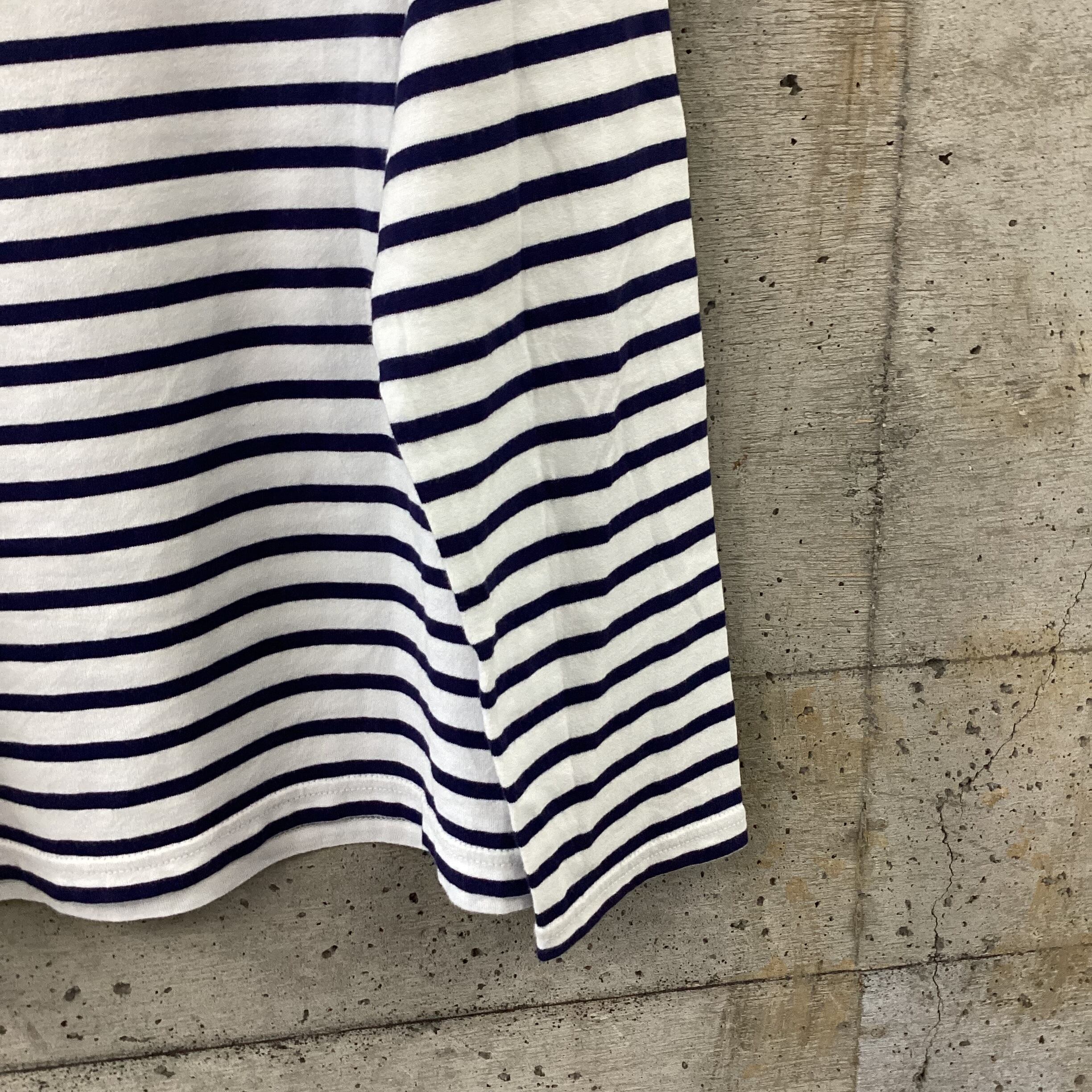 ボートネックで首元が綺麗にみえ、大きめのボーダーはゆるく綺麗な印象を与えてくれます。