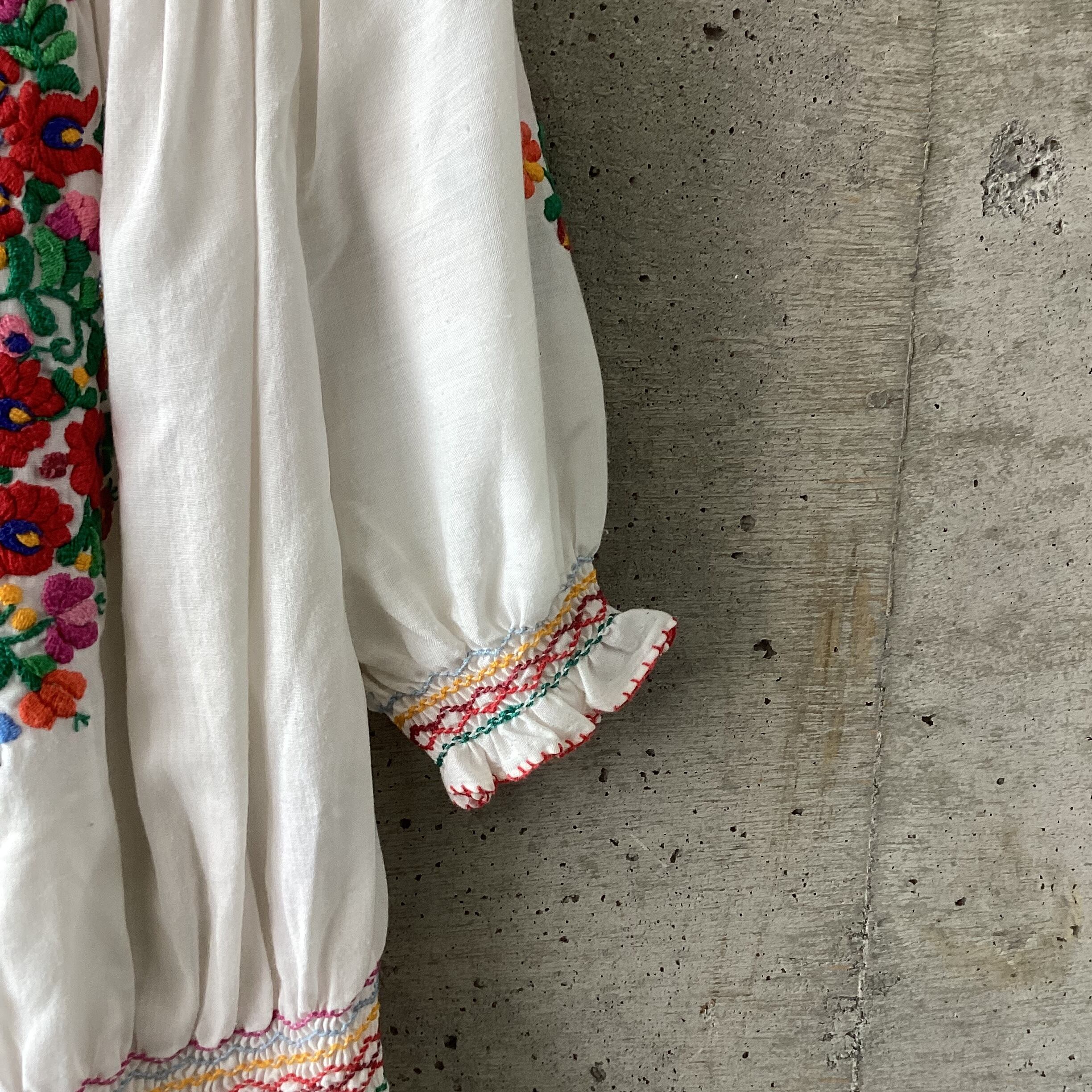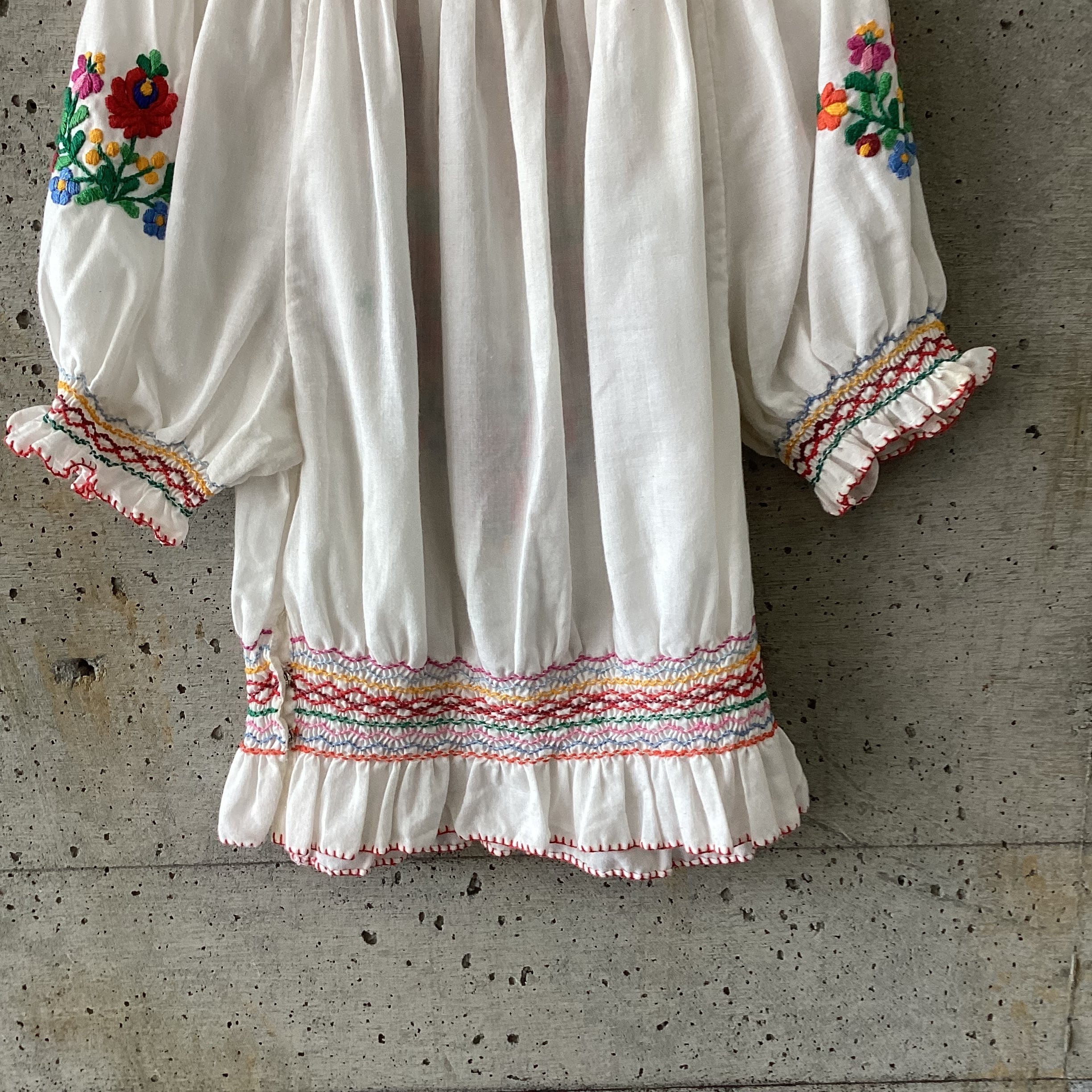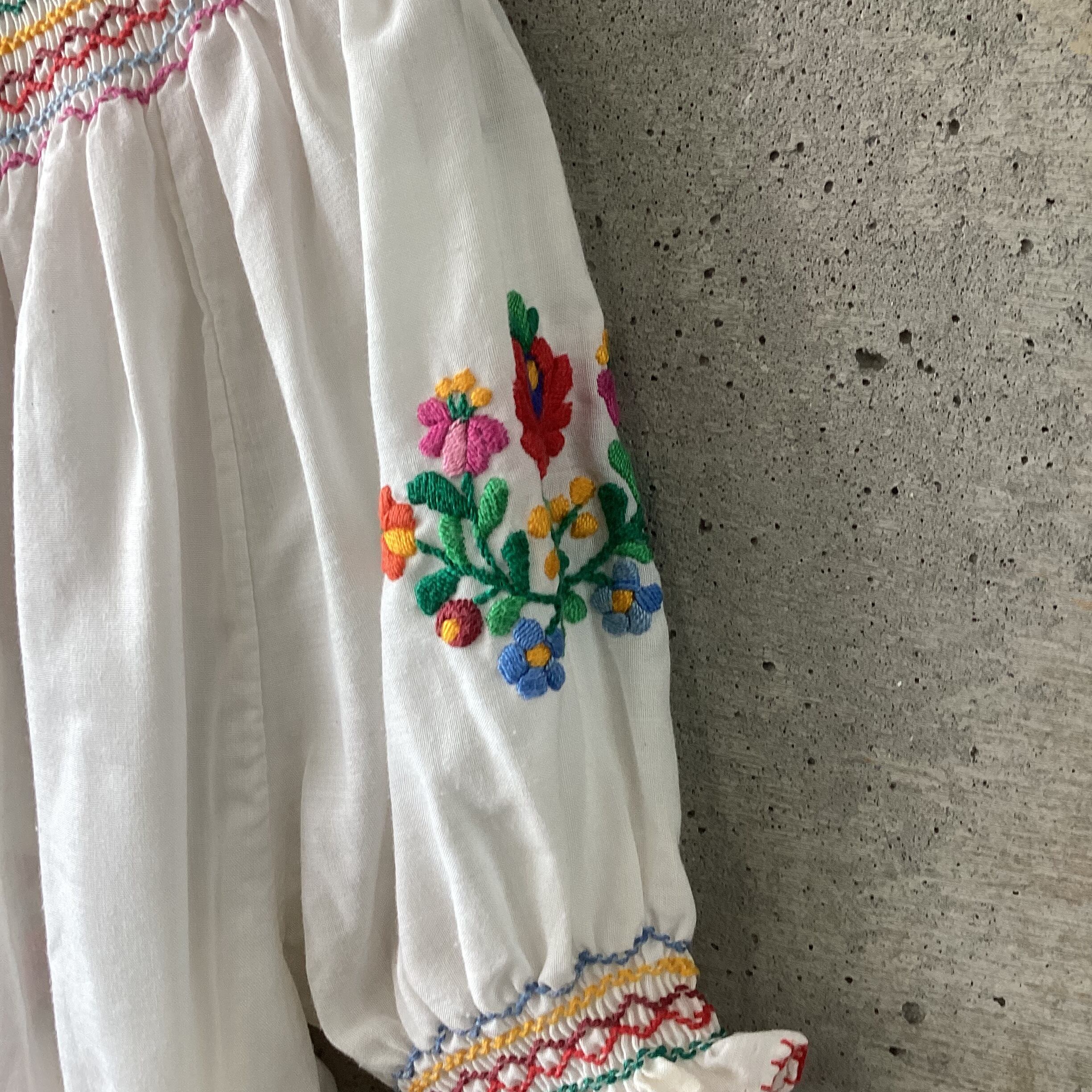 カラフルな糸が使われたスモック刺繍のトップスです。