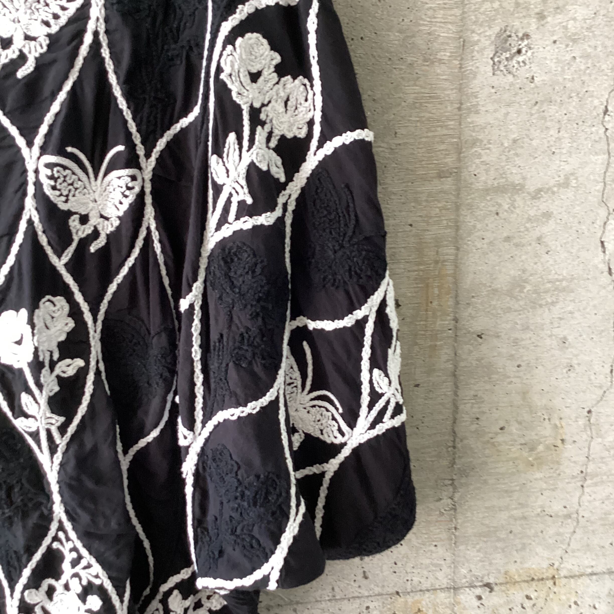 Black embroidered poncho-style top