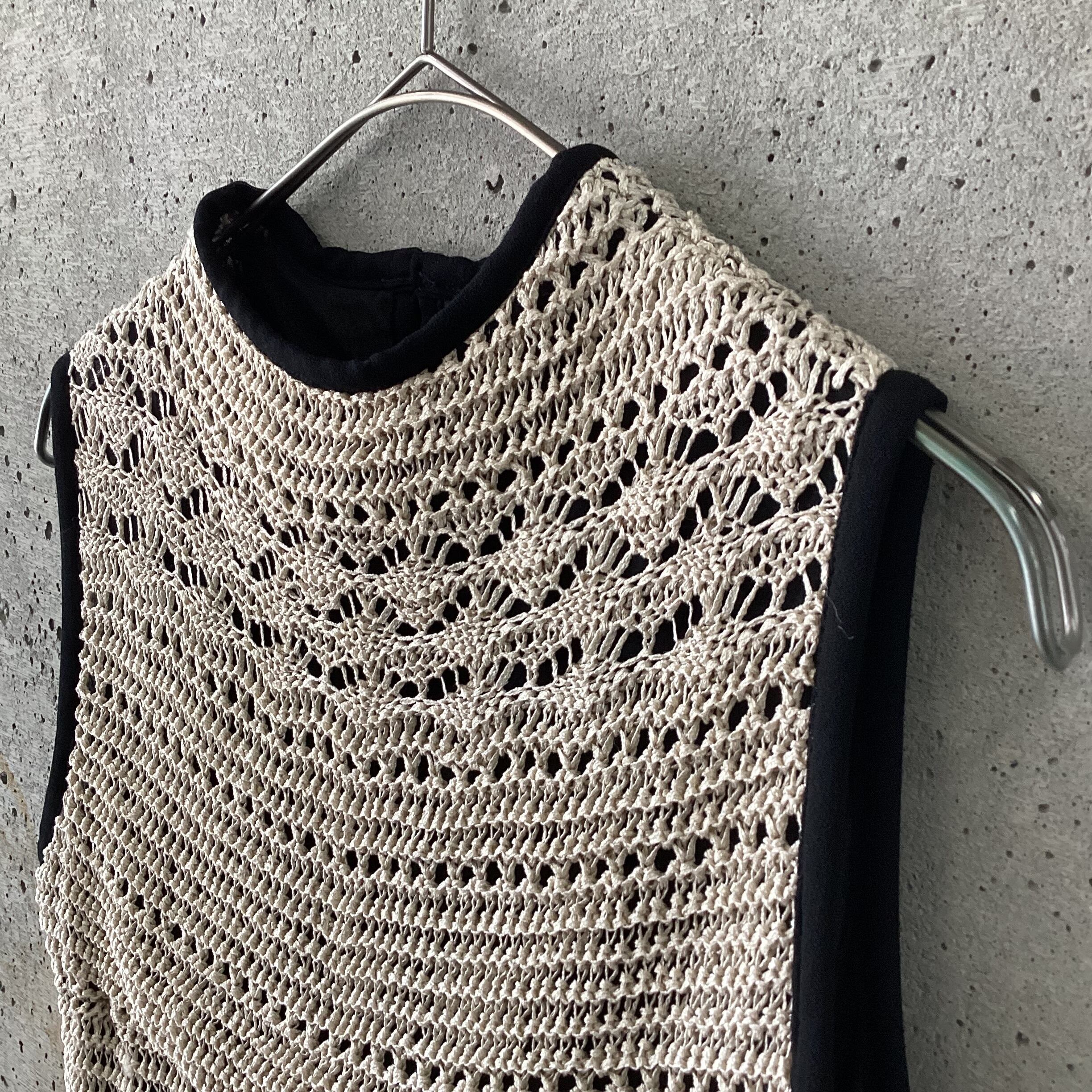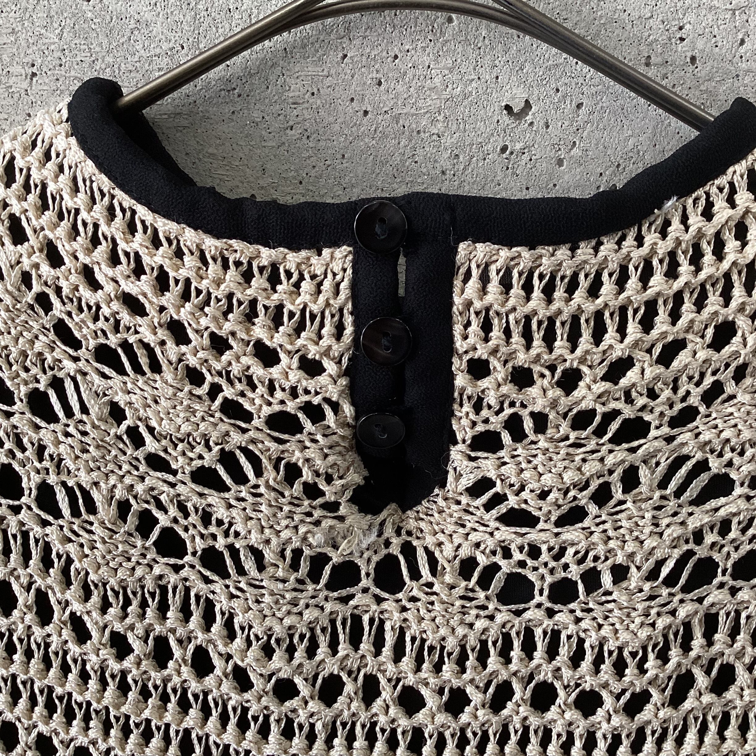 黒のシースルーとベージュのニットが重なった珍しいトップスです