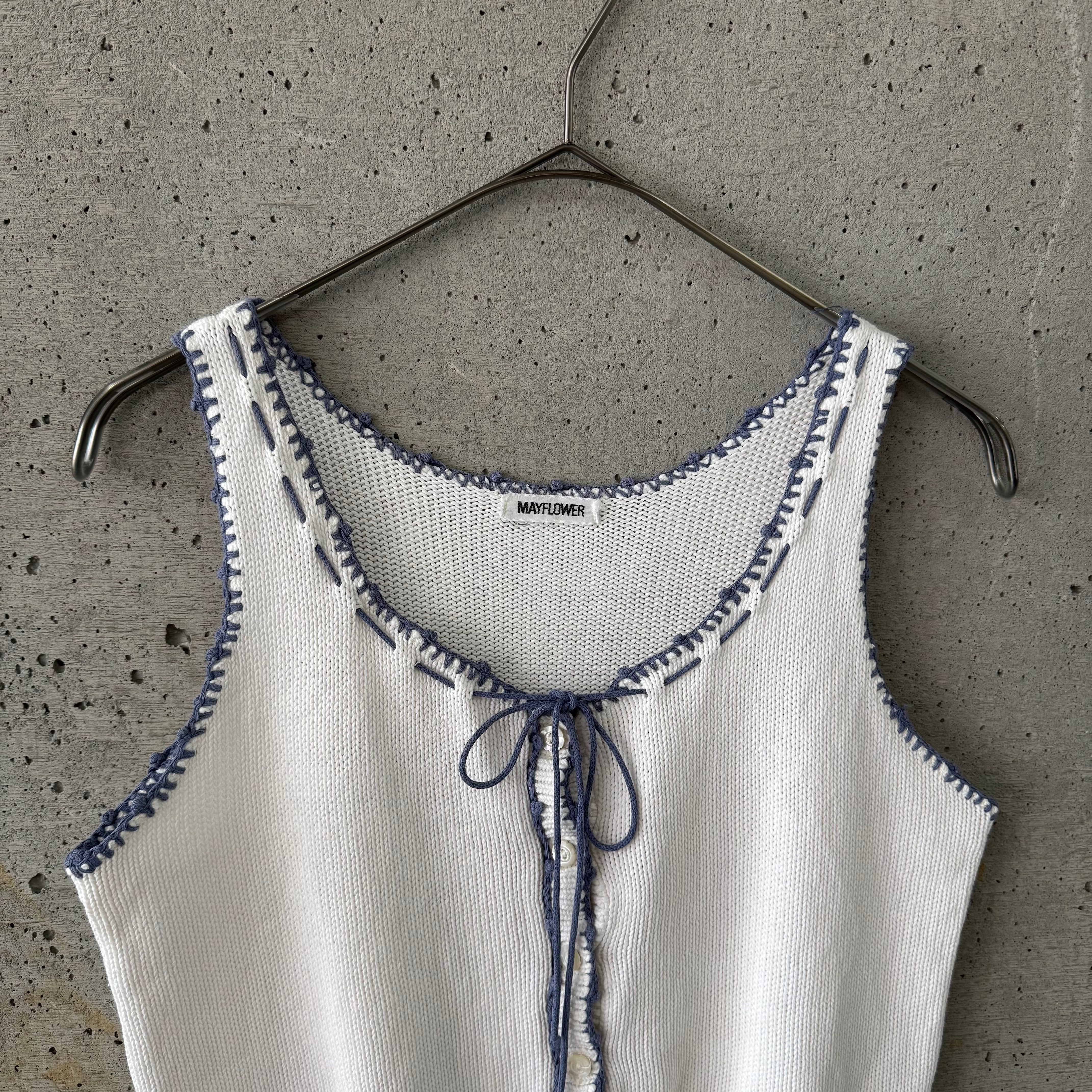 ホワイトとブルーの組み合わせが涼しげで、ステッチとして取り込まれた青色がポイントになっています。