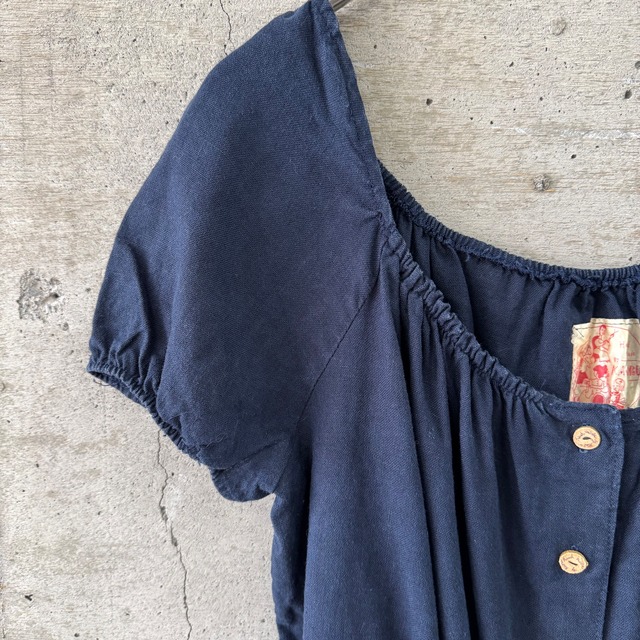 木のボタンで、ネイビーのボディとの配色が良いです。