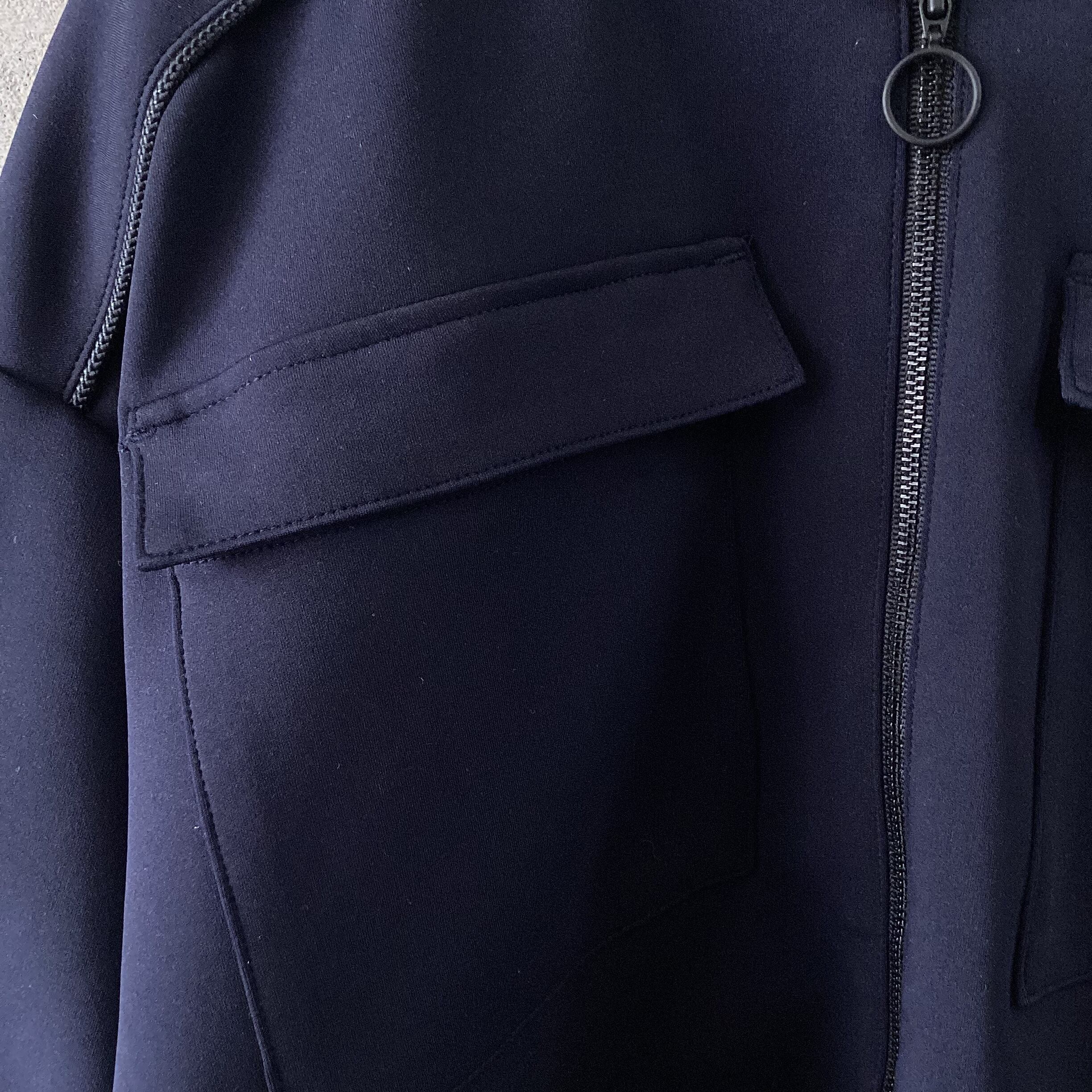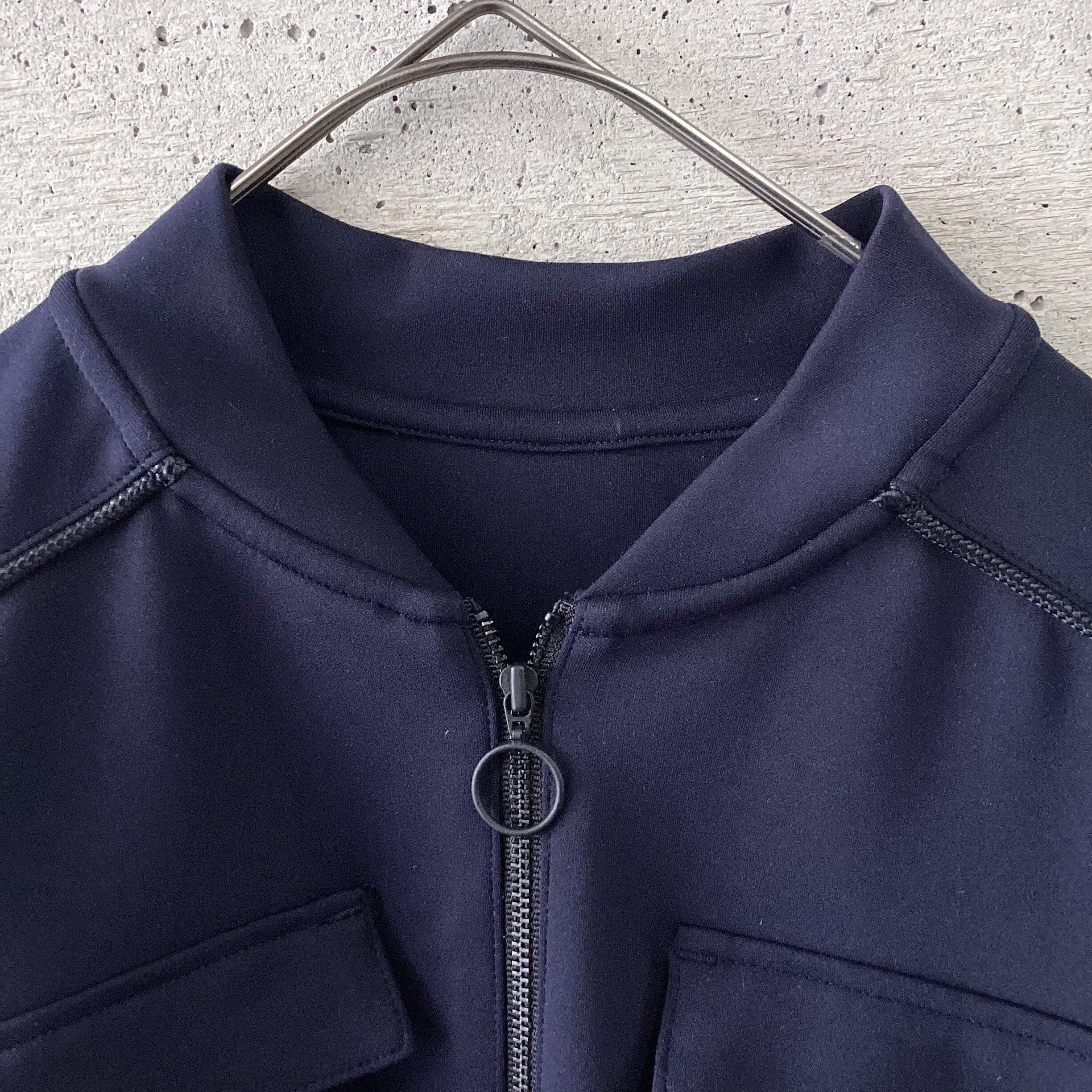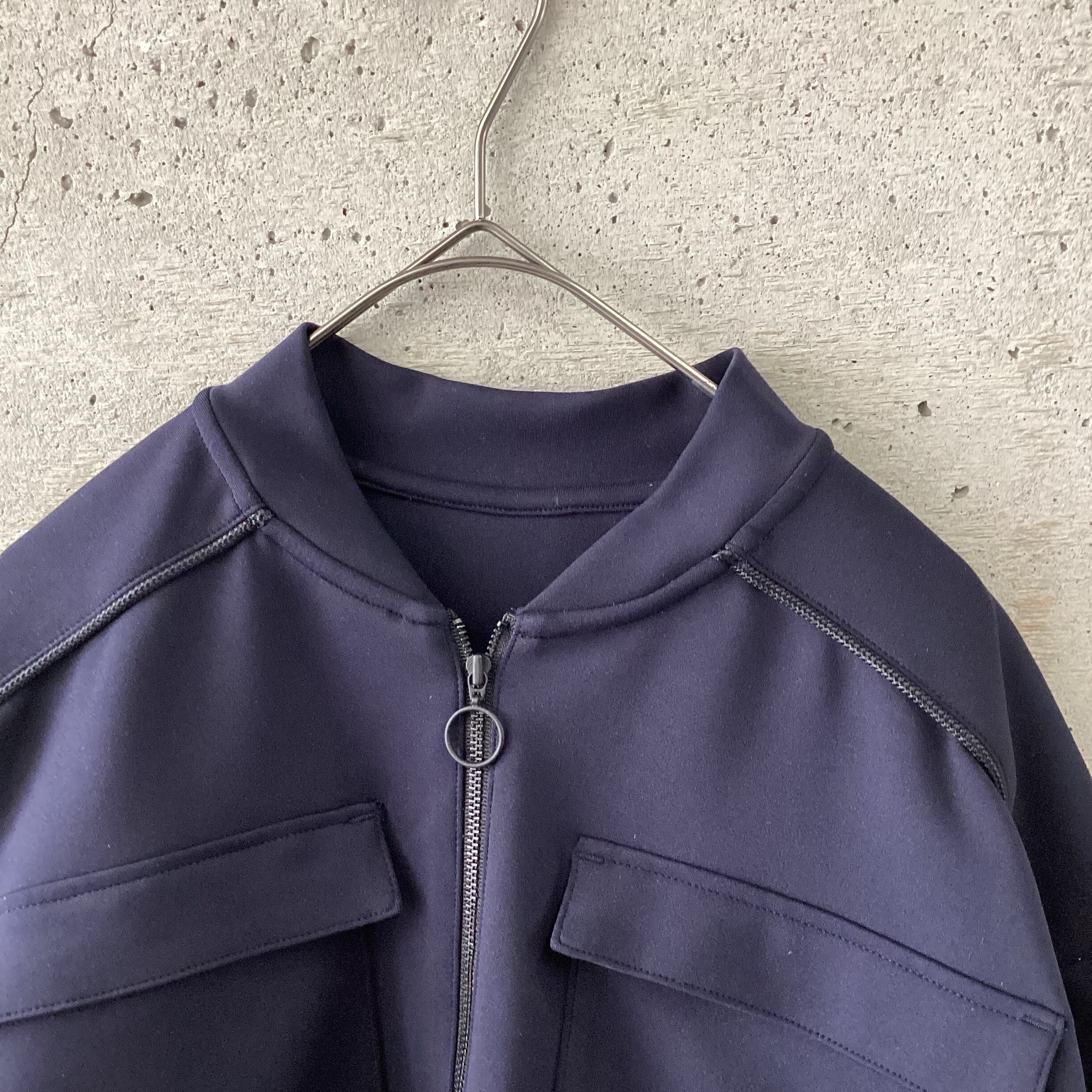 ストレッチ性のある厚手のポリ生地のジップカーディガンです。