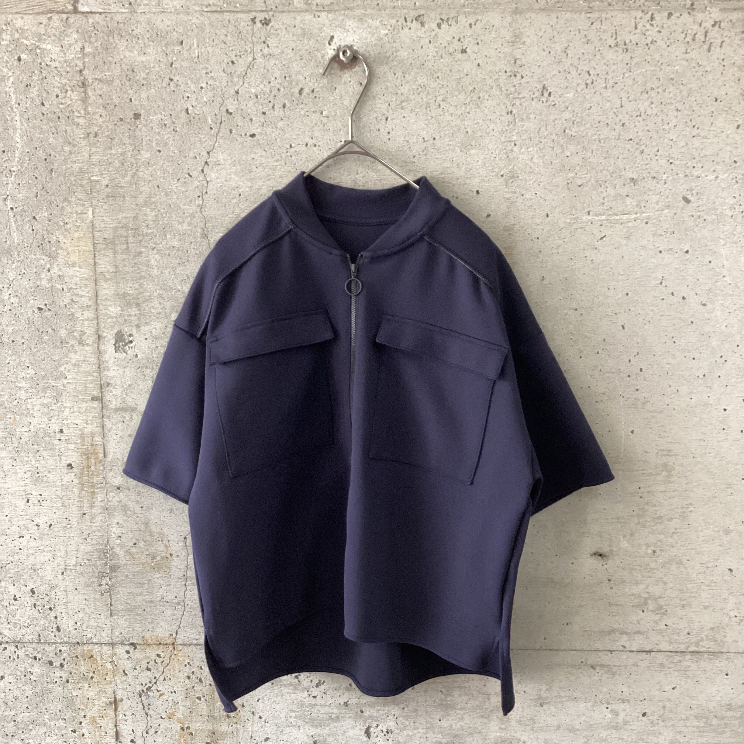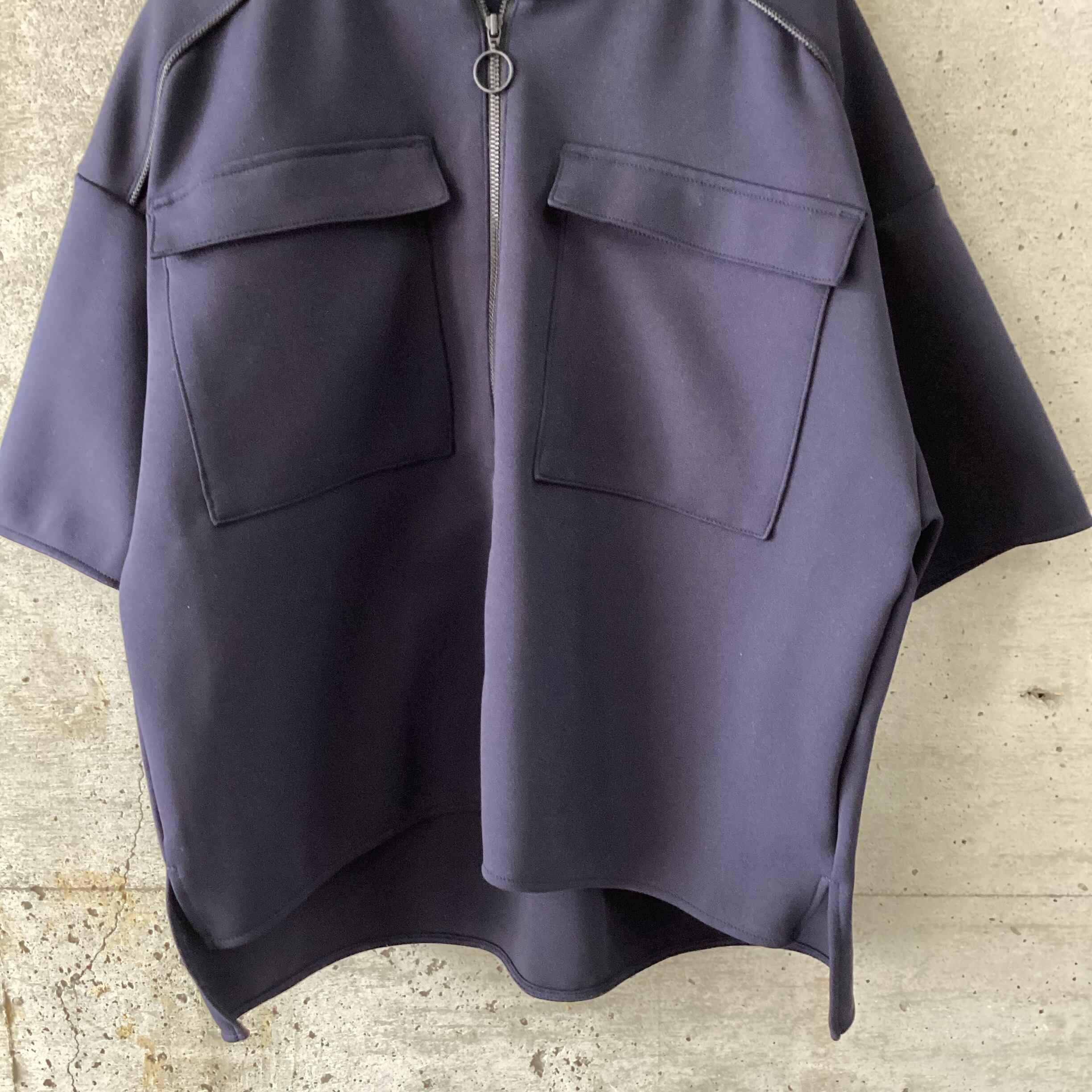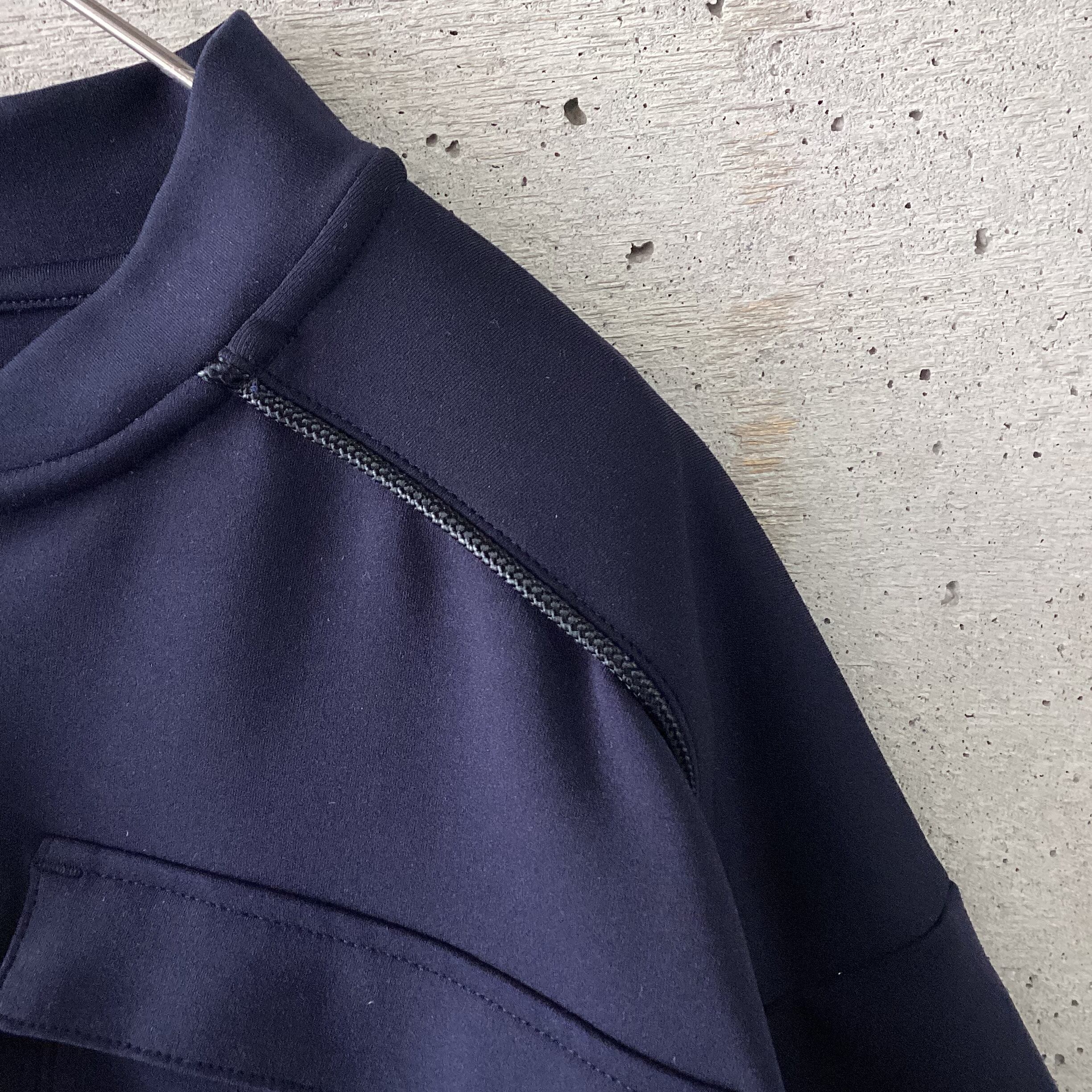 ストレッチ性のある厚手のポリ生地のジップカーディガンです。