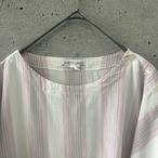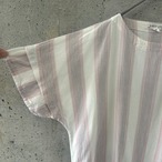 白とピンク、グレーの大きなストライプが素敵なワンピースです。