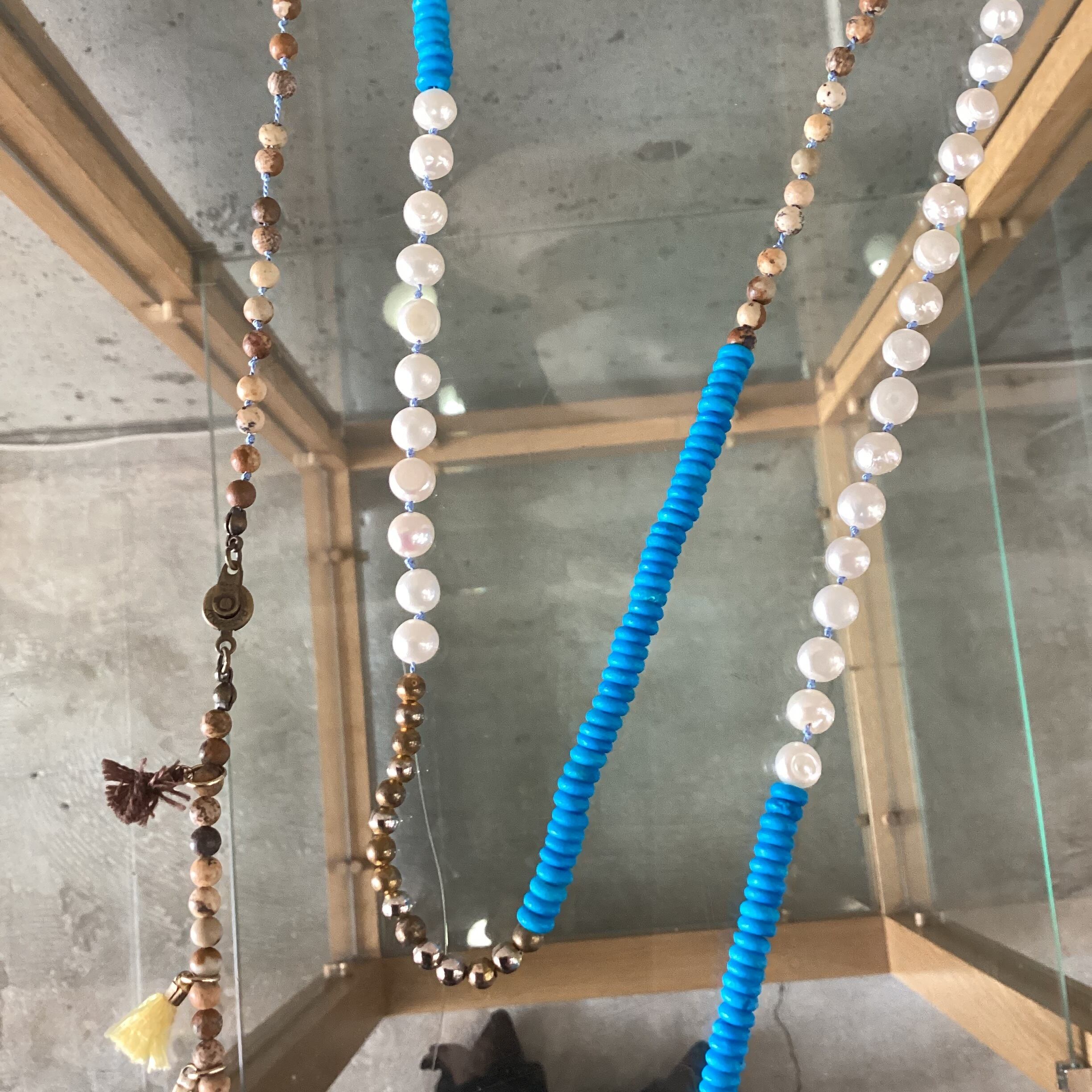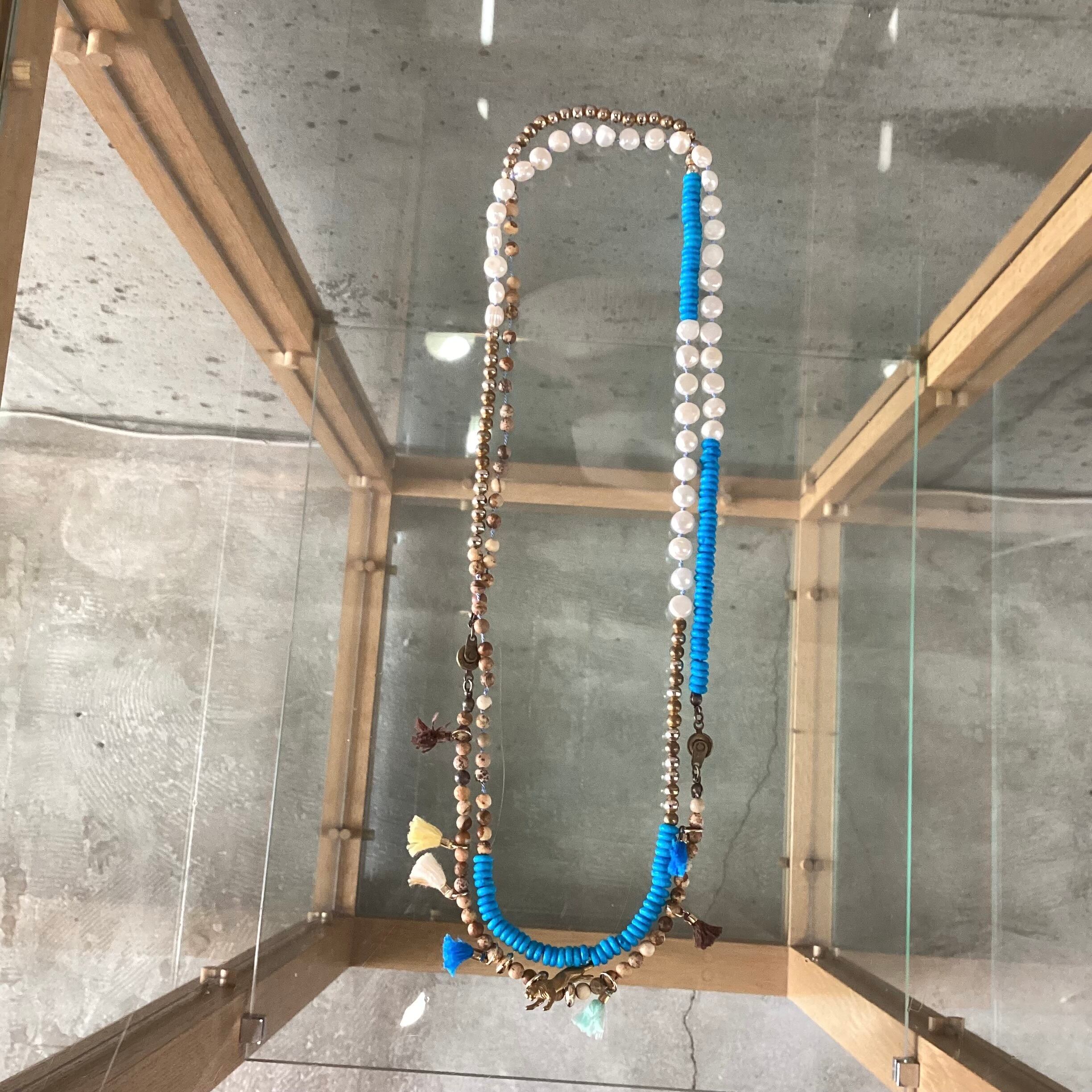 虎のチャームやフリンジ、色々なビーズが付いたロングネックレスです