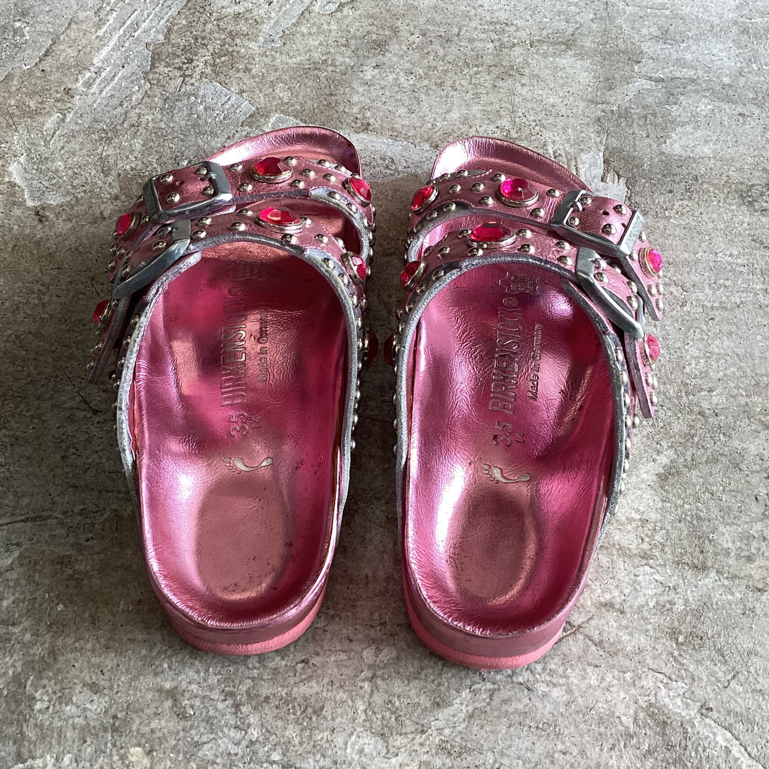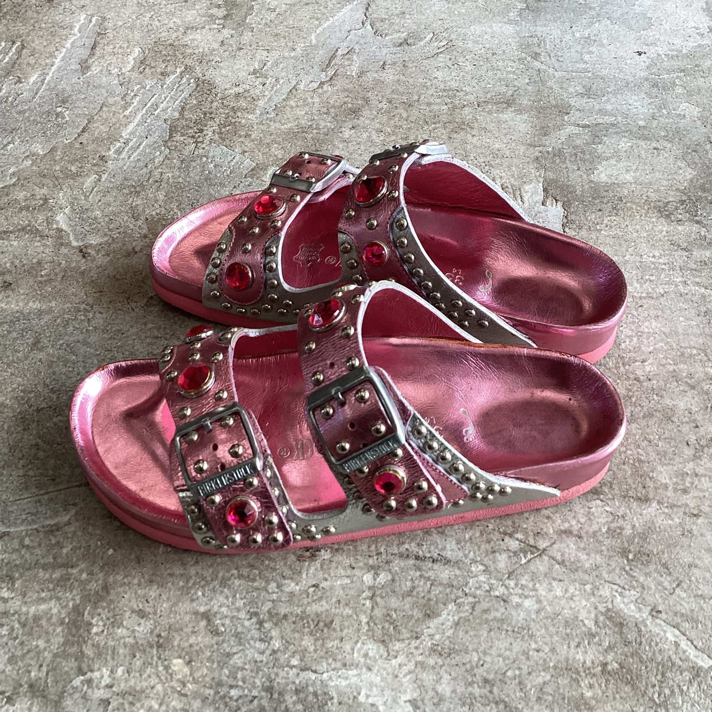 アリゾナのボディに、スタッズ、カラージュエル、スワロフスキーをあしらった豪華なサンダルです