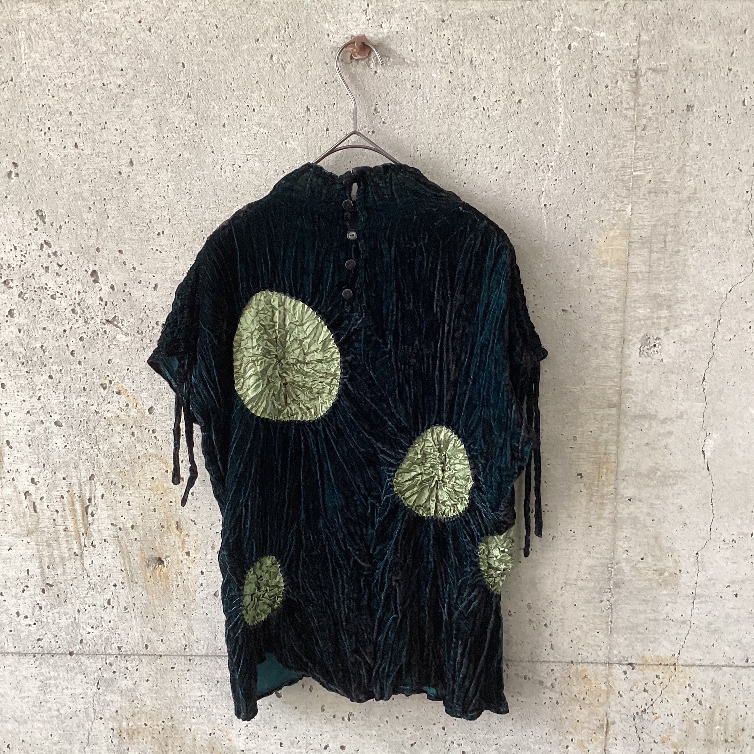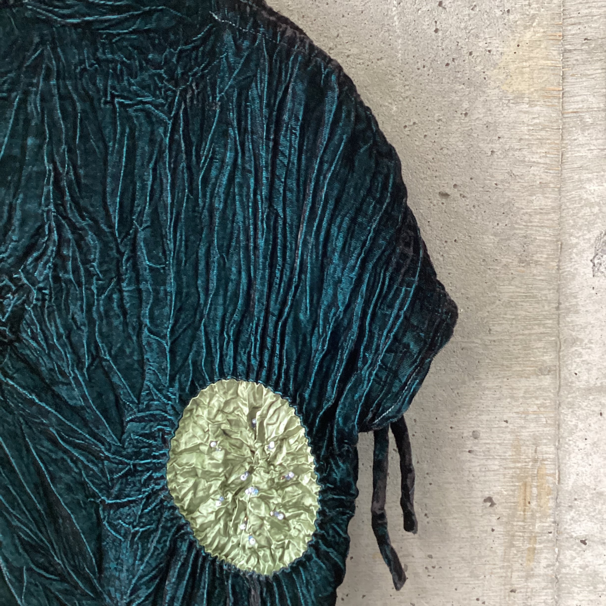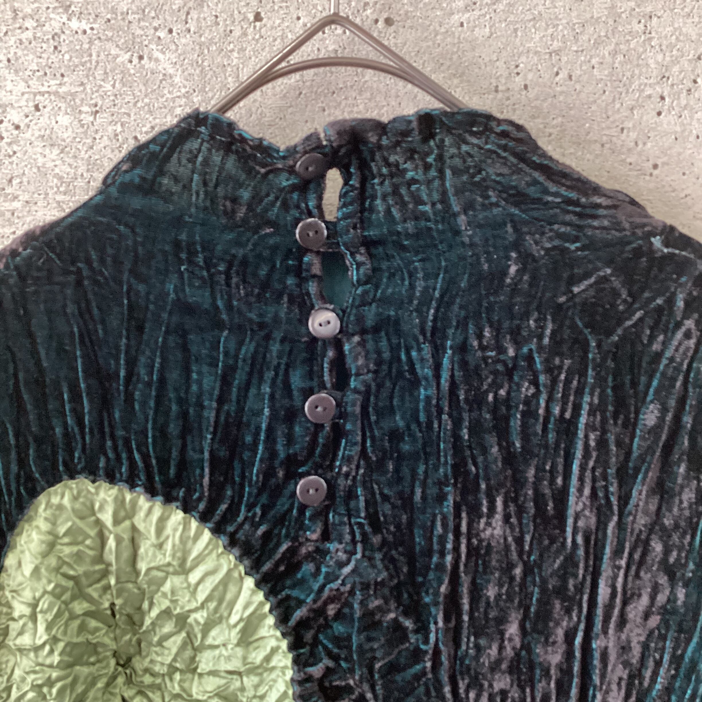 ダークグリーンの部分はシワ加工でイエローグリーンの部分は絞り加工が施されています。