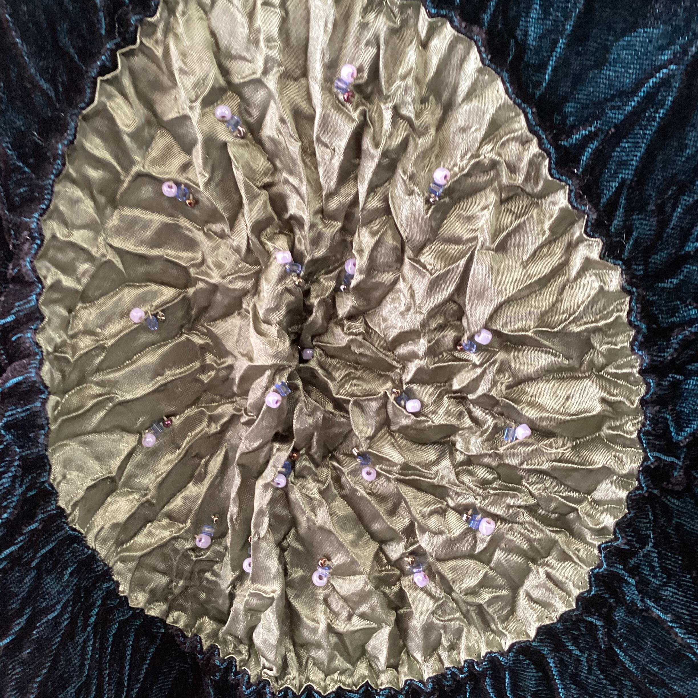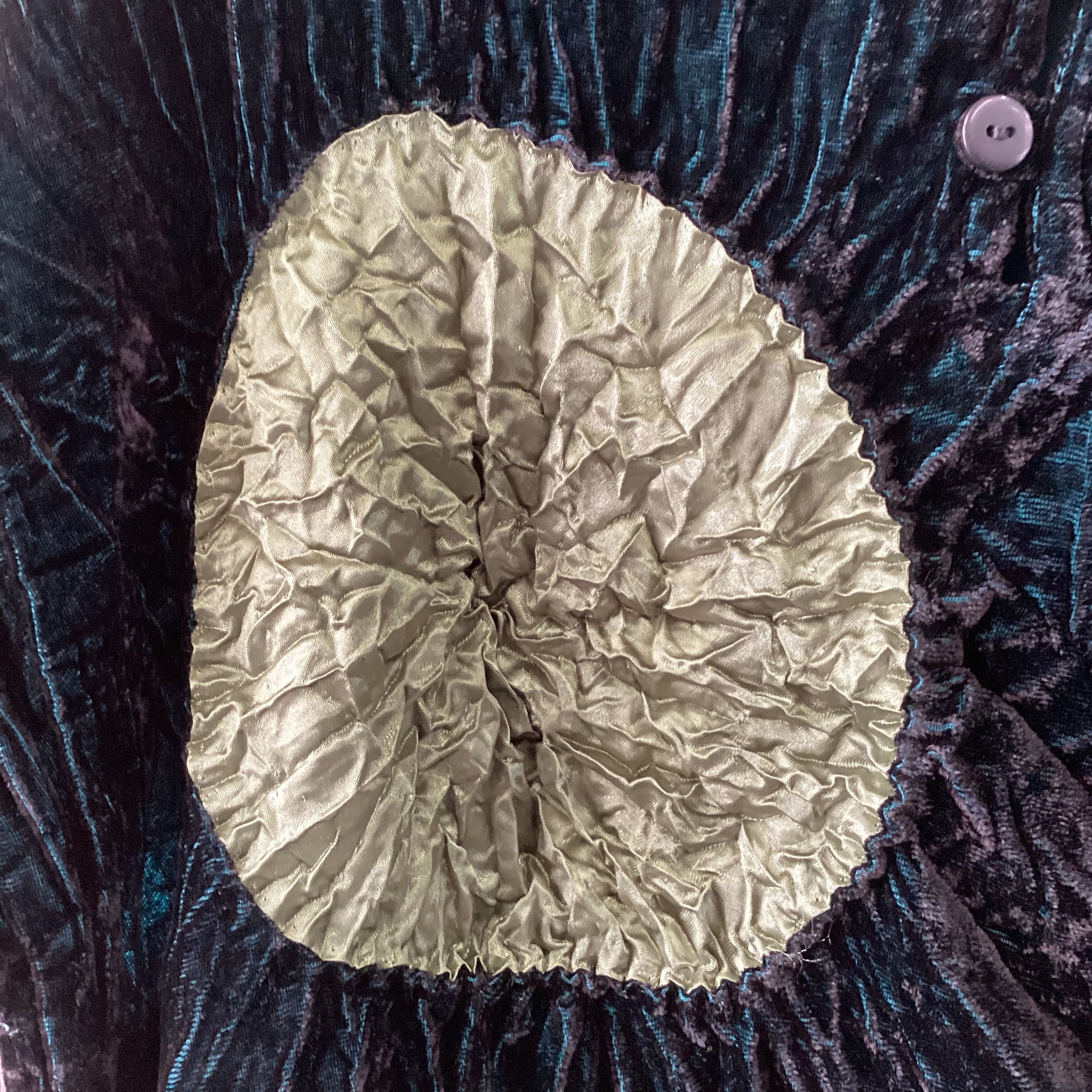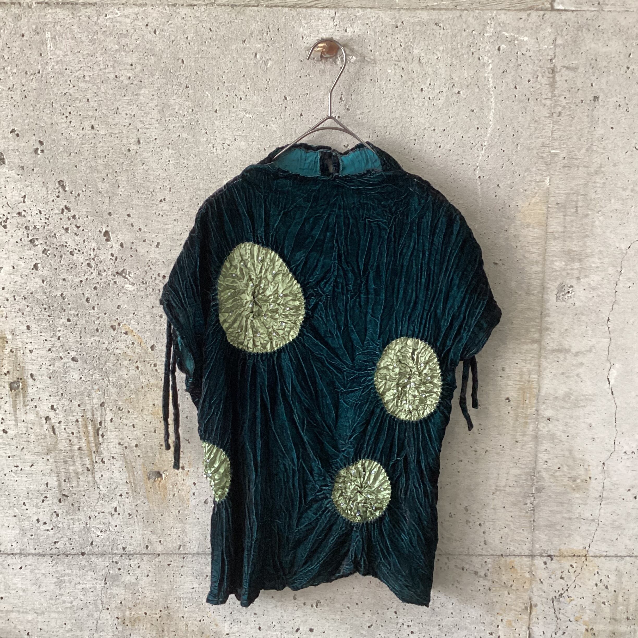 ダークグリーンの部分はシワ加工でイエローグリーンの部分は絞り加工が施されています。