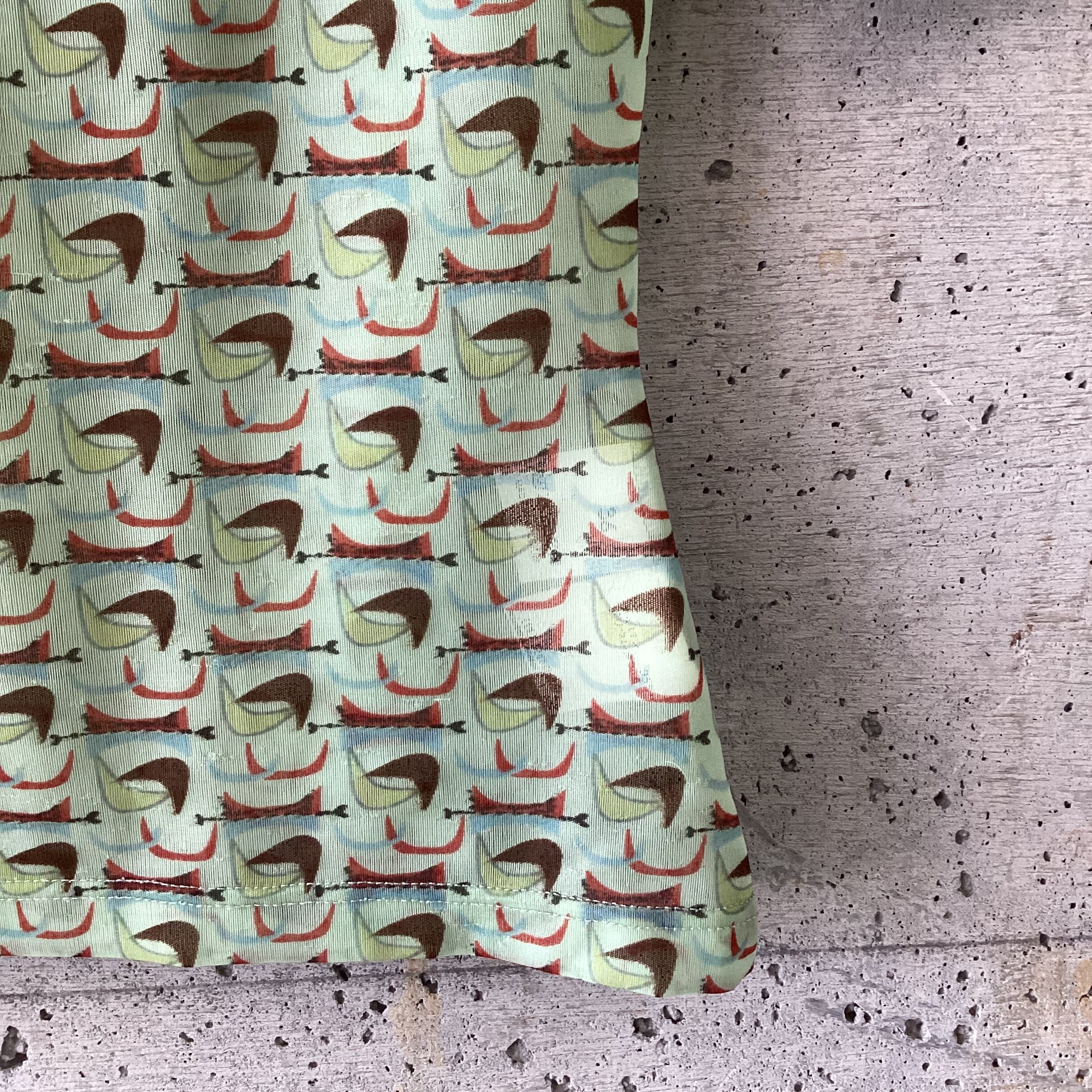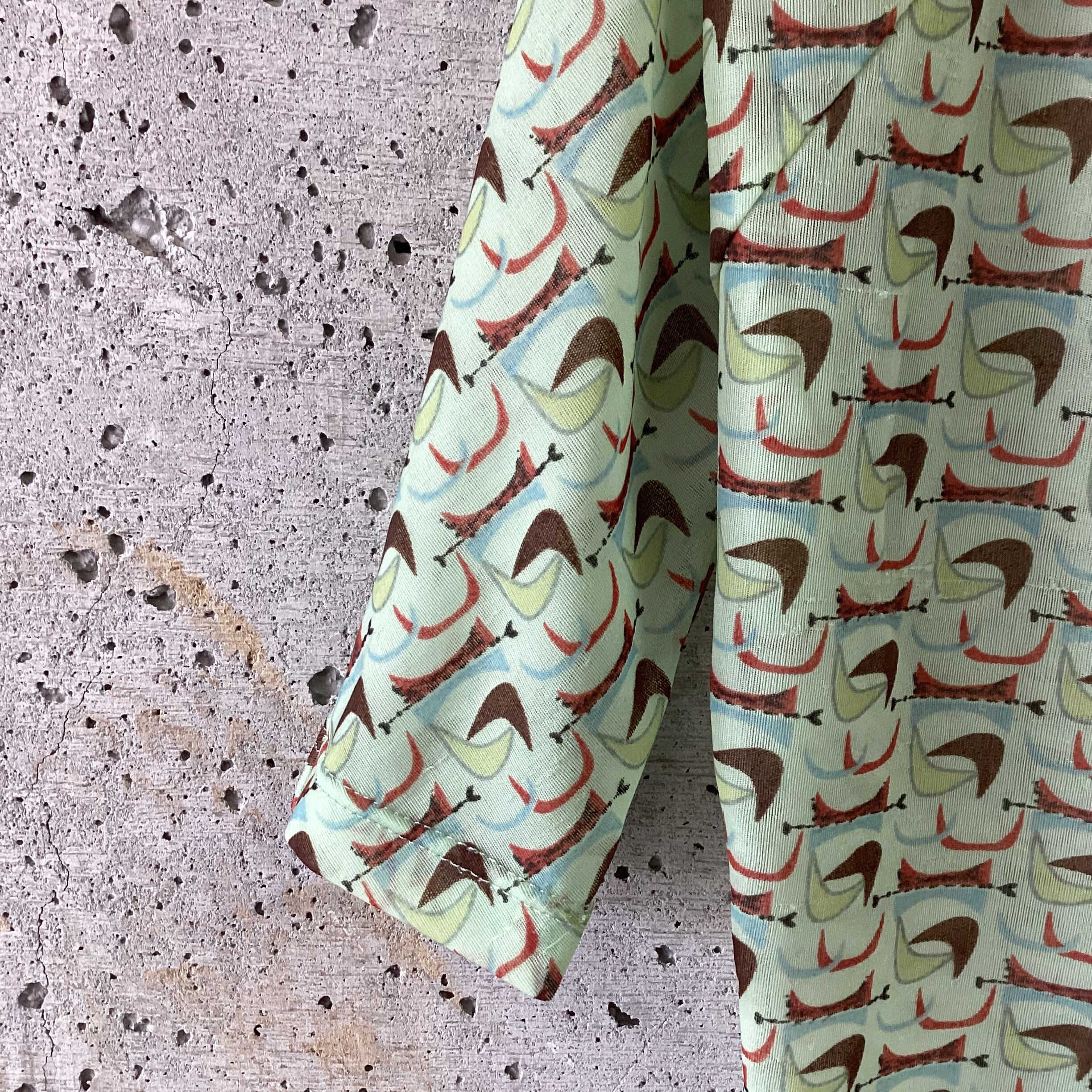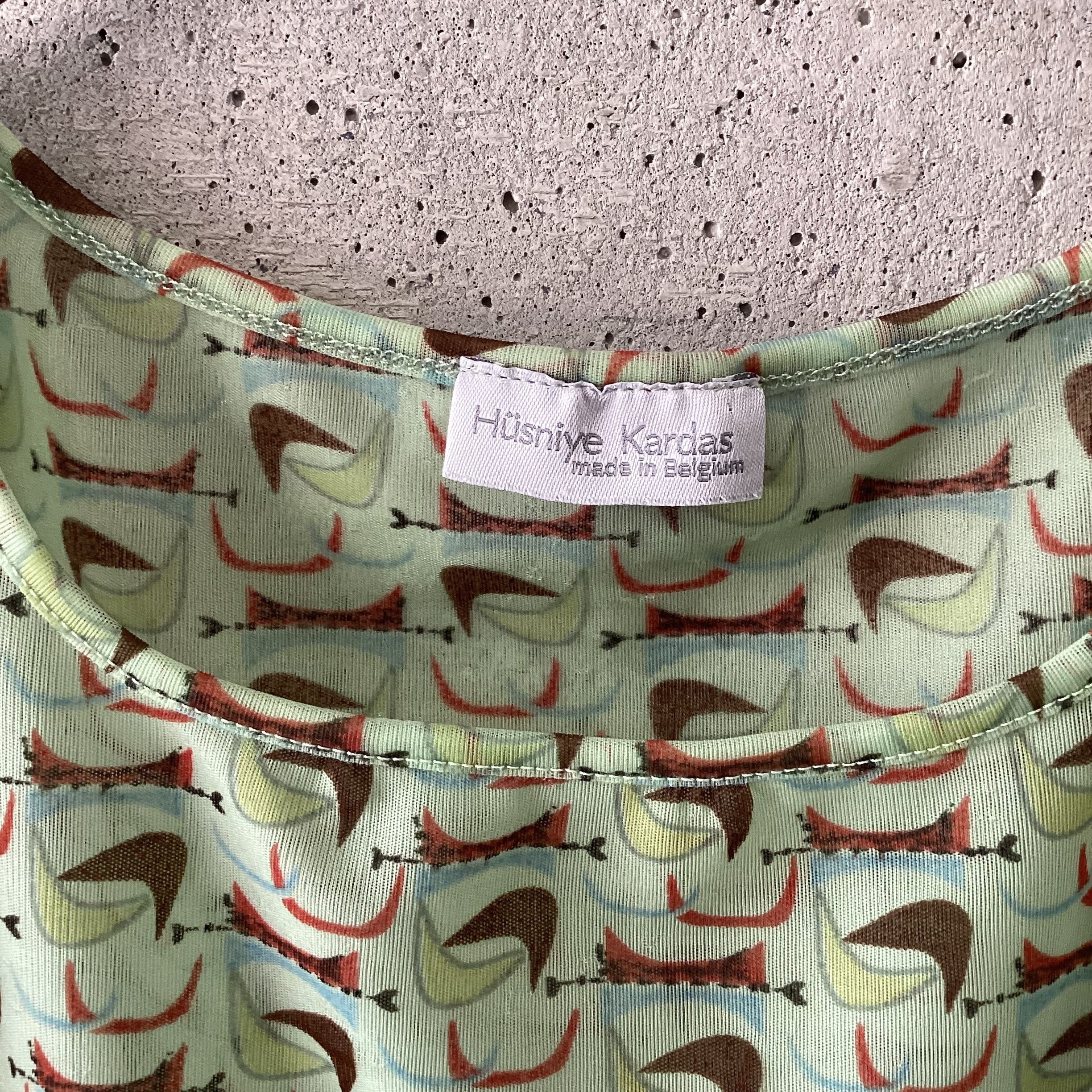 少し青みがかった黄緑色のシアートップスです。