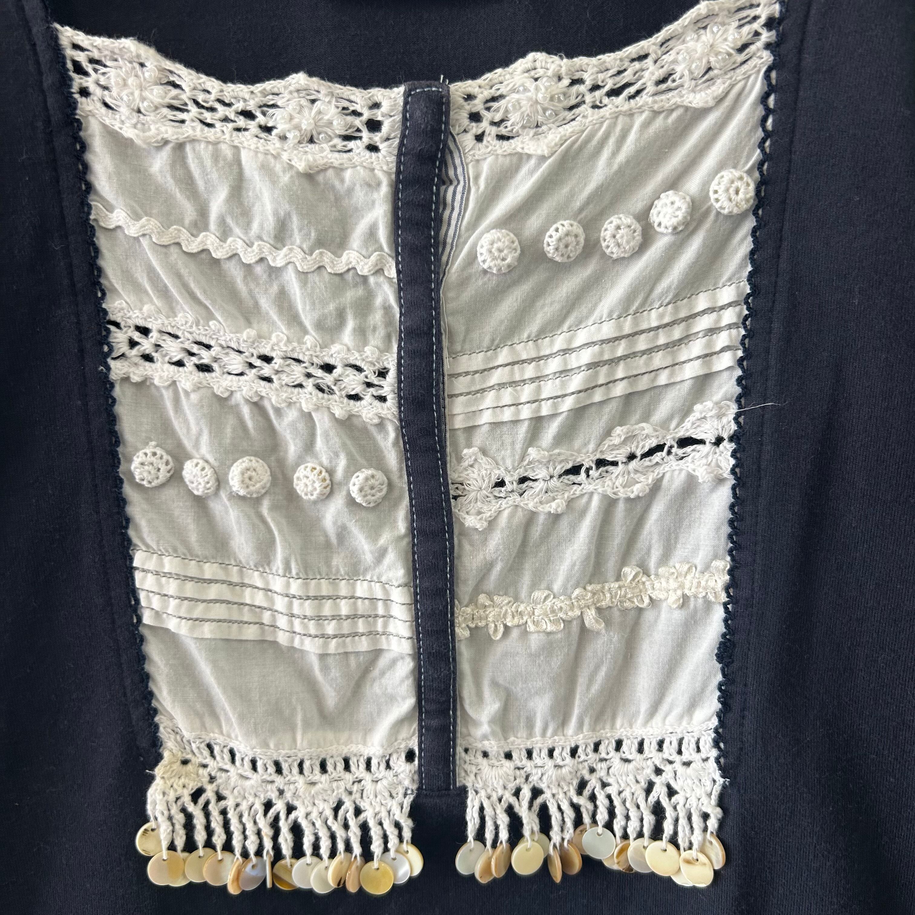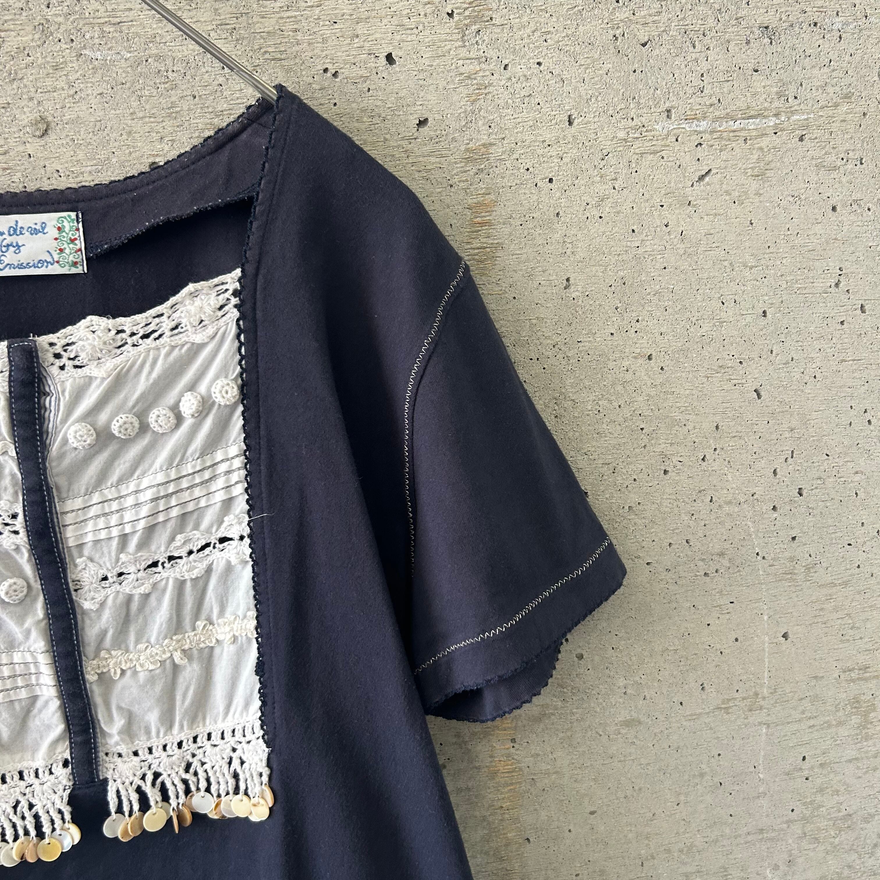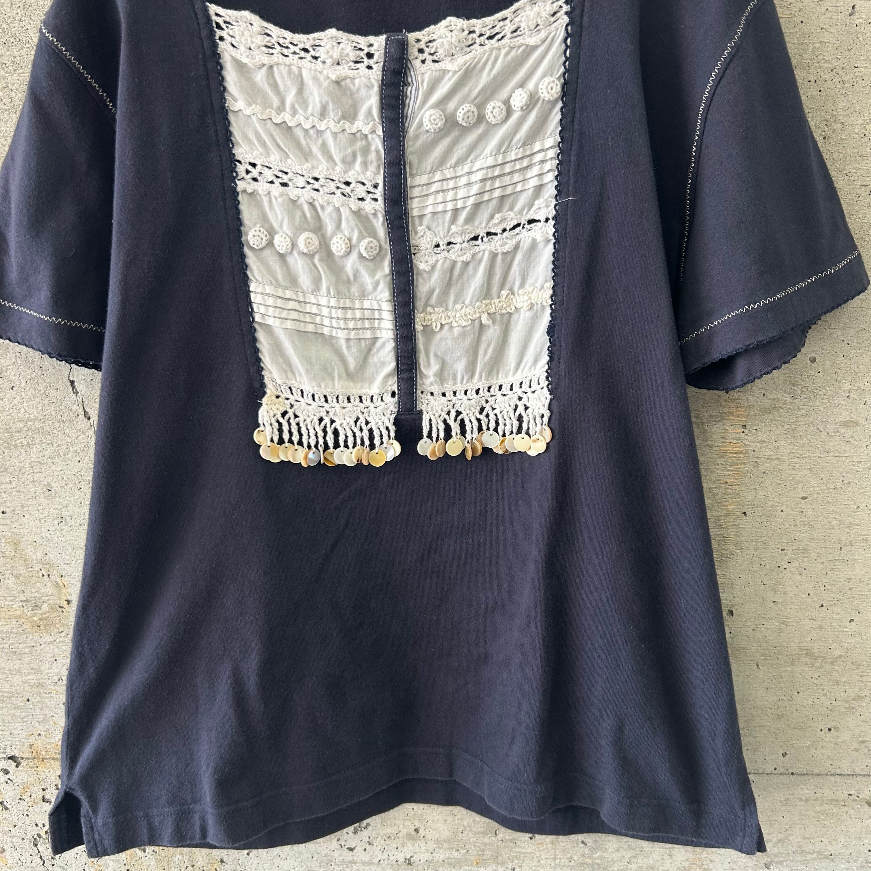 貝殻ビーズの装飾がとても可愛いTシャツです。