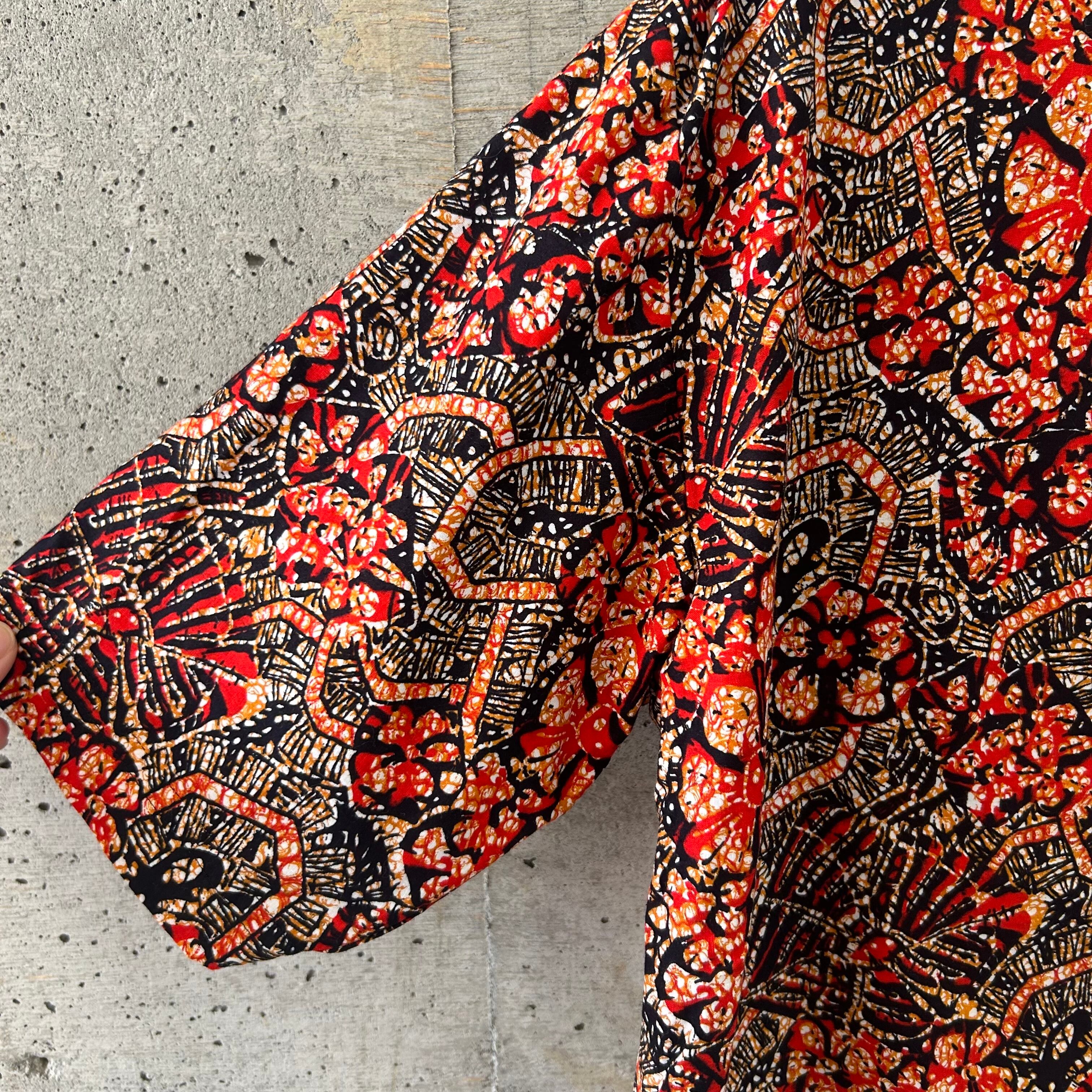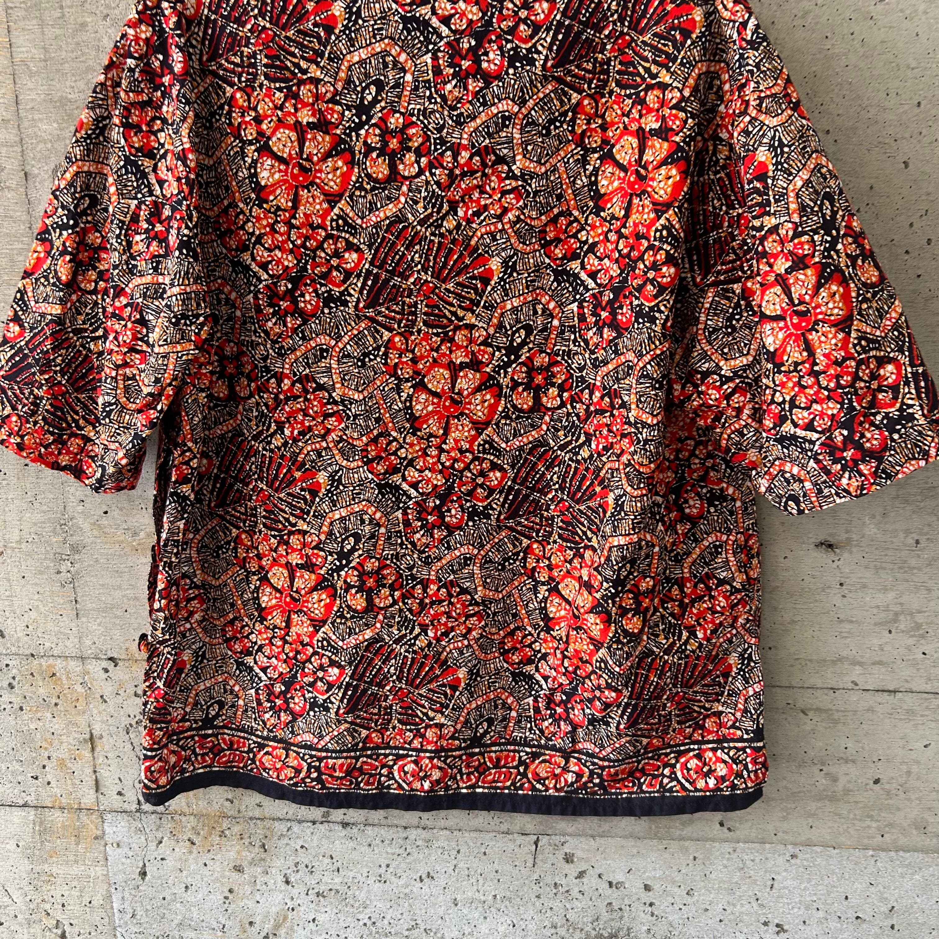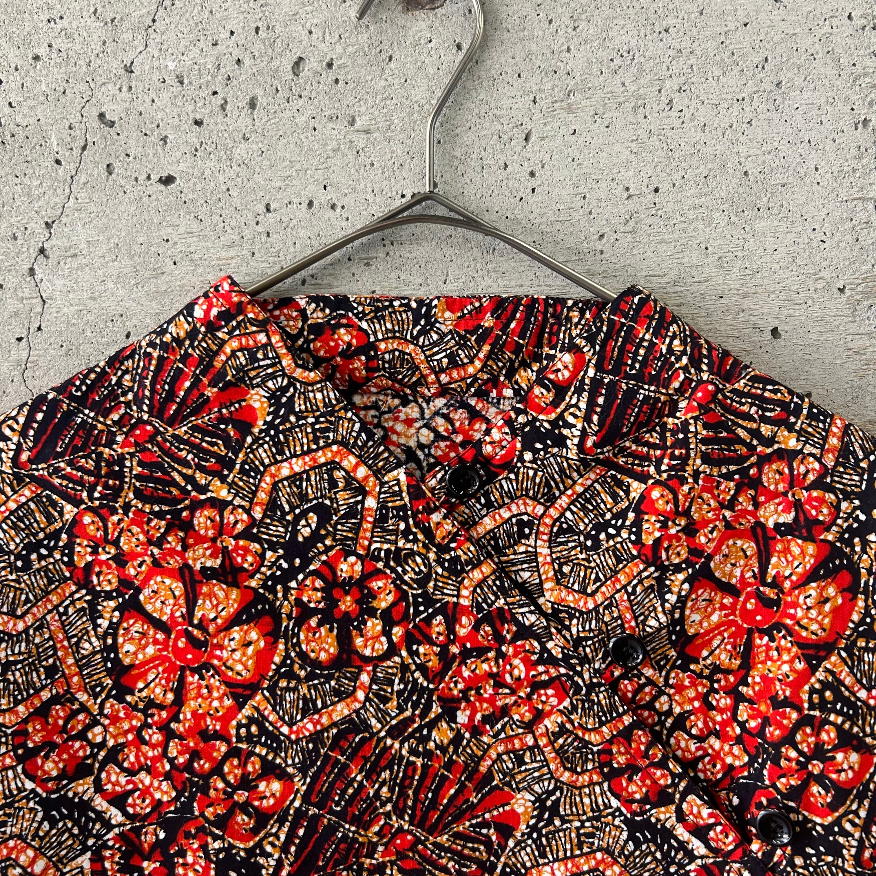 アフリカンファブリックのような綺麗な柄のシャツです。