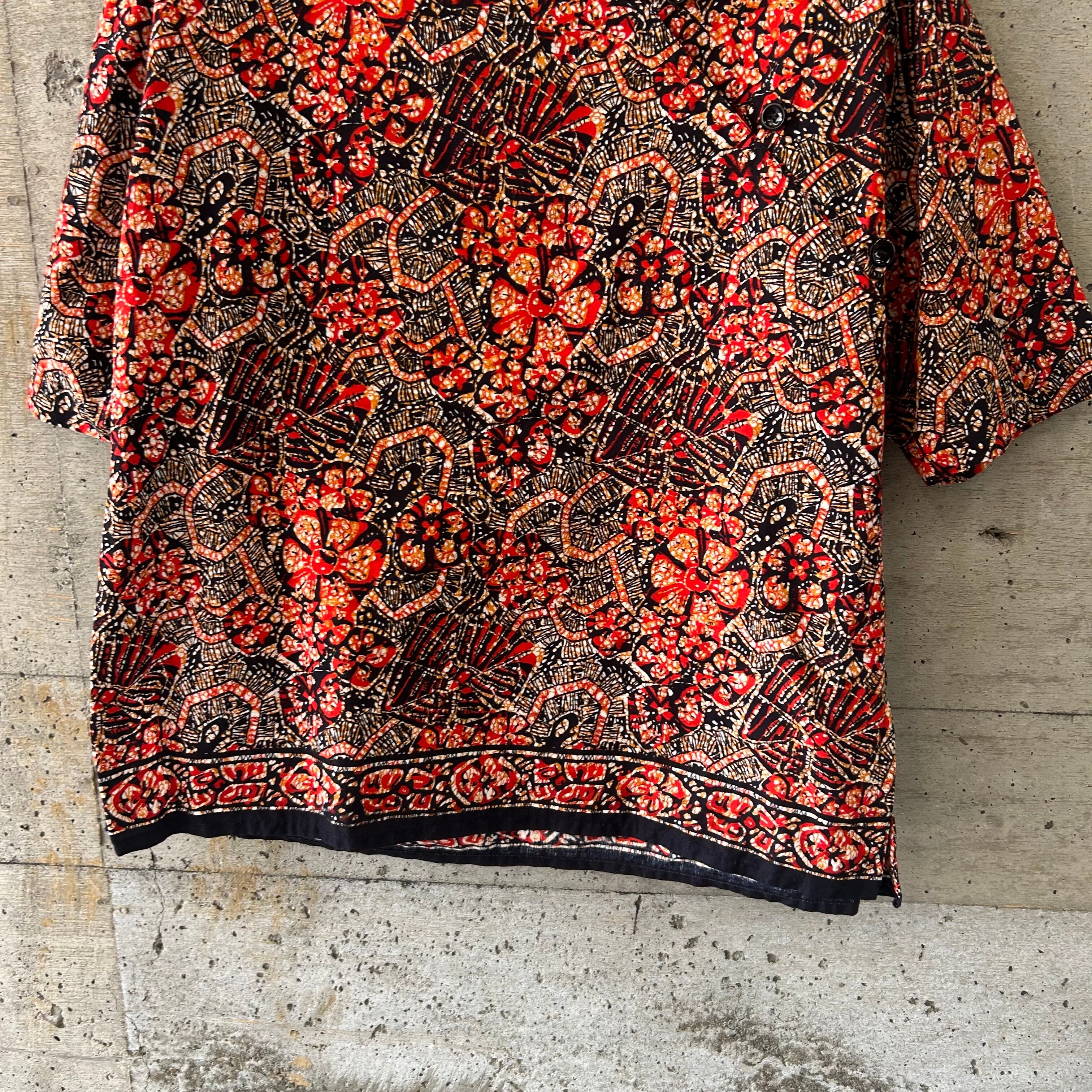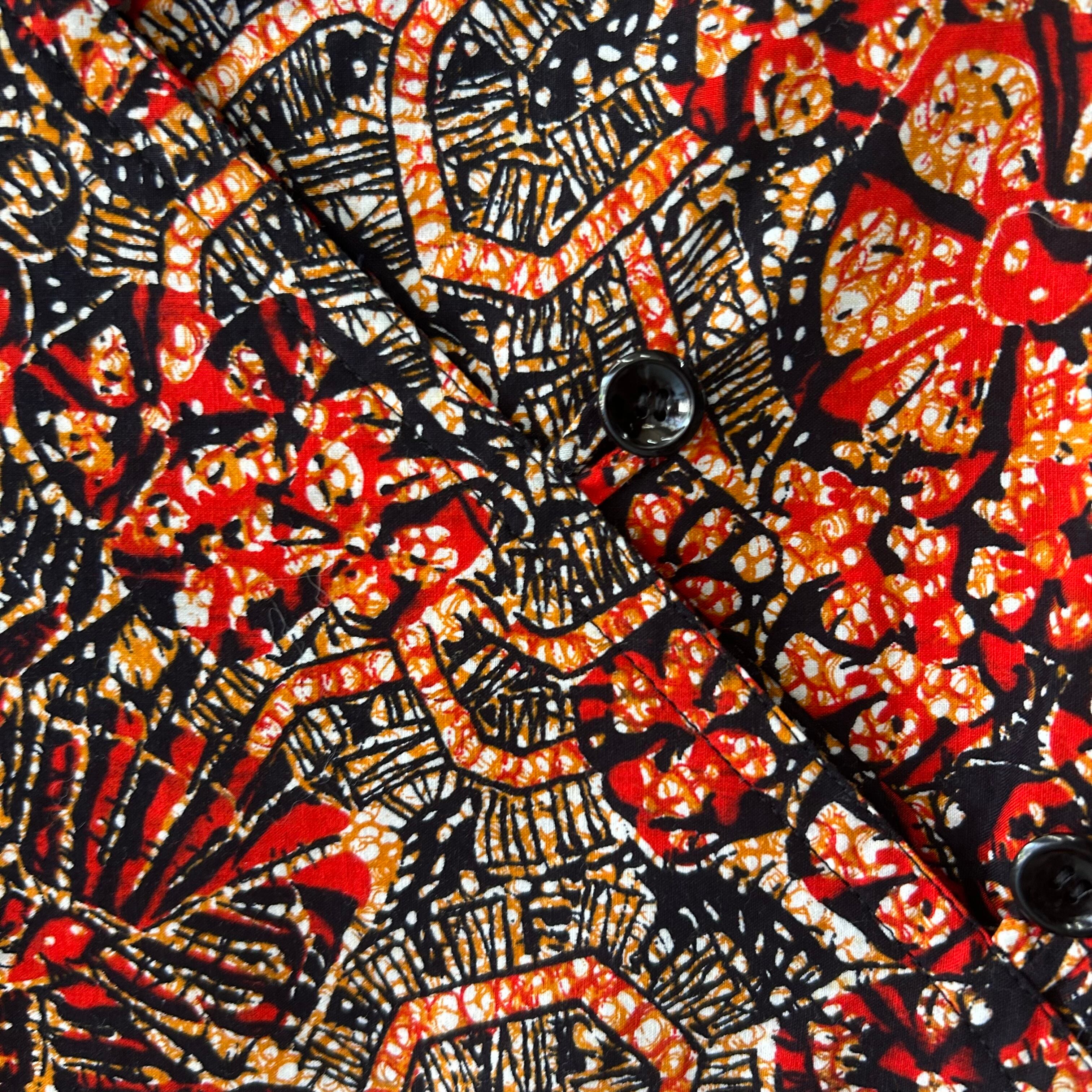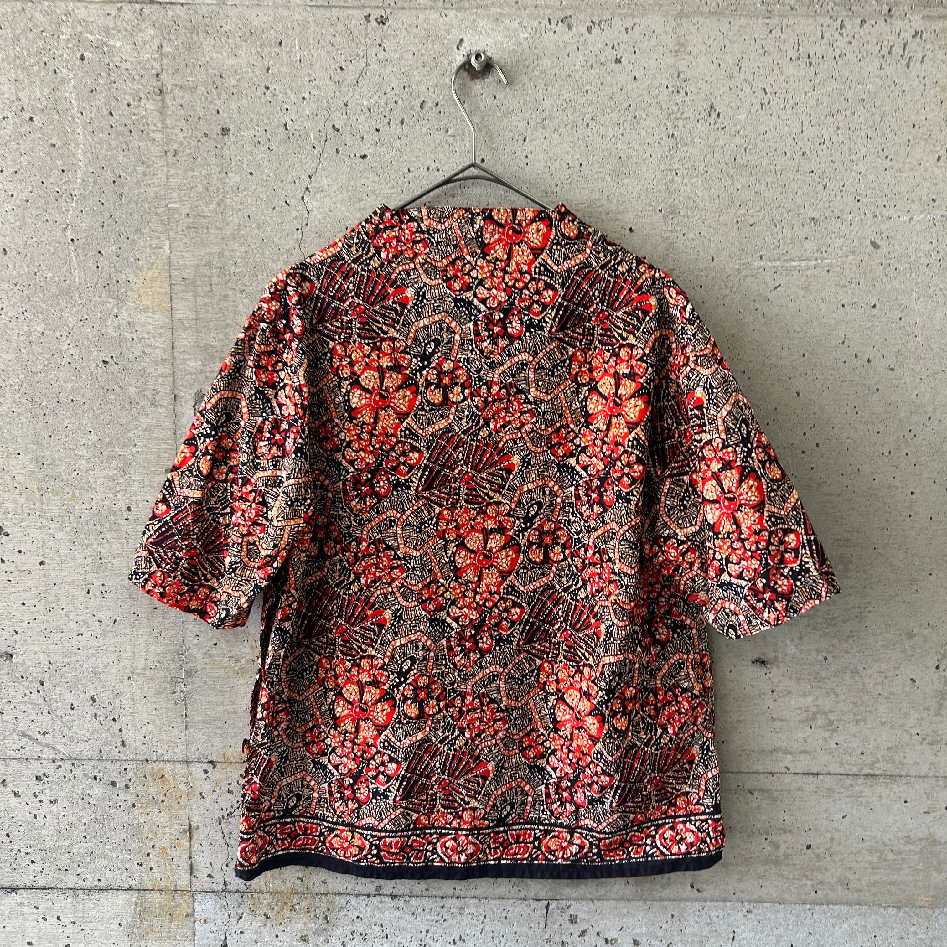 アフリカンファブリックのような綺麗な柄のシャツです。