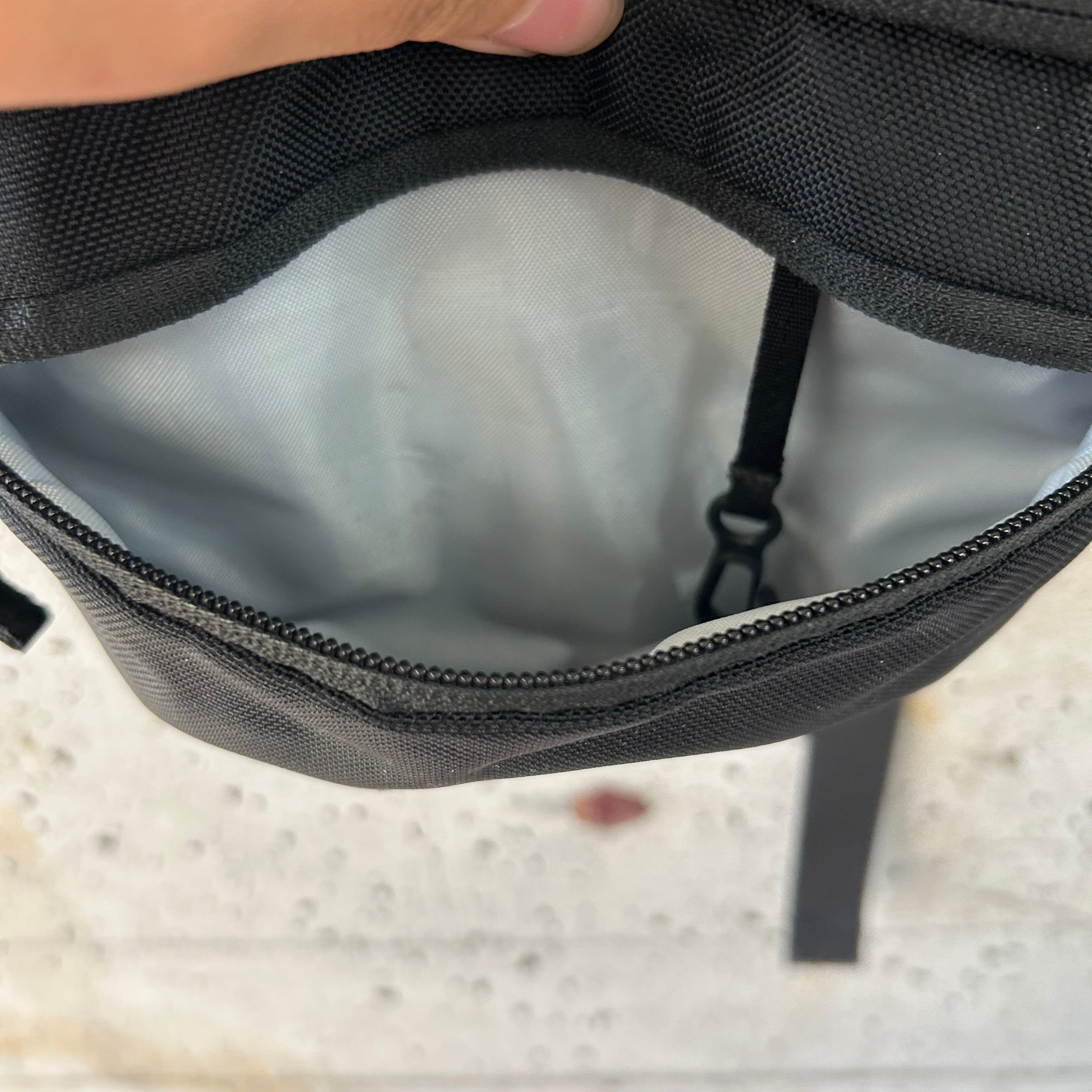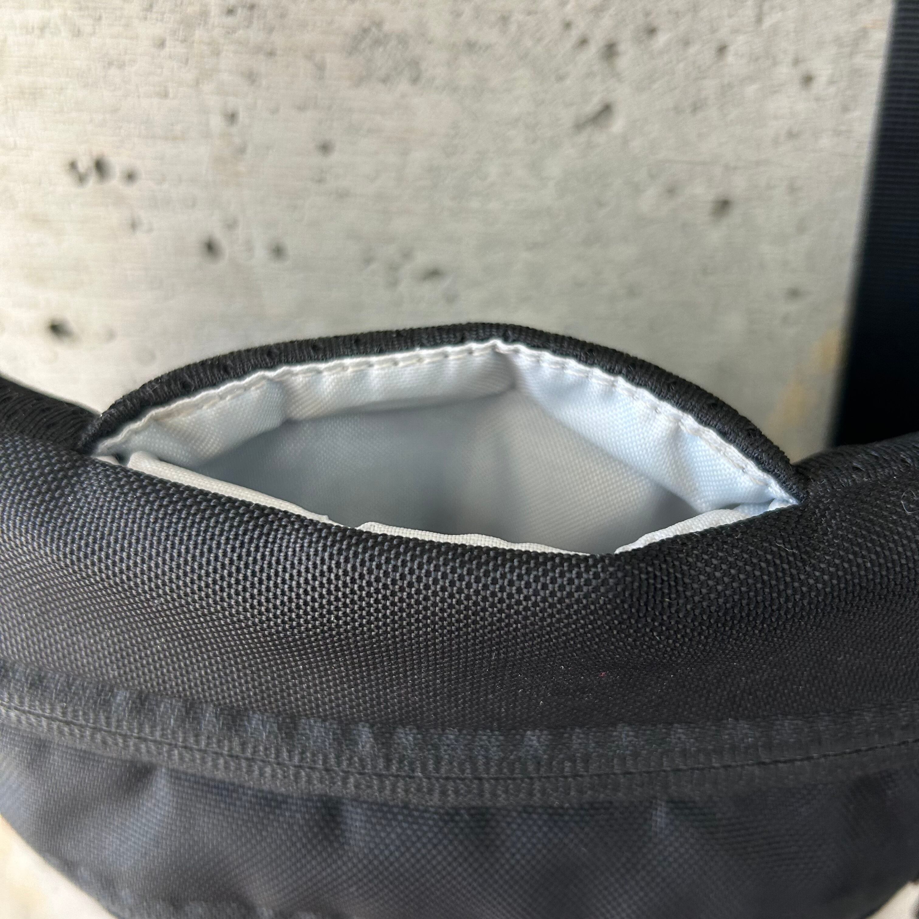 外側には細めですが深めのポケットがついていて、素早く取り出したいものが入れられます。