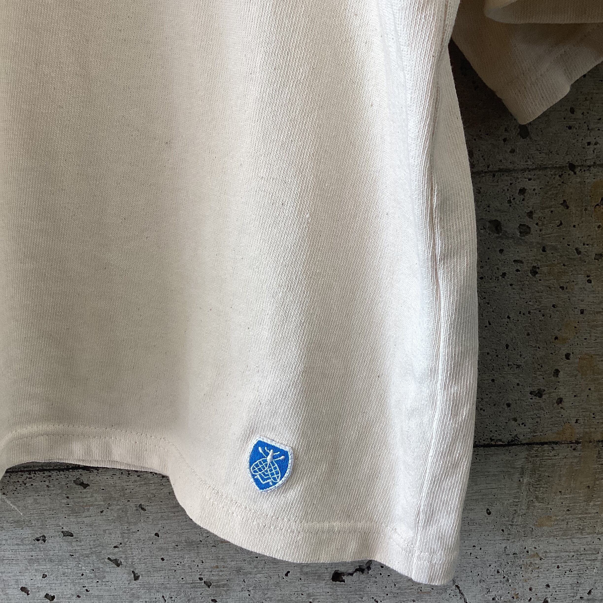 左そでにブランドネーム、裾にロゴのワッペンがあります。